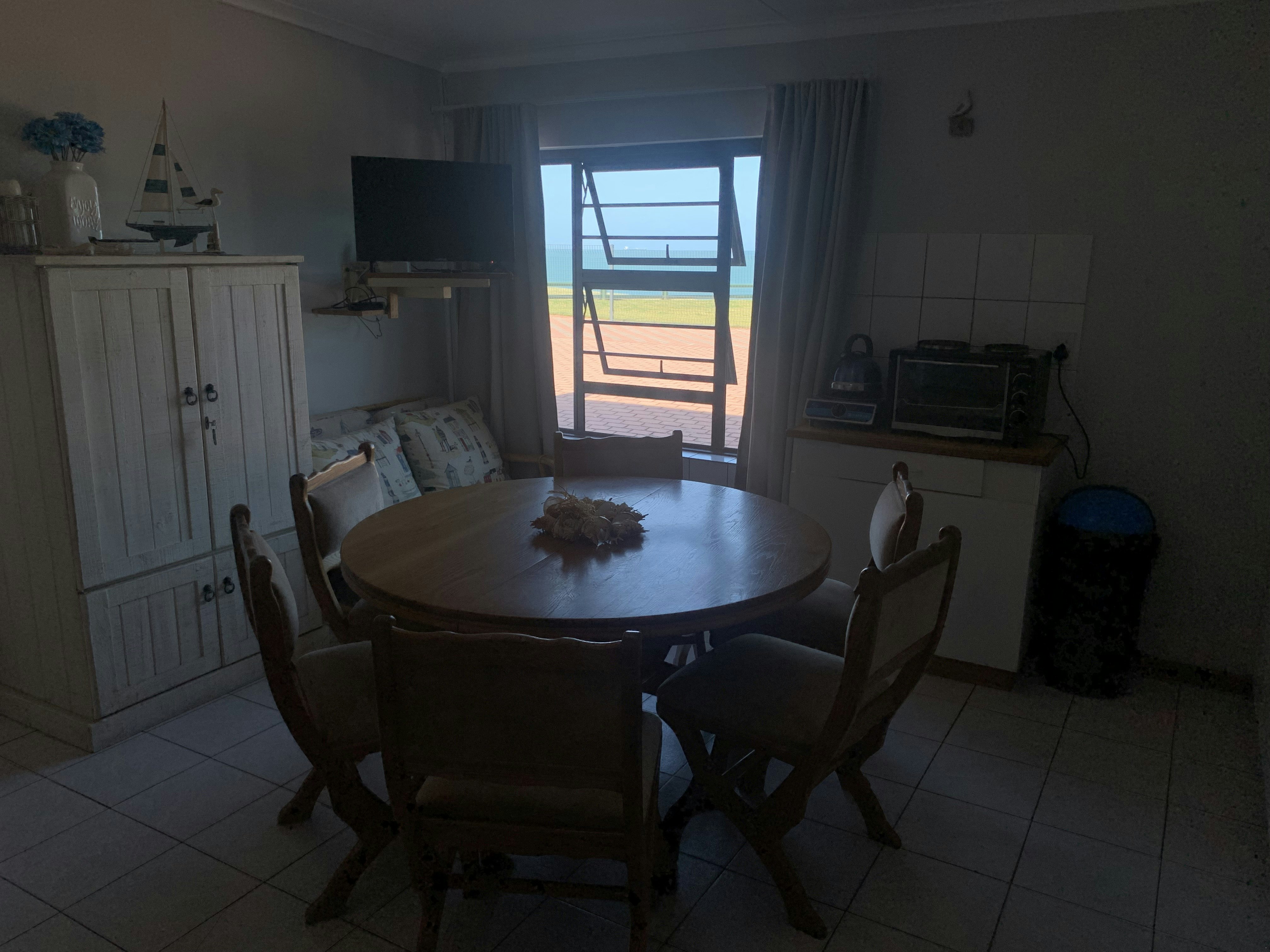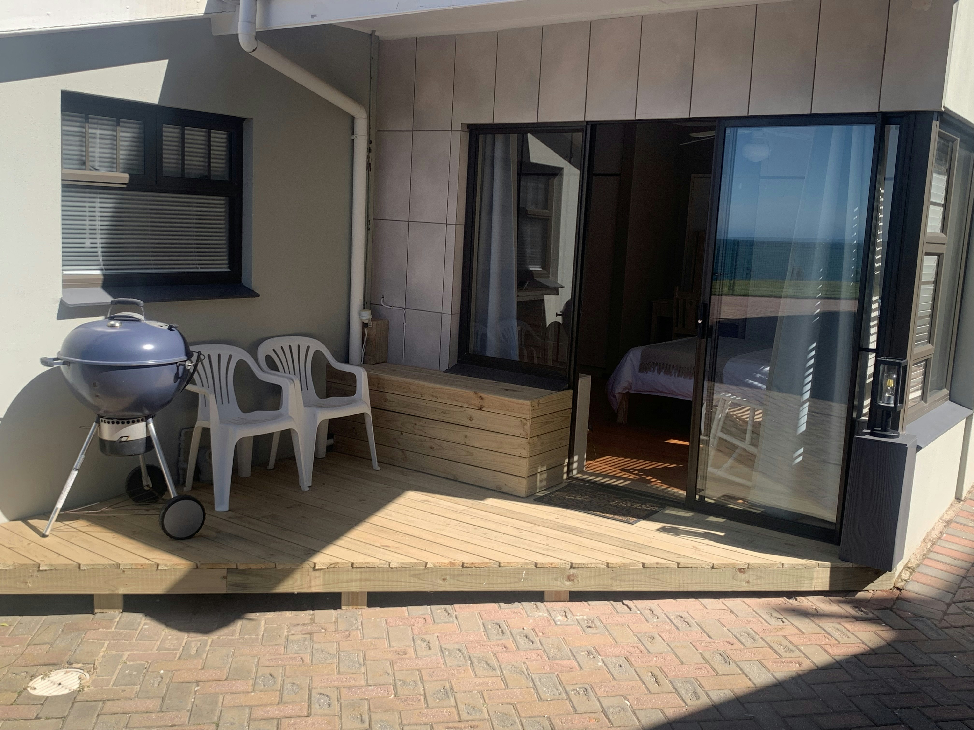 Een slaapkamer woonstel met kombuis in kamer. Ruim badkamer met stort, bad, toilet en wasbak. Klein patio met ketelbraaier. Ligte & dakwaaier werk tydens beurtkrag asook wifi & televisie. Twee plaat gasstofie met ketel en "toaster" vir gasstoof. Yskas & vrieskas. Mikrogolfoond. Televisie met vol pakket dstv. Trappe na Bayview strand voor by grasperk. Parkering voor woonstel. Bring eie handdoeke vir bad/stort en swem.