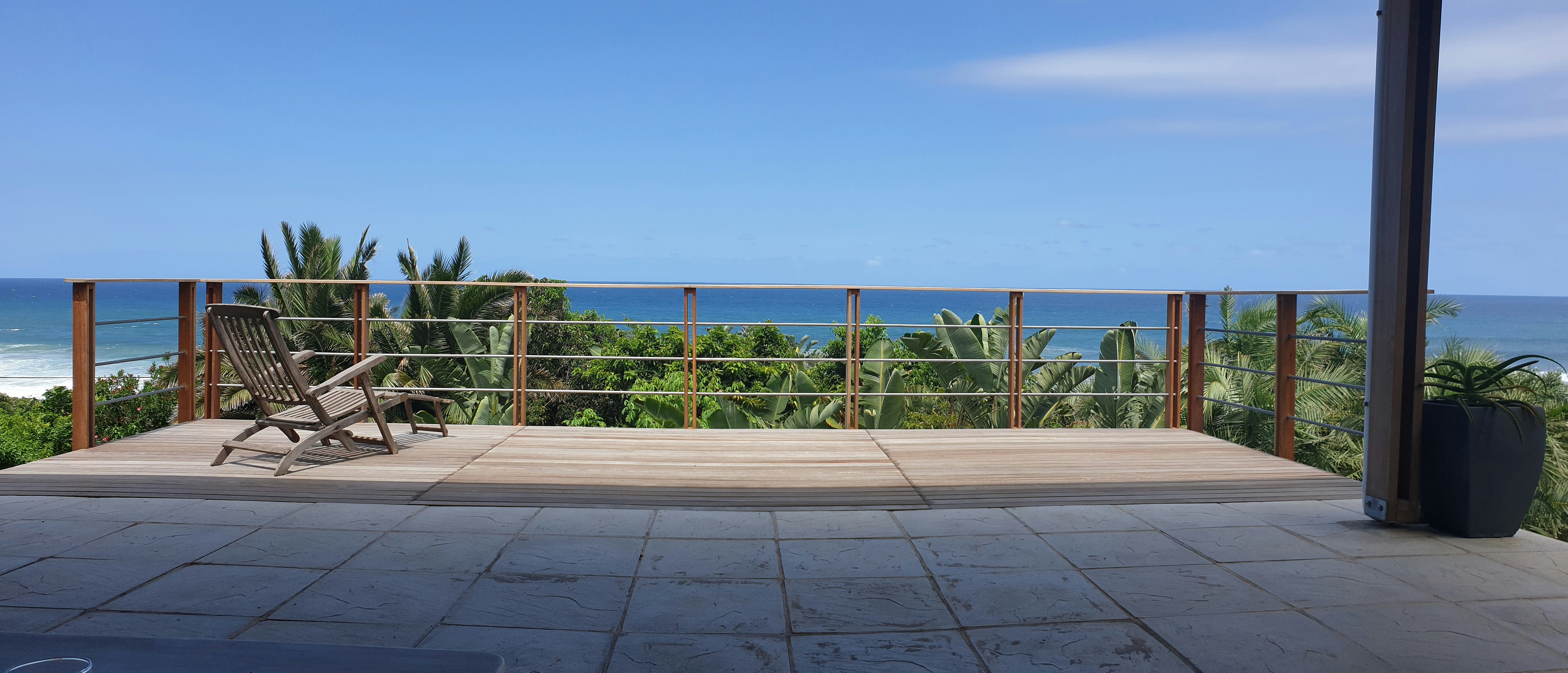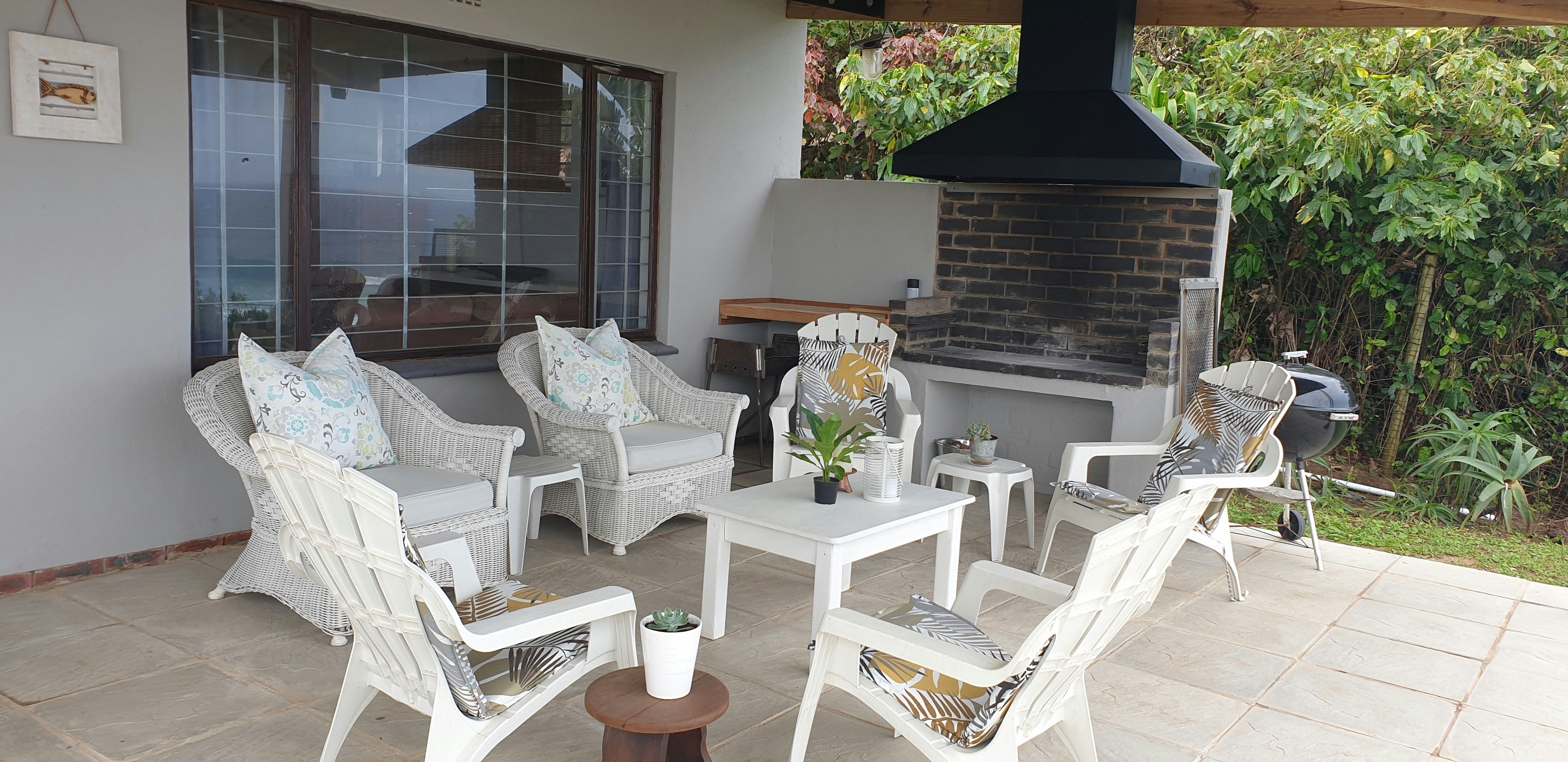 Die kombuis is met 2 yskas-vrieskaste, 'n mikrogolf, gasstoof en 'n skottelgoedwasser toegerus. Daar is 'n etenstafel in die sitarea, asook banke waarop gaste kan ontspan. Dié area lei na 'n dek wat na die see front en 'n ingeboude braai het. Daar is ook lieflike see-uitsigte, veral gedurende die wintermaande wanneer daar walvisse en sardientjies is.