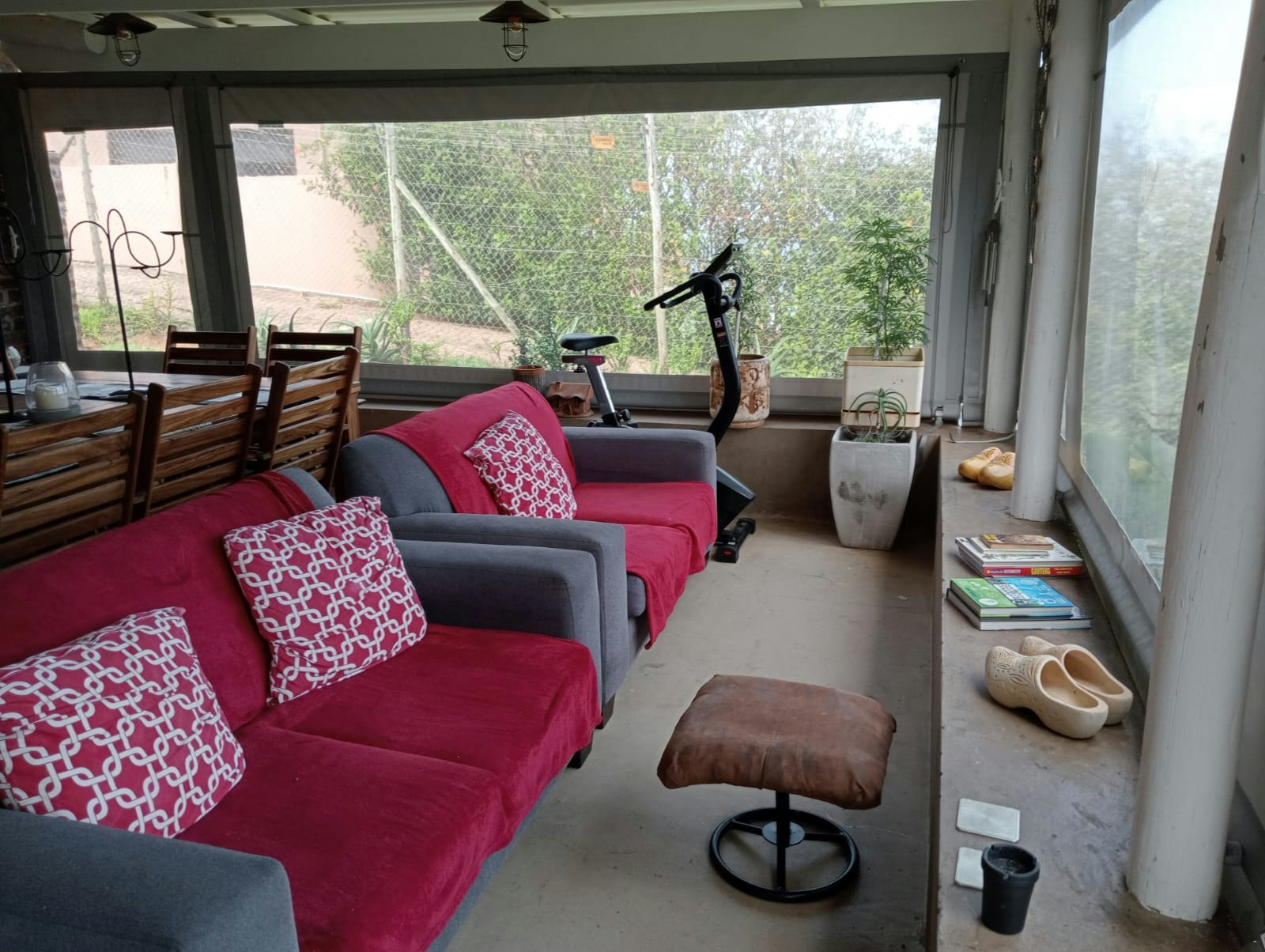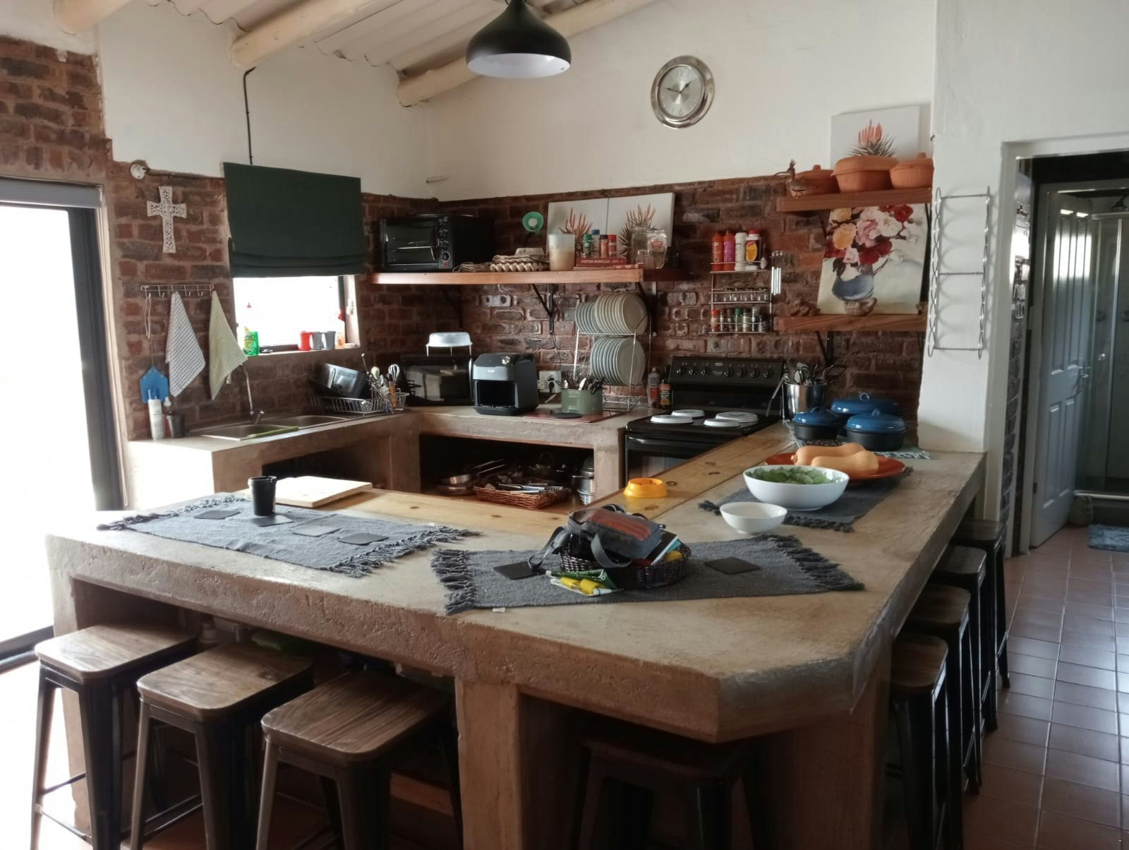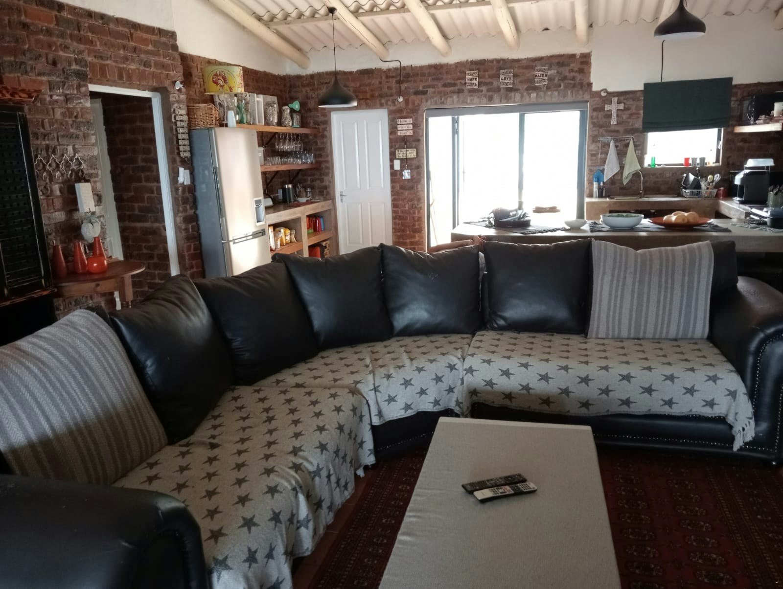 Die oopplan-leefarea het gemaklike sitplek, 'n TV en 'n goed toegeruste kombuis. Die kombuis is met 'n yskas-vrieskas, mikrogolfoond, stoof, oond en koffie- en teemaakgeriewe toegerus. Daar is ook 'n ruim, toegeboude stoep met 2 etenstafels, baie sitplek en 'n uitsig oor die see. Buite is daar 'n groot tuin, braaigeriewe en genoeg veilige parkeerplek op die perseel.