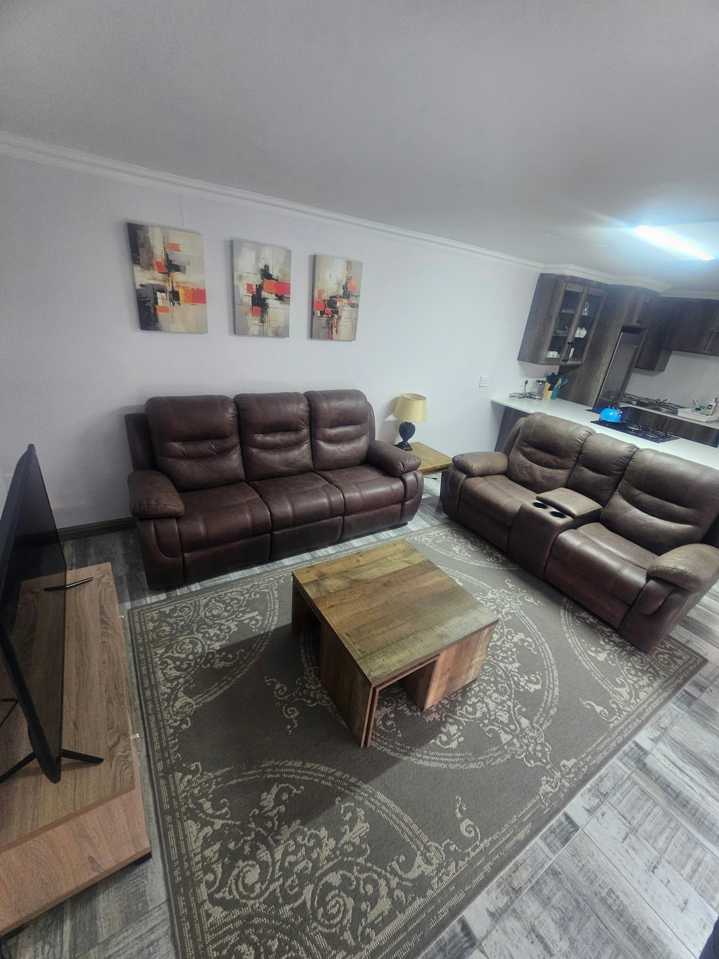 Die oopplan-leefarea beskik oor gemaklike sitplek, 'n TV met stromingsdienste en 'n volledig toegeruste kombuis. Die kombuis sluit 'n yskas-vrieskas, stoof, oond, mikrogolf, wasmasjien, skottelgoedwasser, tuimeldroër en koffie- en teemaakgeriewe in. WiFi is beskikbaar vir gaste se gerief. Buite kan gaste ontspan en die pragtige see-uitsigte geniet.