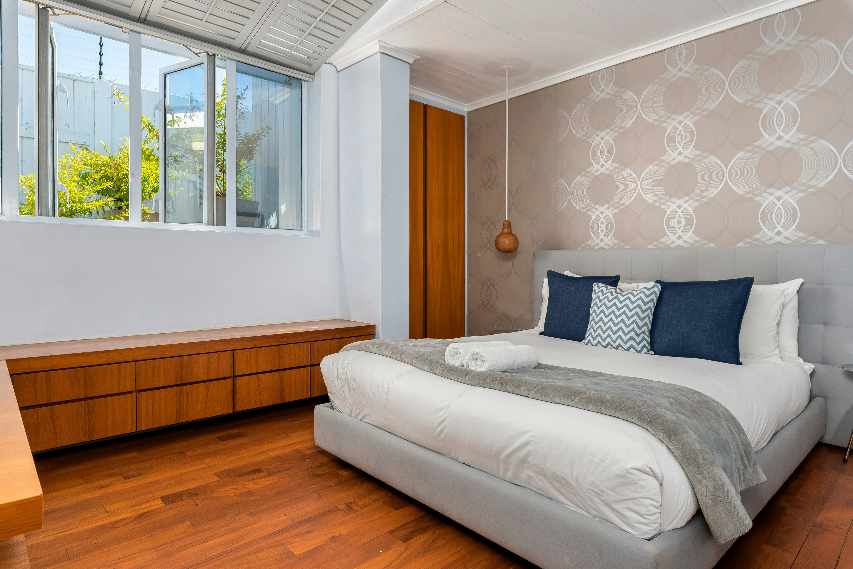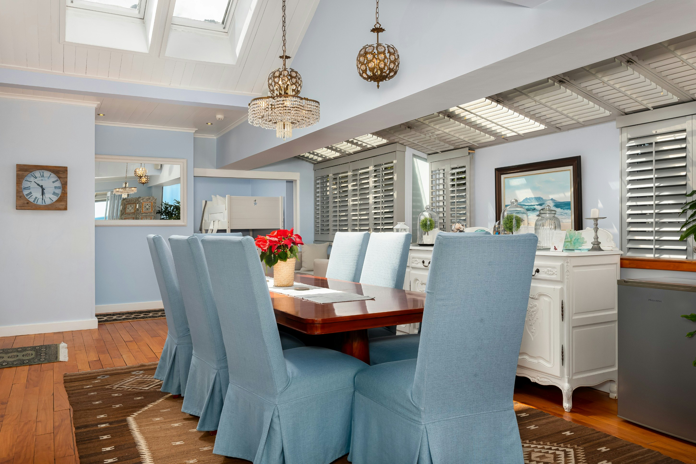 Hierdie huis bied slaapplek vir tot 8 gaste en bestaan uit 3 slaapkamers en 3 badkamers. Die hoofslaapkamer is ingerig met 'n koninggrootte bed, die tweede met 'n koningingrootte bed, en die oorblywende slaapkamer bevat 4 enkelbeddens. Gaste deel 3 badkamers - een met 'n stort, bad, wasbak en toilet; die ander met 'n bad; en die derde met 'n stort, wasbak en toilet.