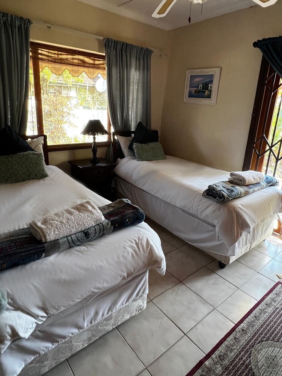 Die Deluxe Koningin het 'n koningingrootte-bed en eksklusiewe toegang tot 'n aparte badkamer met bad- en stortgeriewe. Dié gaste het privaat toegang tot 'n toegeboude stoep wat na die swembad lei. Die Deluxe-kamer vir 4 het 1 koningingrootte-bed en 2 enkelbeddens en eksklusiewe toegang tot 'n aparte badkamer met bad- en stortgeriewe. Elke kamer het ook 'n TV met Chromecast, gratis WiFi, 'n yskas, mikrogolf en tee- en koffiemaakgeriewe.