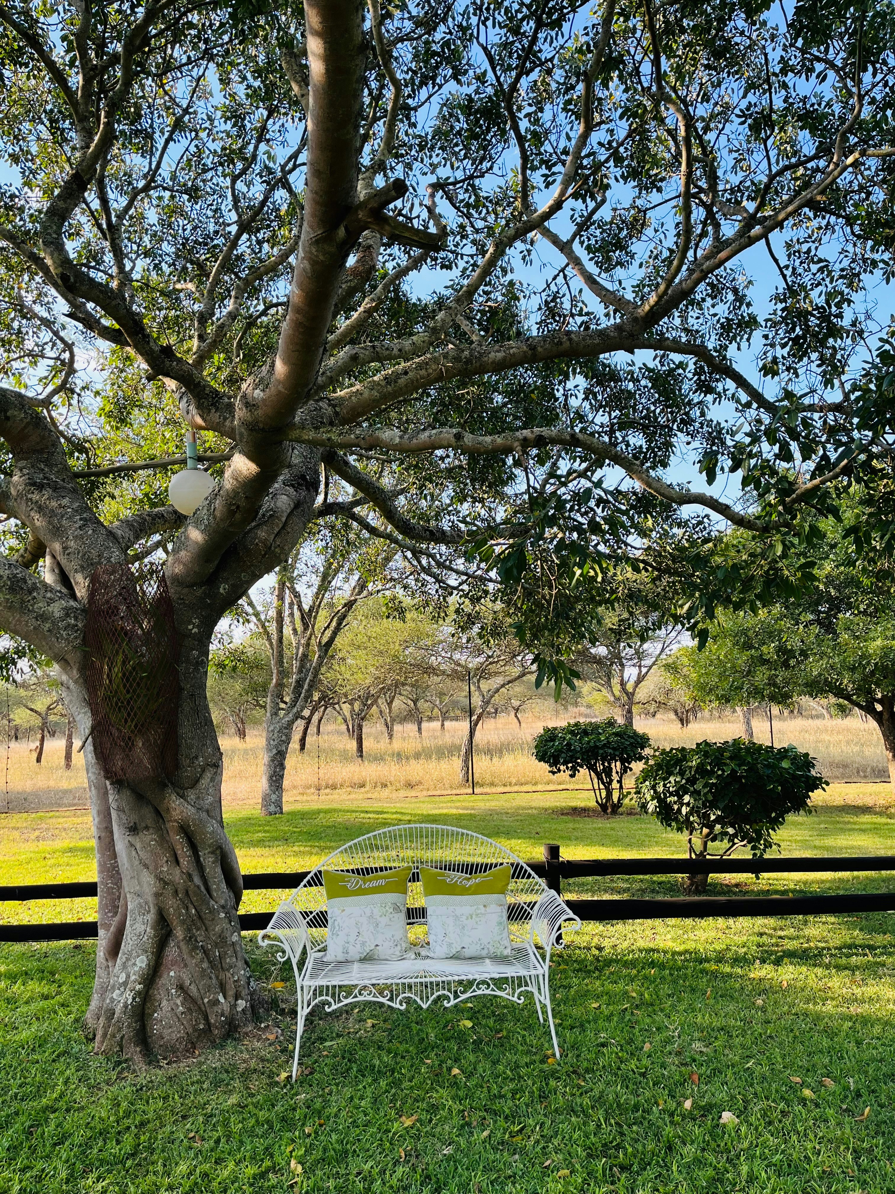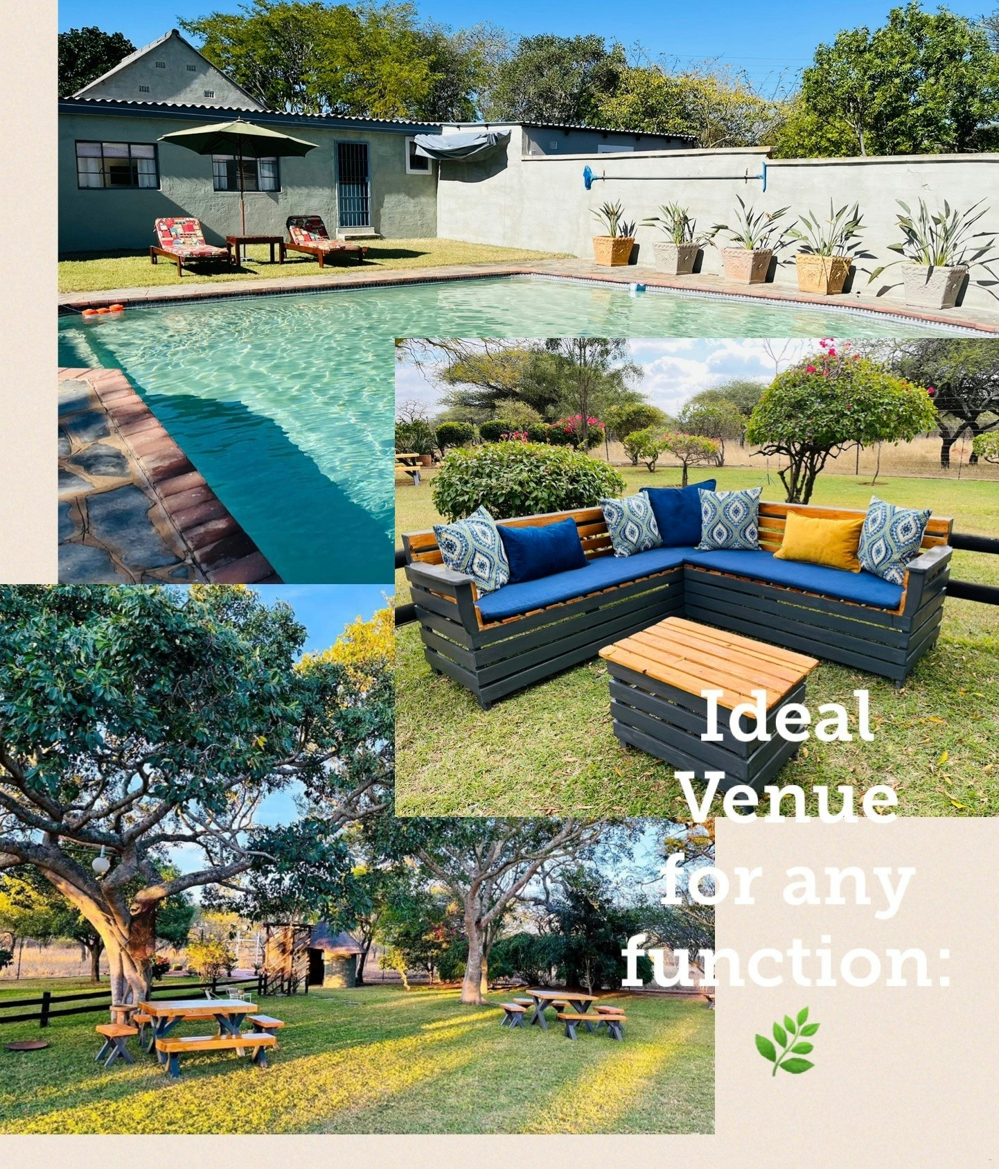 Guests have access to the lovely facilities on the property which include the communal swimming pool, the spacious dining area, the patios, and the well-maintained lawns. There is also a boma where guests can enjoy a lovely fire under the starry nights. There is also a Tea Garden restaurant open Tuesdays to Saturdays and a decor gift shop. There are roe deer and nyalas that are fed at sunset. Braai facilities are available.
