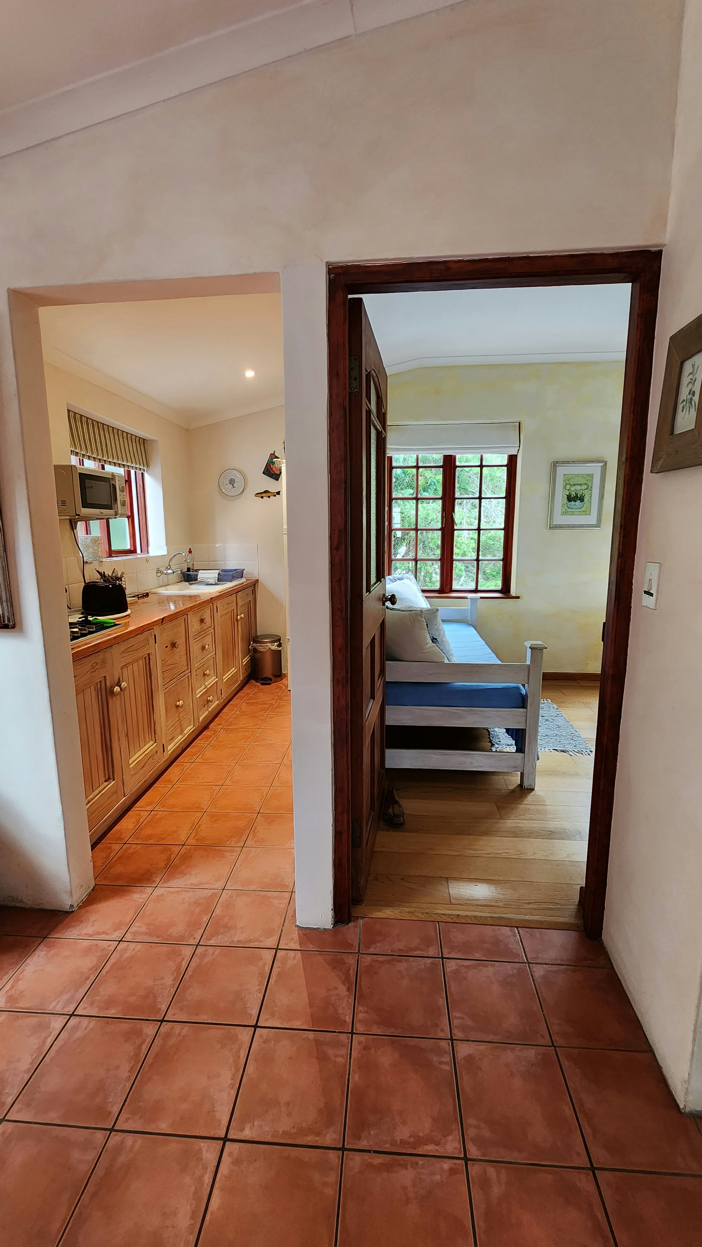 Belvidere Garden Apartment is a sunny and spacious upstairs garden apartment with a large terrace overlooking the garden and parkland in Belvidere Estate, Knysna.