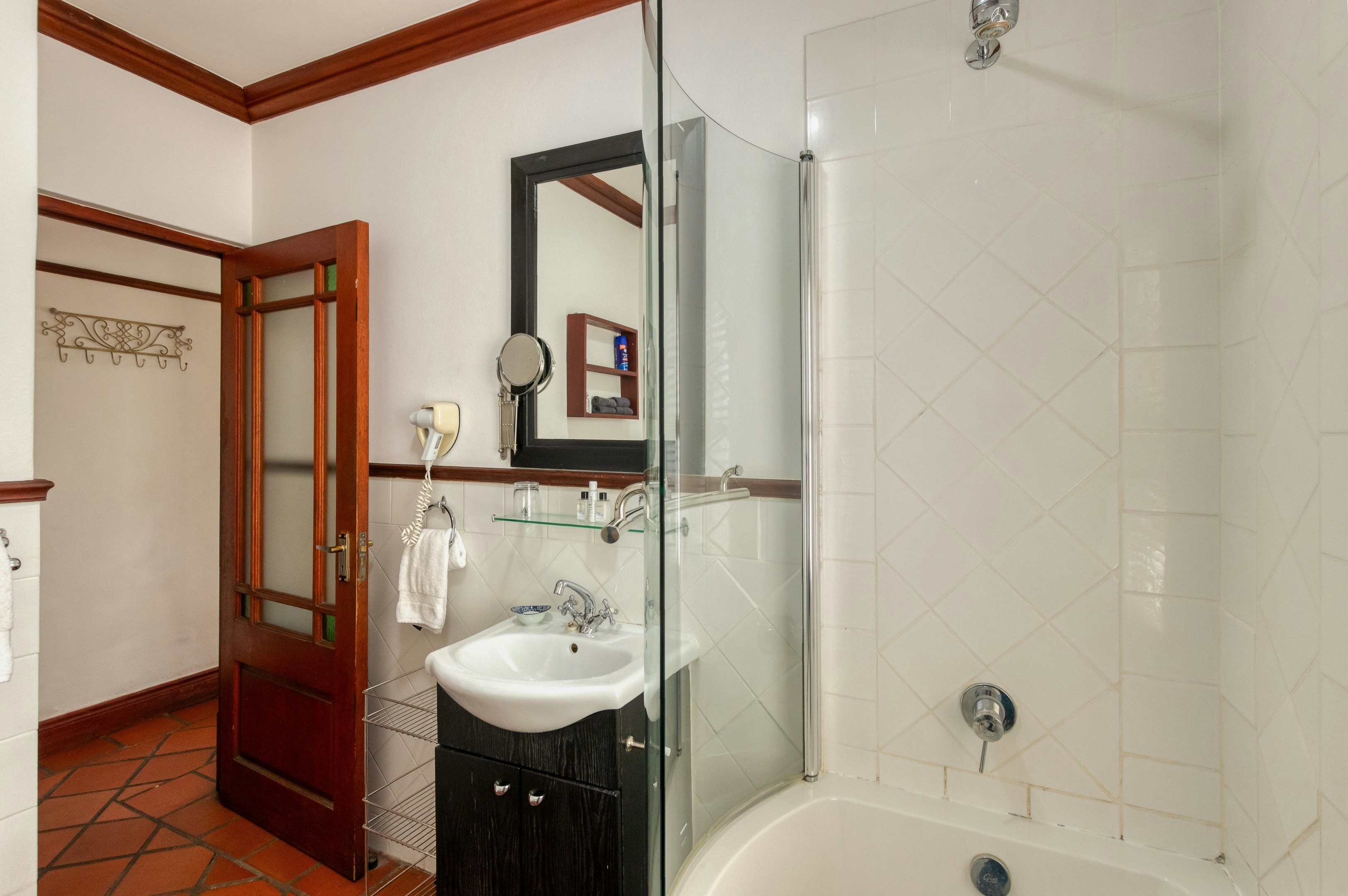 This spacious suite is located on the top floor of the guesthouse, offering 360-degree views from a large covered patio. The suite features a king-size bed and an en-suite bathroom with both a bath and a shower. Additional amenities include air-conditioning, a flat-screen TV with selected DStv channels, a kitchenette, and a private braai, making it ideal for a luxurious and relaxing stay.