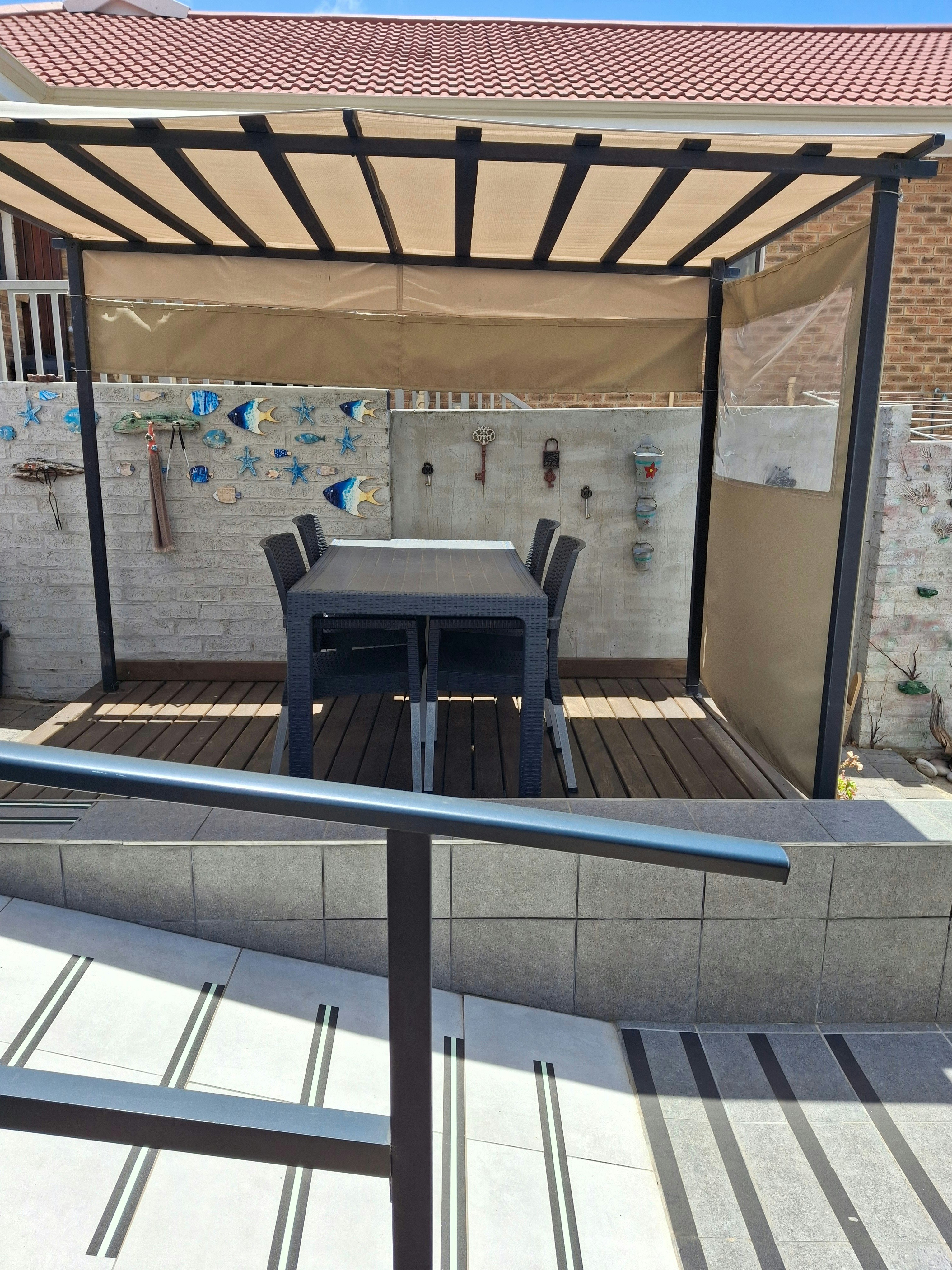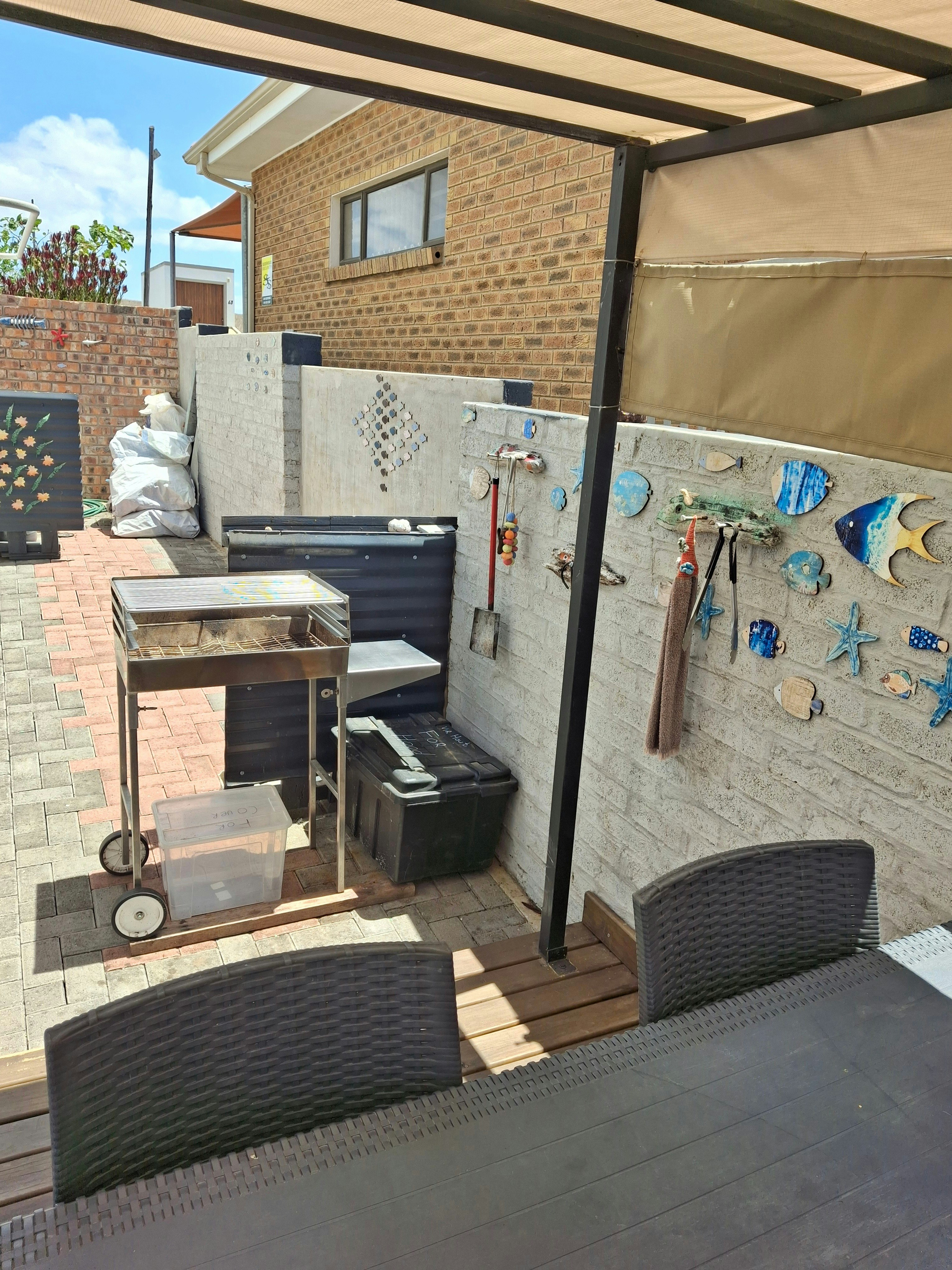 Buite het die kothuis 'n onderdakstoep met gemaklike buitemeubels en braaigeriewe. Veilige parkeerplek word voorsien. Alhoewel die eenheid op die eienaar se eiendom geleë is, word volledige privaatheid verseker.