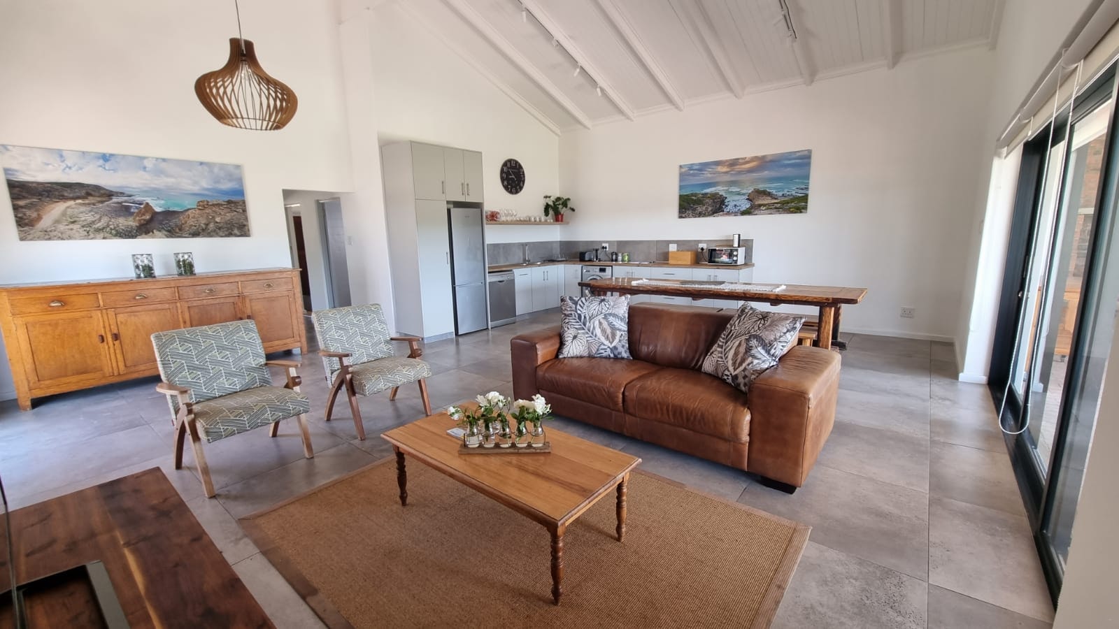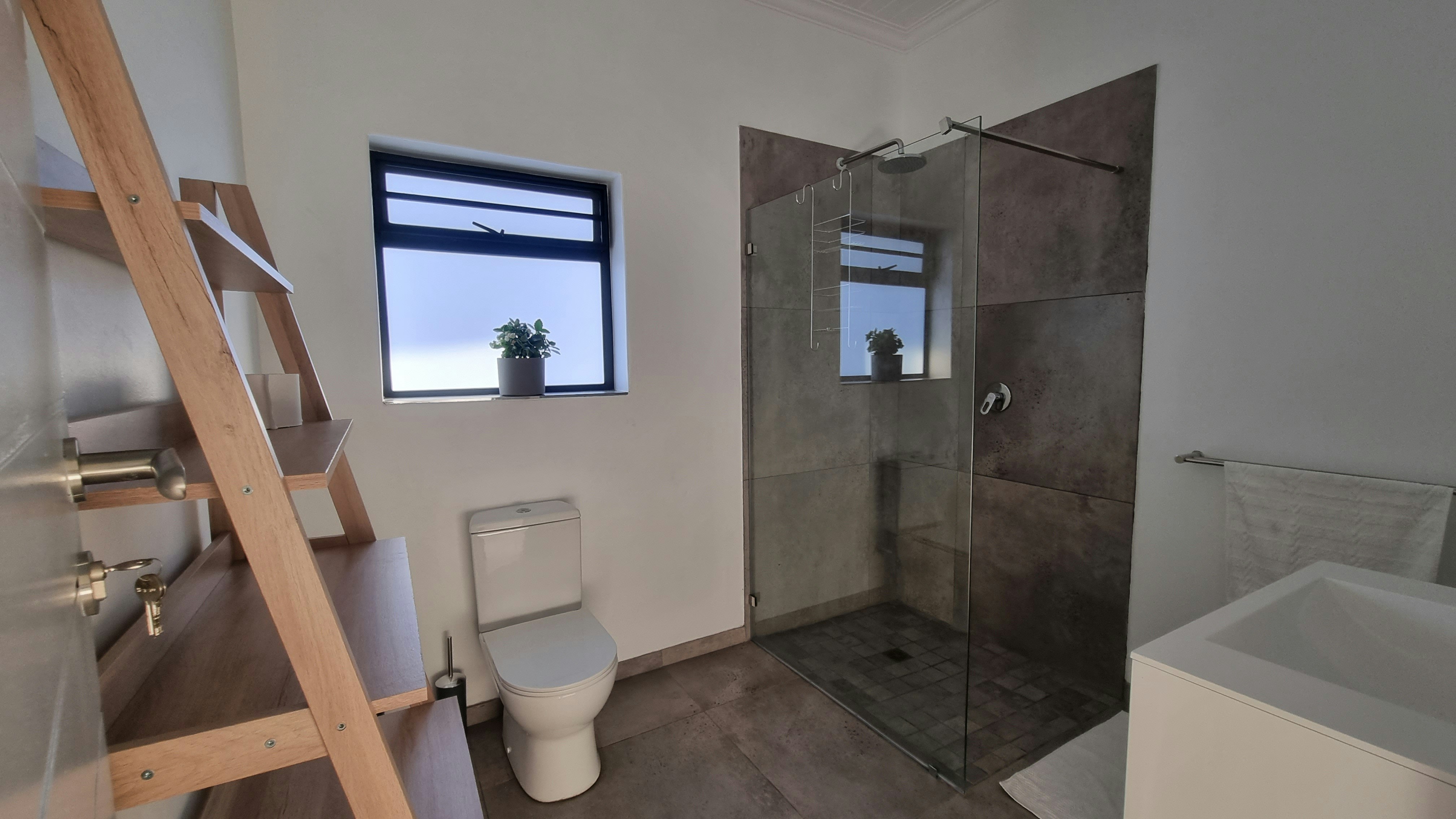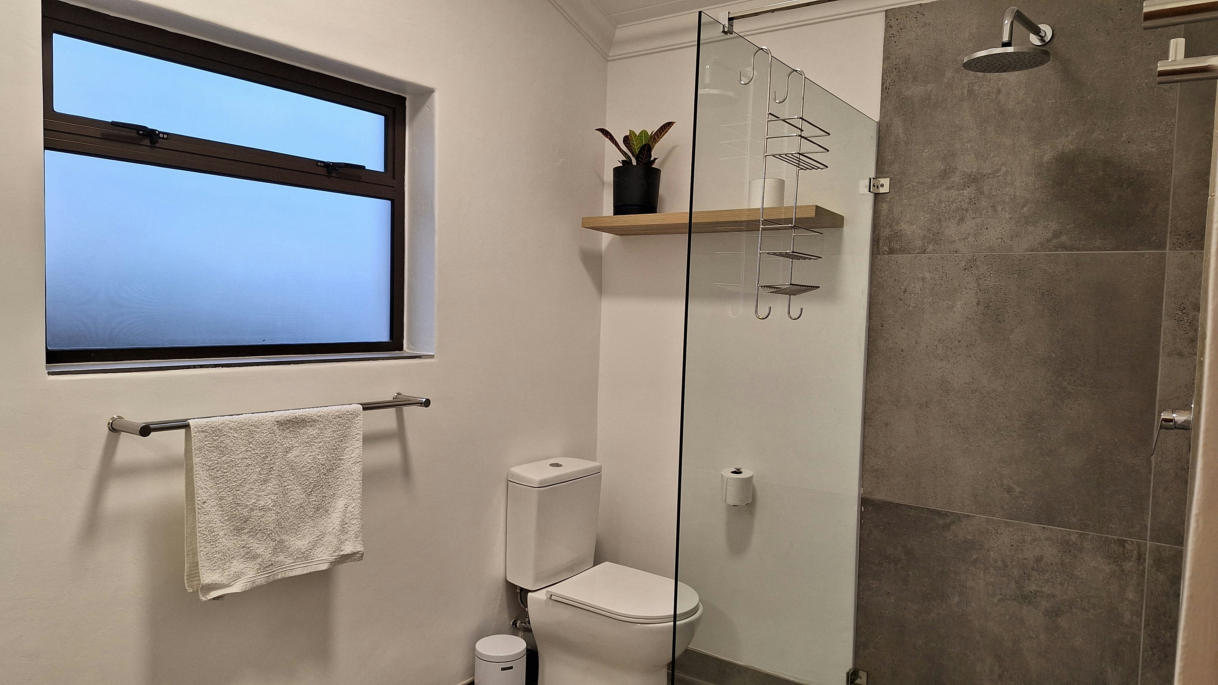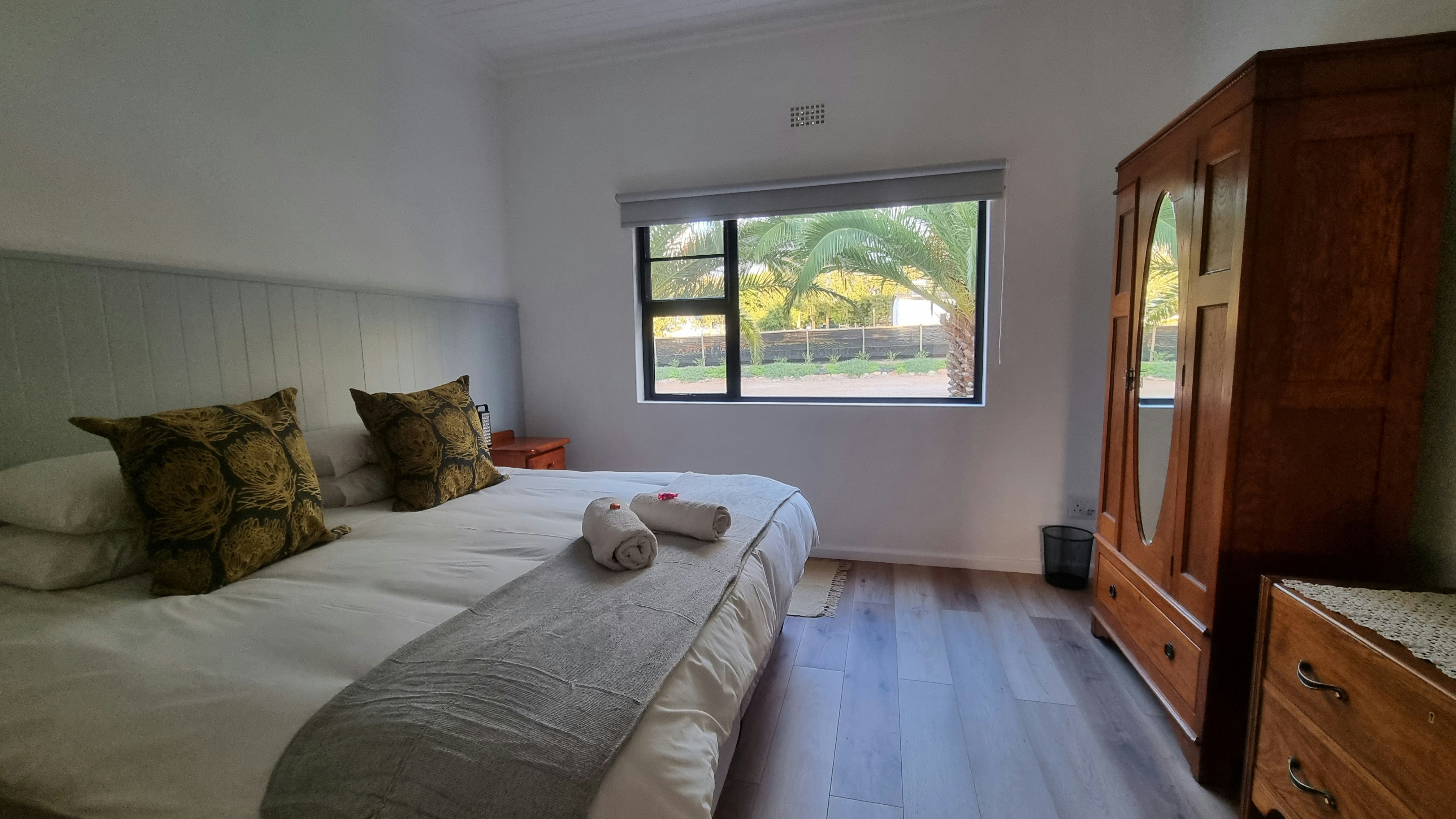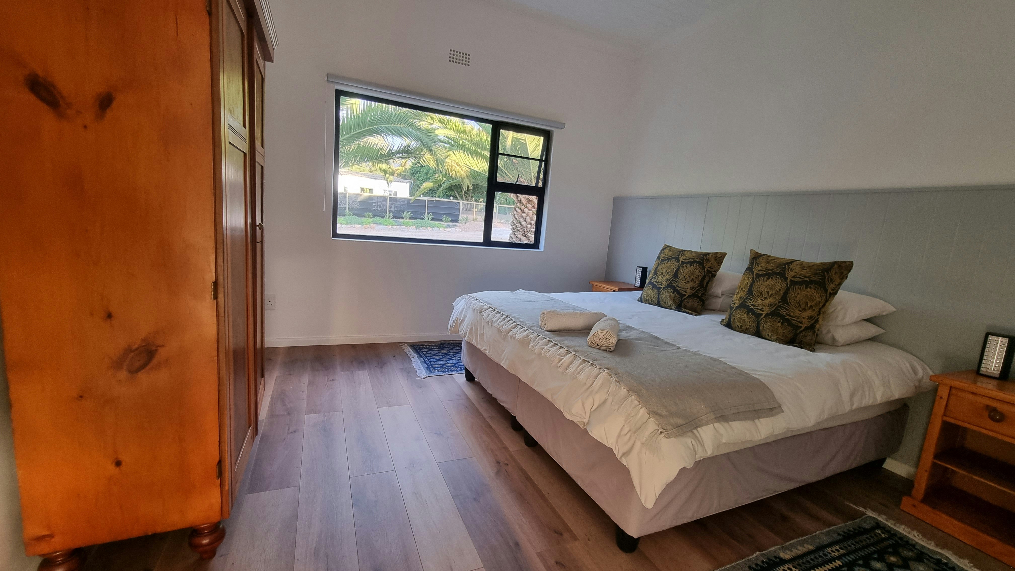 Die Vis comprises 2 beautiful bedrooms and 2 bathrooms. The main bedroom is furnished with a queen-size bed and an en-suite bathroom fitted with a shower, sink, and toilet. The second bedroom contains 3 single beds and guests in this bedroom use a guest bathroom with a shower, sink and toilet. All linen and towels are provided.