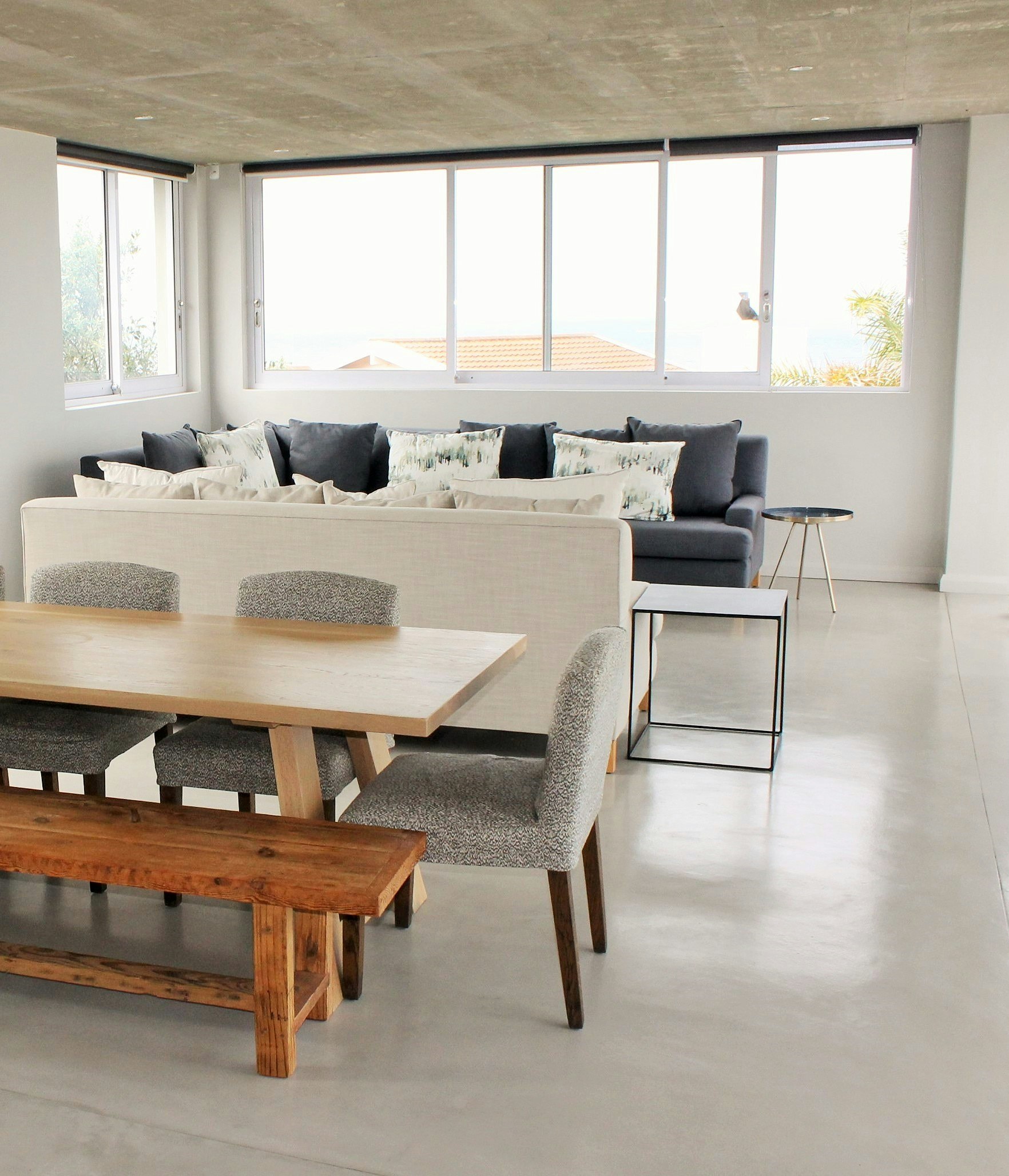 Betty is a fenced-in double-storey sleek designed home offering modern, minimalist style maximising natural light. The house is just around the corner from Beachy Head drive, less than 450 m by road to Robberg 5 Blue Flag beach.