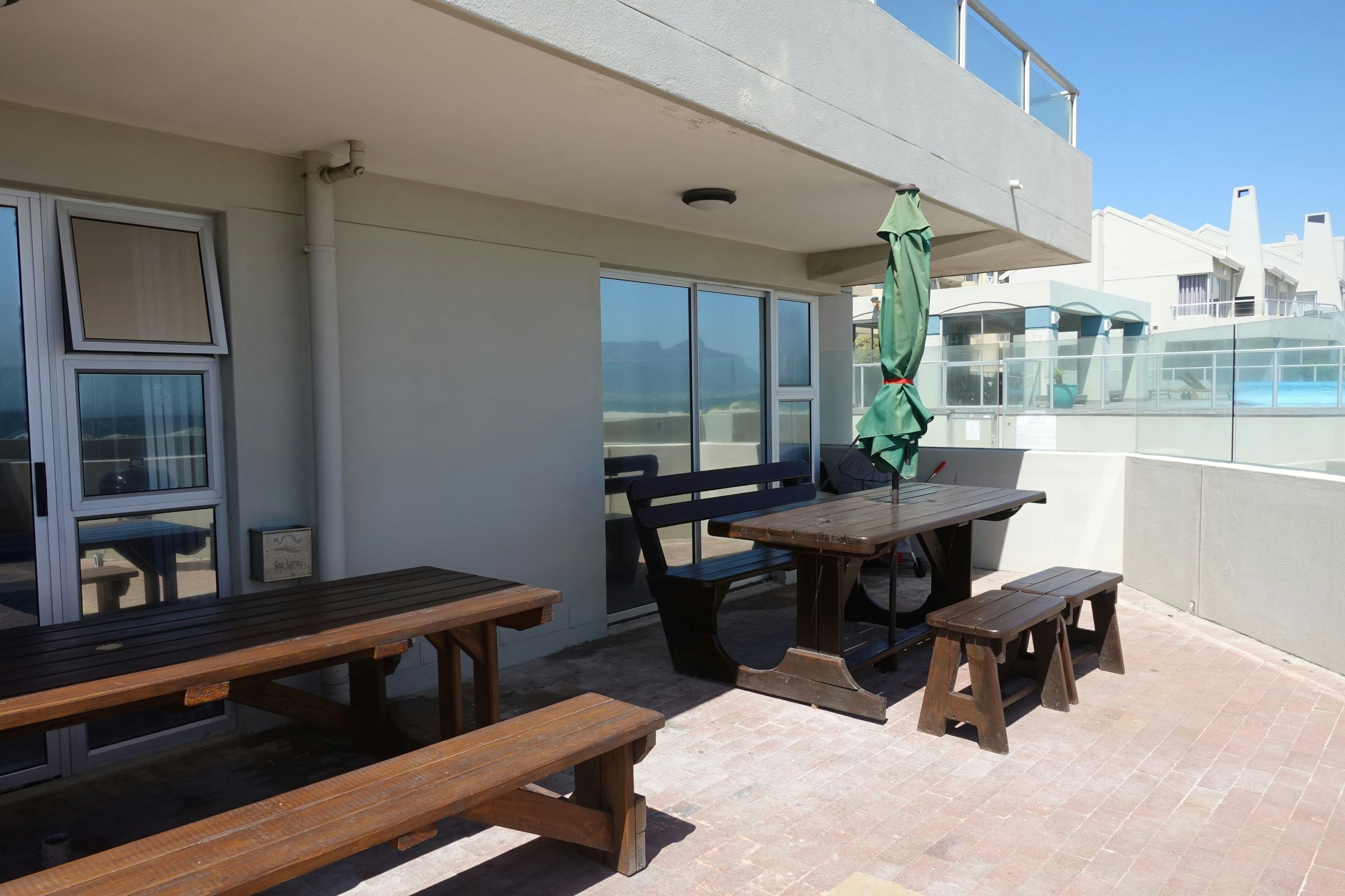 Die kompleks bied ook 'n gemeenskaplike verhitte swembad wat uitkyk oor Tafelberg, 24-uur-sekuriteit, en daar is een ondergrondse parkeerplek en parkeerplek van die straat af.