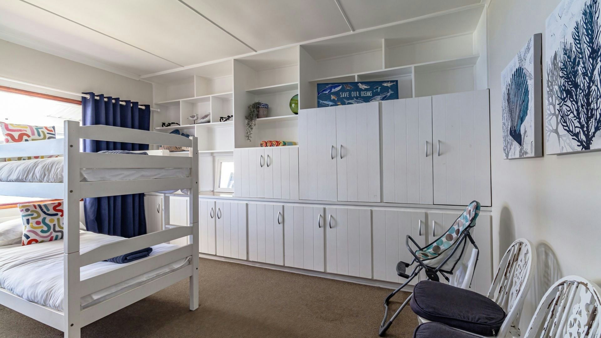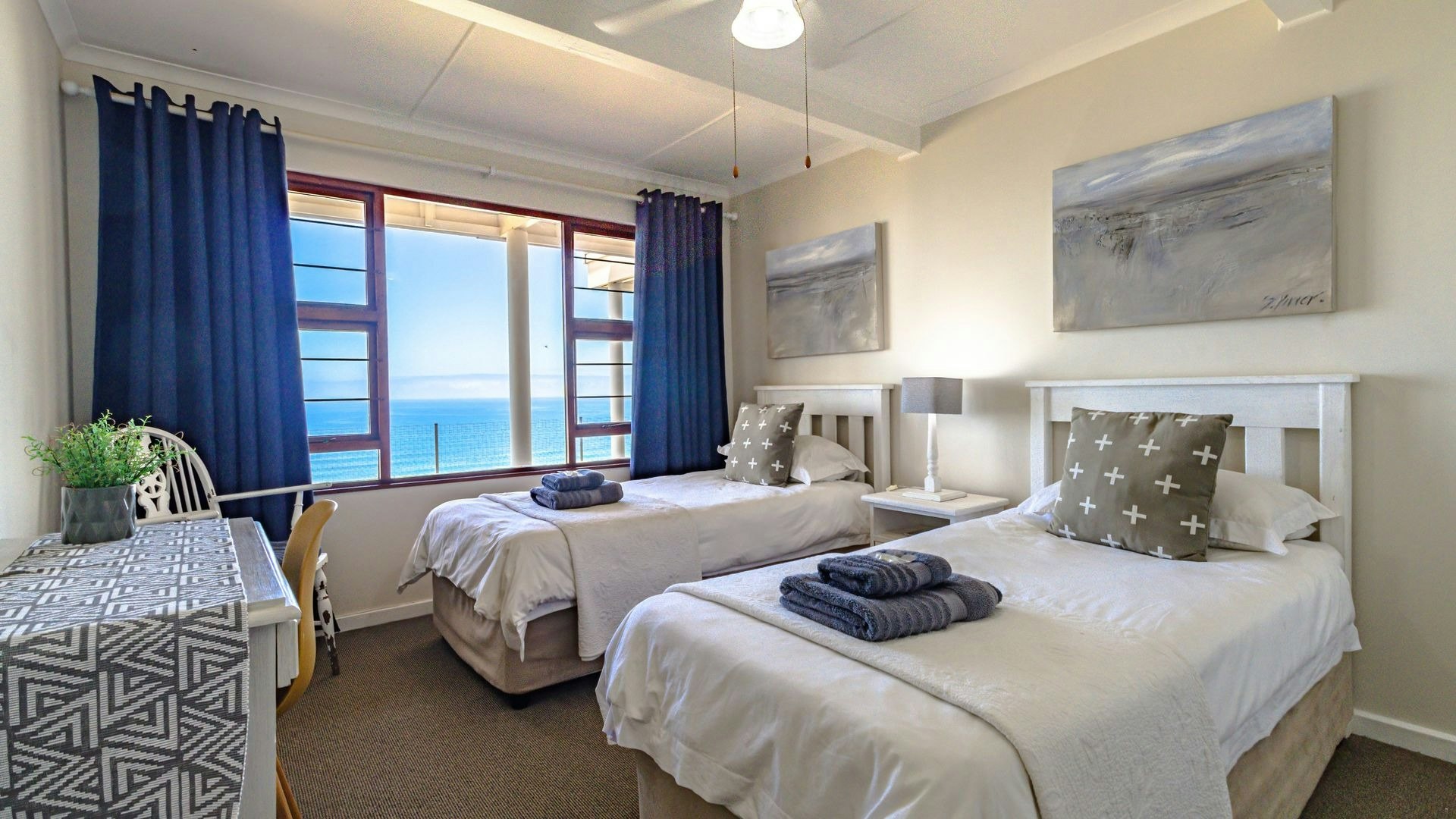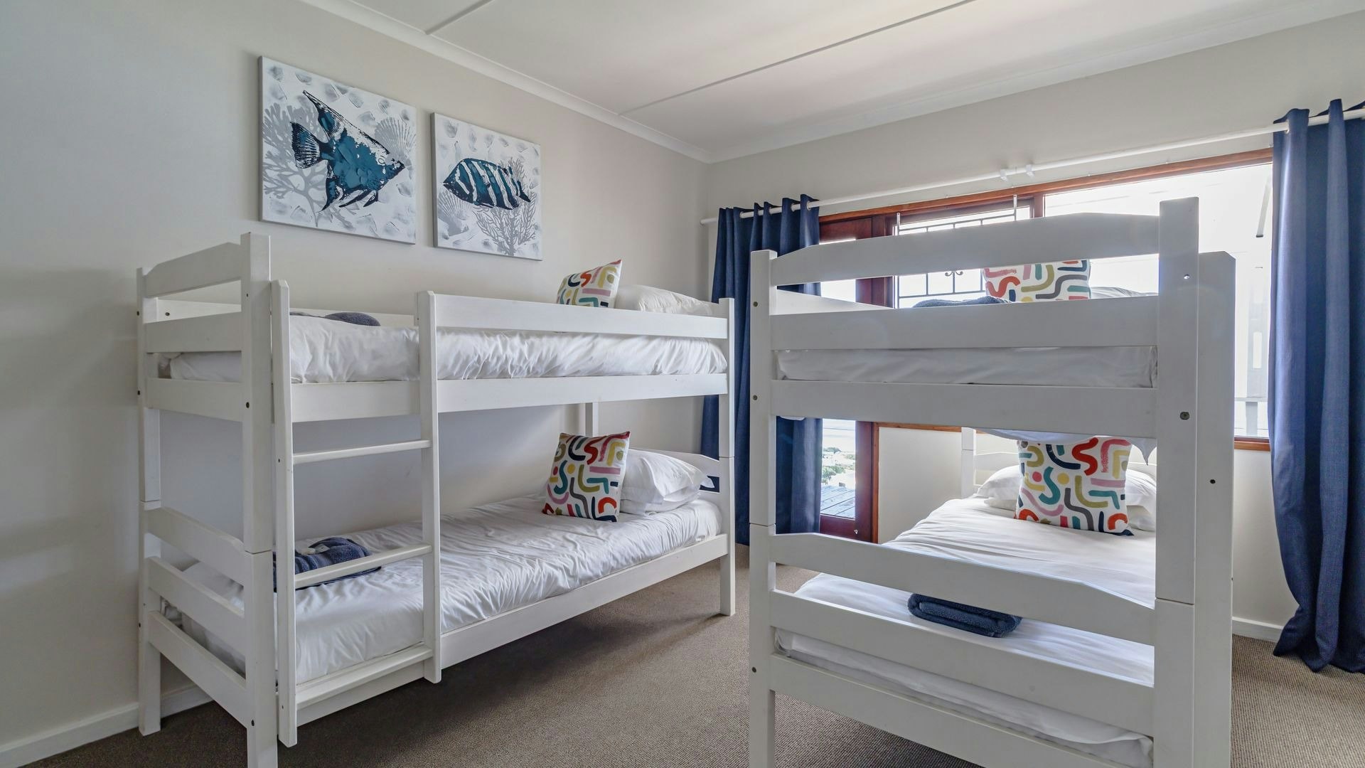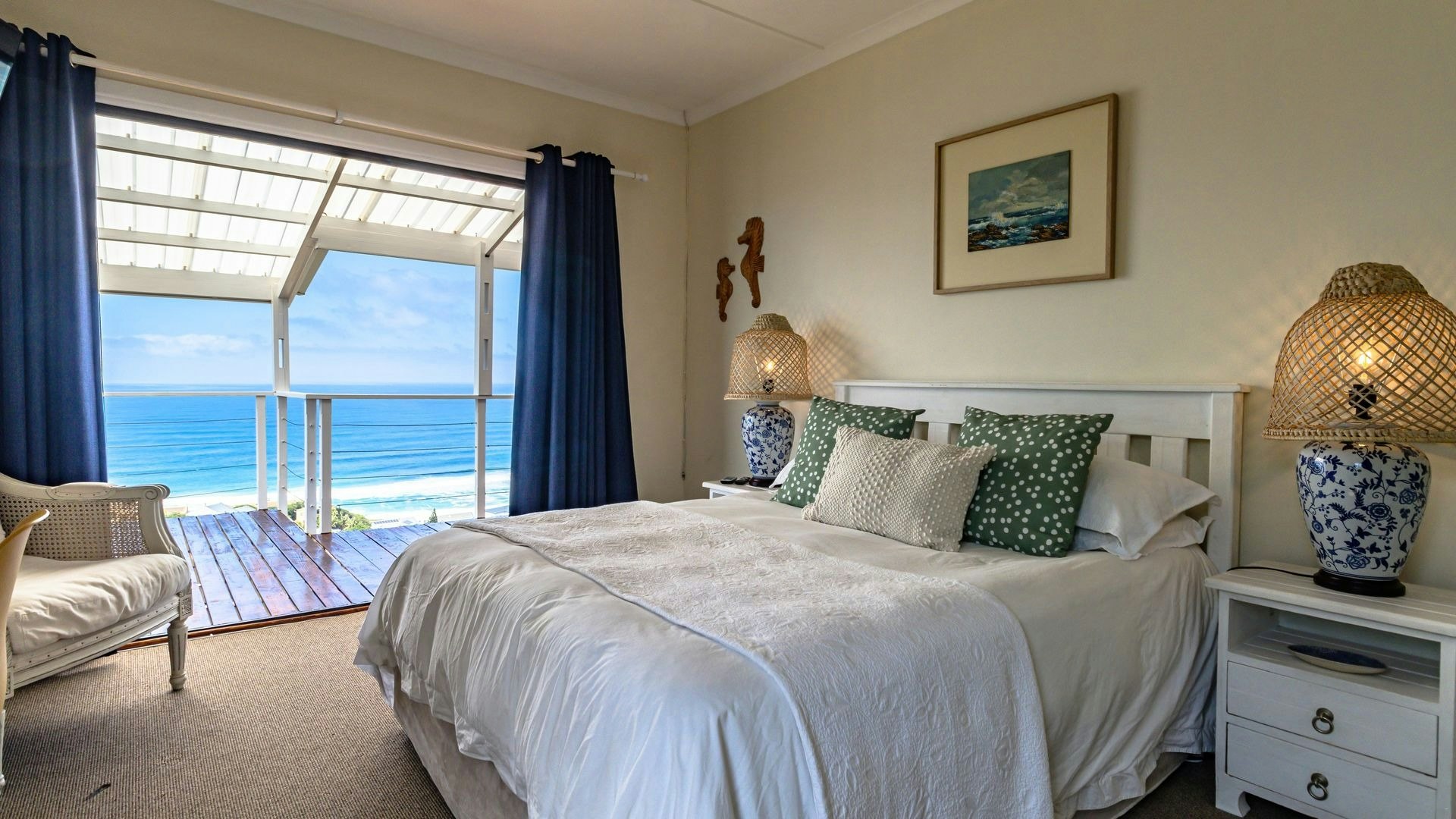 Hierdie eiendom kan gemaklik altesaam 16 gaste op 'n slag akkommodeer met 7 slaapkamers en 5 badkamers. Vier van die slaapkamers is ingerig met 'n koningingrootte-bed en nog 2 slaapkamers het enkelbeddens. Die oorblywende slaapkamer het 2 stapelbeddens. Beide bad- en stortgeriewe is in die huis beskikbaar.