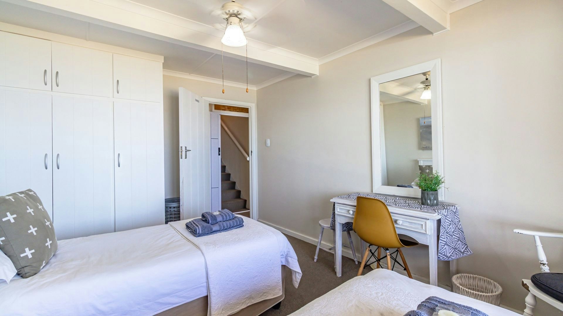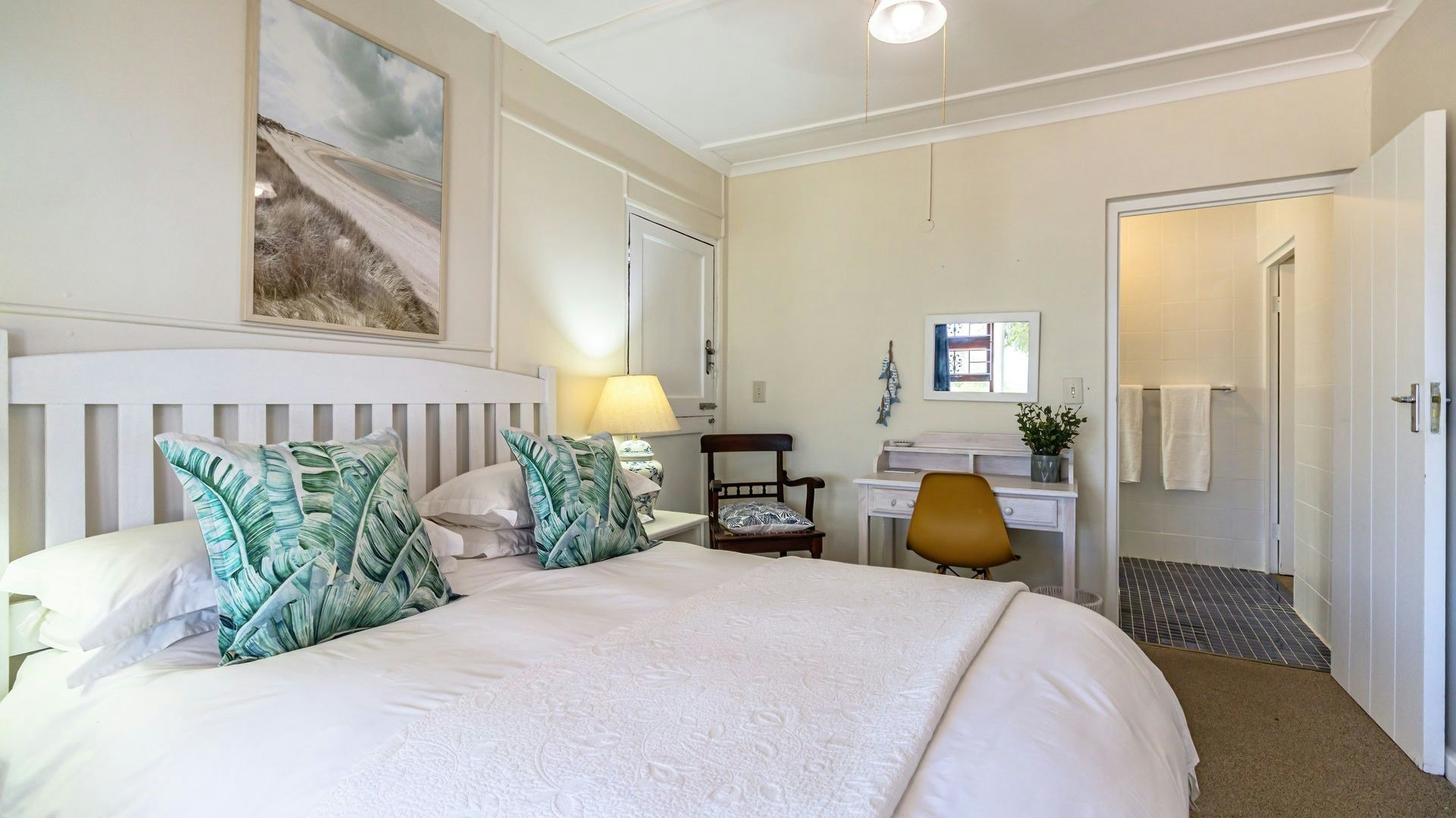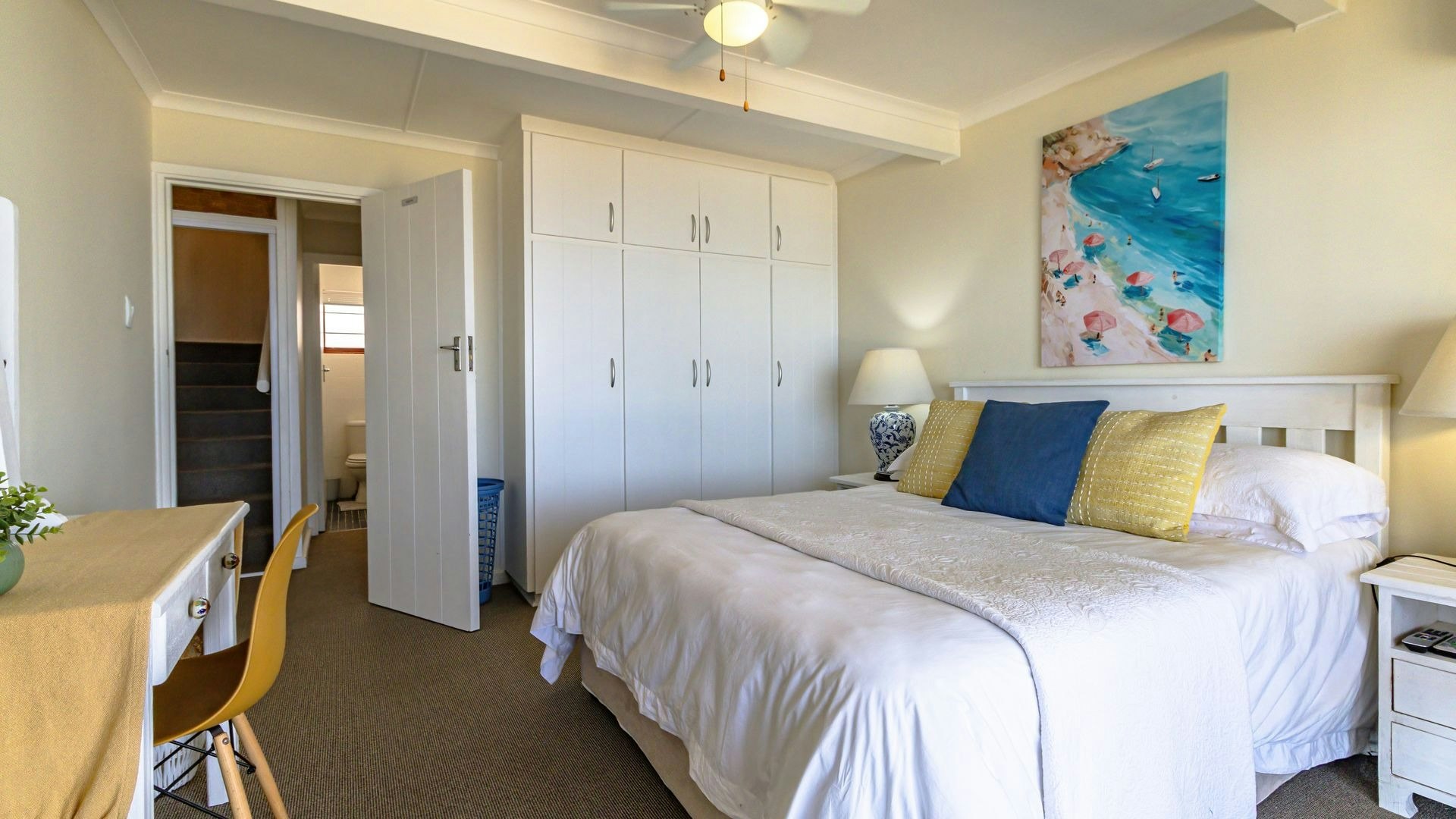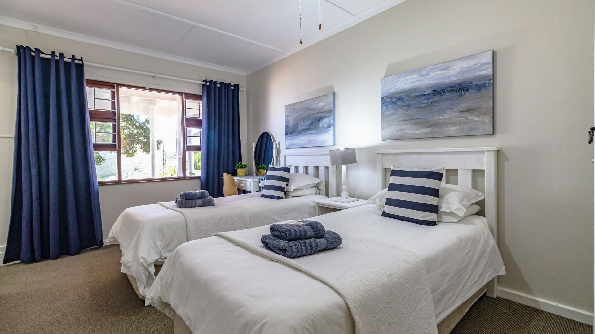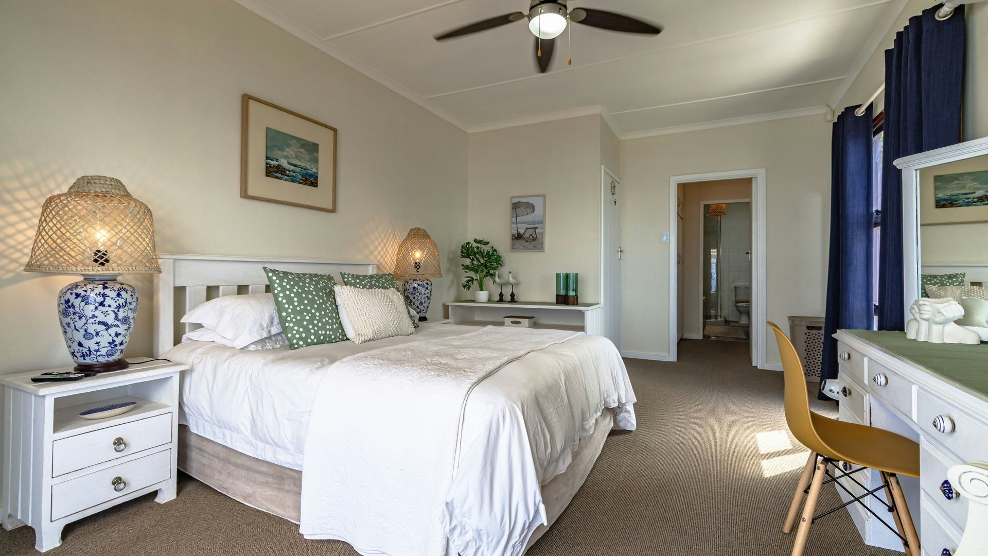 Hierdie eiendom kan gemaklik altesaam 16 gaste op 'n slag akkommodeer met 7 slaapkamers en 5 badkamers. Vier van die slaapkamers is ingerig met 'n koningingrootte-bed en nog 2 slaapkamers het enkelbeddens. Die oorblywende slaapkamer het 2 stapelbeddens. Beide bad- en stortgeriewe is in die huis beskikbaar.