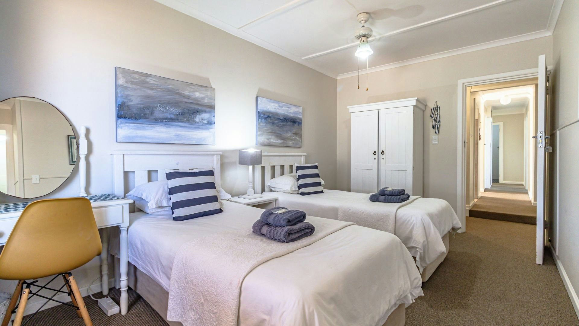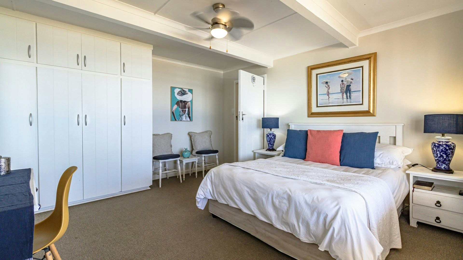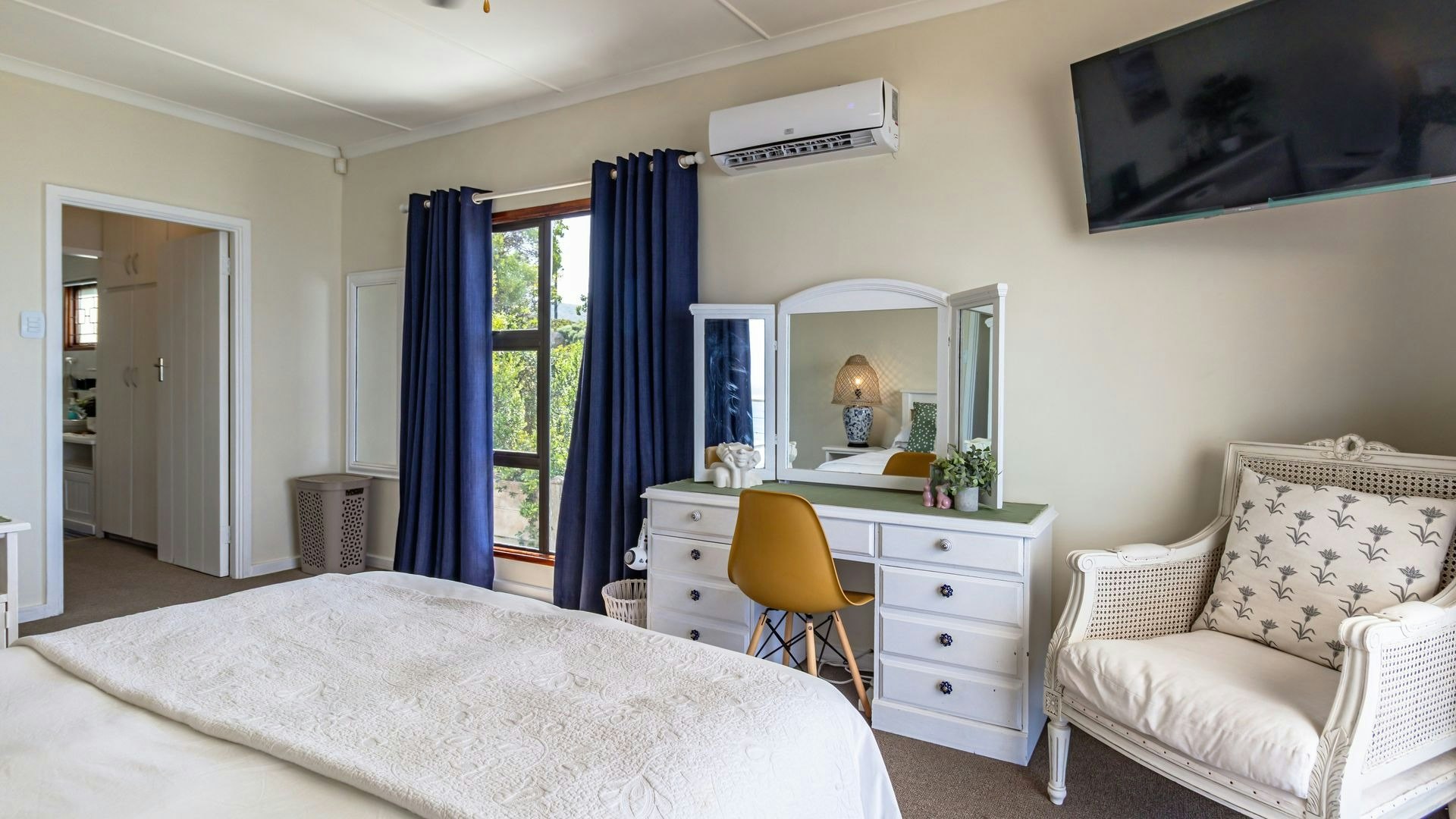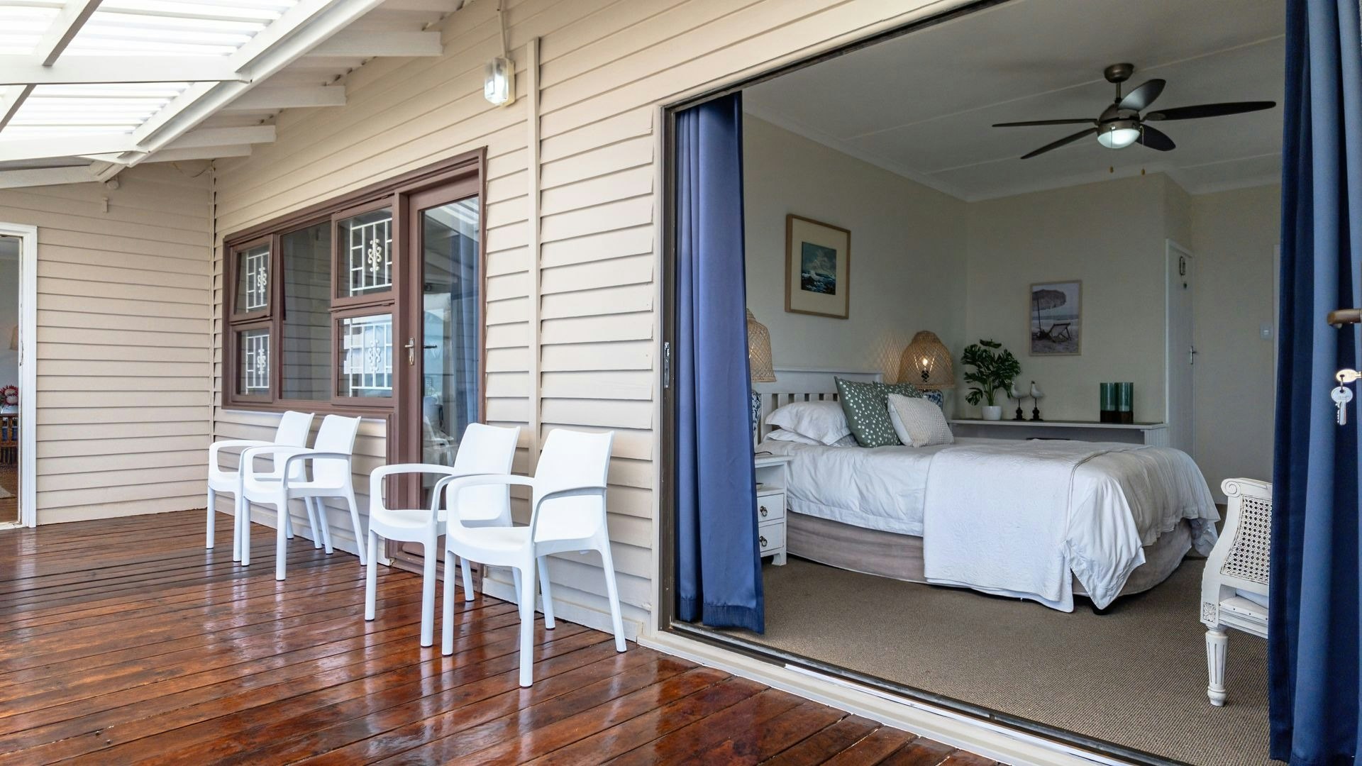 Hierdie eiendom kan gemaklik altesaam 16 gaste op 'n slag akkommodeer met 7 slaapkamers en 5 badkamers. Vier van die slaapkamers is ingerig met 'n koningingrootte-bed en nog 2 slaapkamers het enkelbeddens. Die oorblywende slaapkamer het 2 stapelbeddens. Beide bad- en stortgeriewe is in die huis beskikbaar.