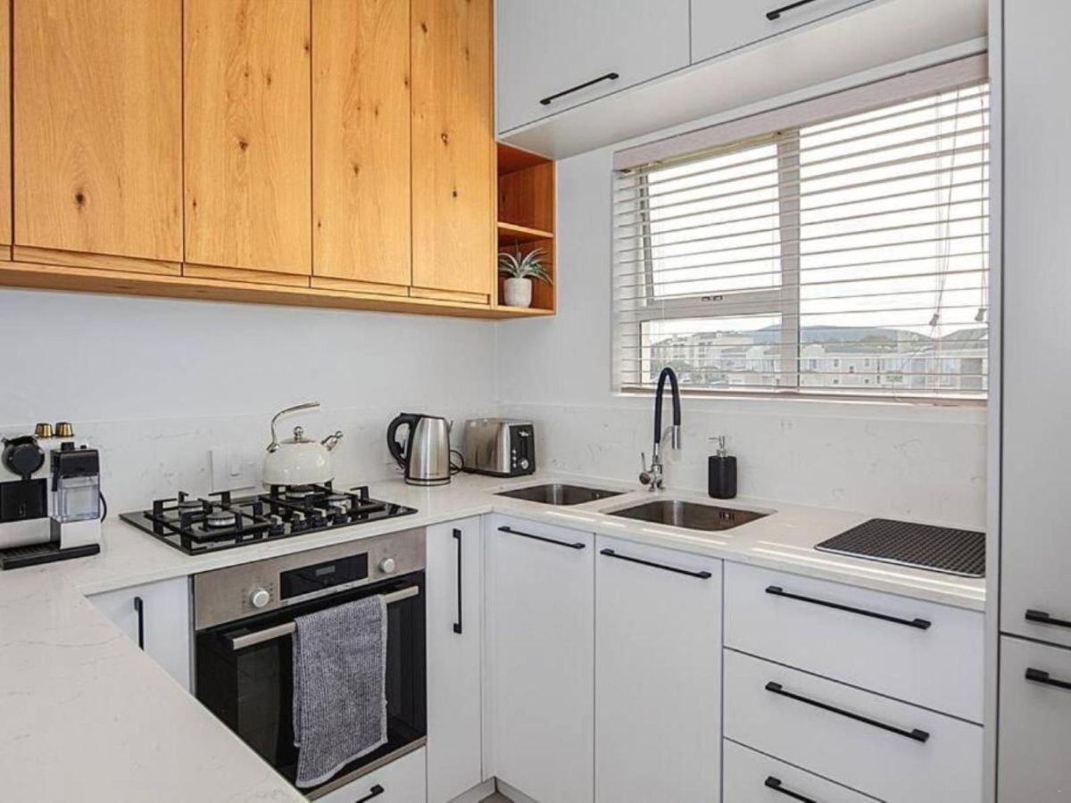 Die oopplan-leefarea bied 'n kombuis toegerus met 'n stoof, oond, ketel, broodrooster, eetgerei, breekware, eetgerei, mikrogolfoond, yskas-vrieskas, koffiemasjien en 'n ontbyttoonbank wat in die sitarea vloei, wat gemeubileer is met gemaklike sitplek, 'n TV, WiFi, draagbare verwarmer, en wat lei na 'n sonkamer met 'n uitsig oor die see en Tafelberg.