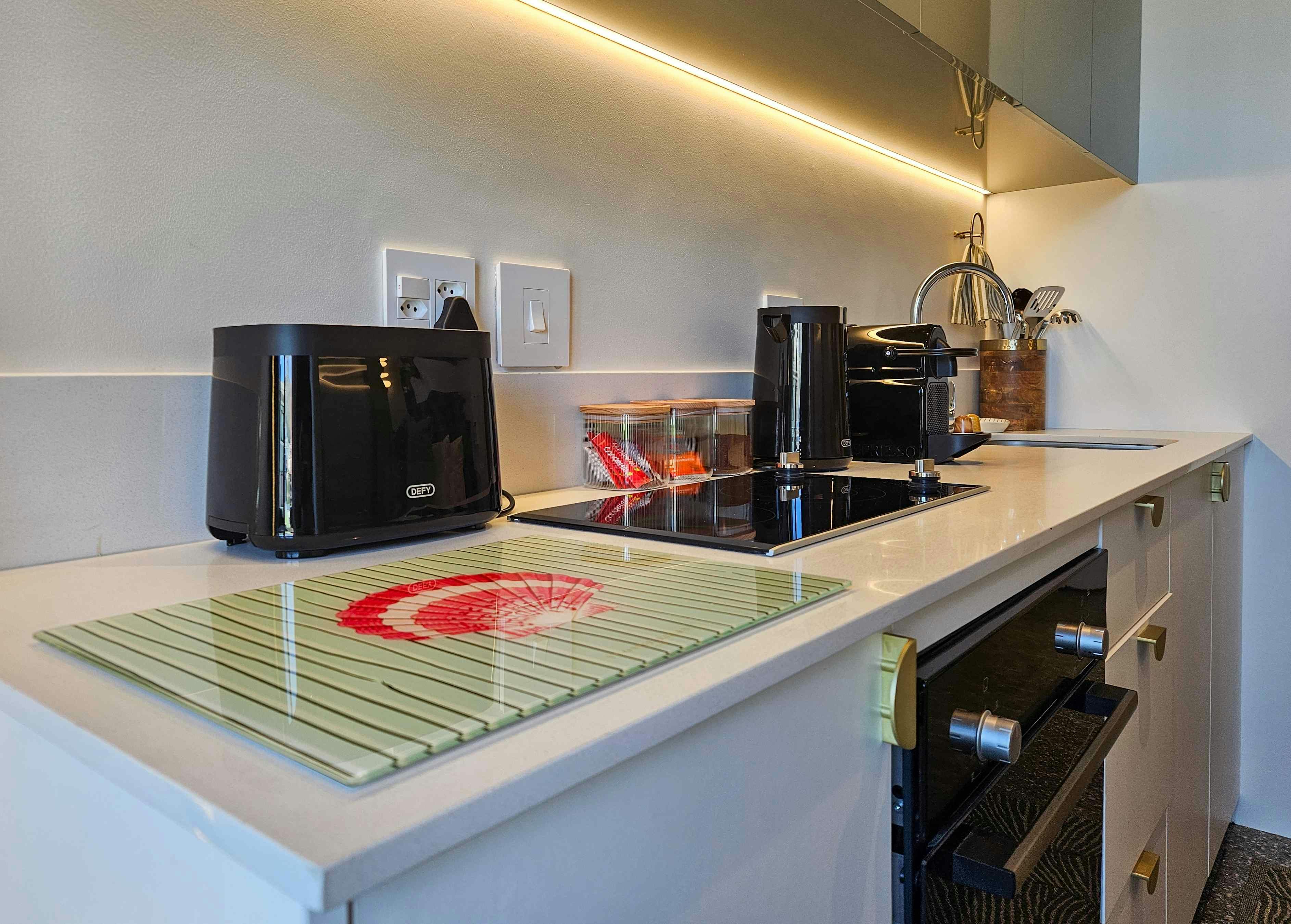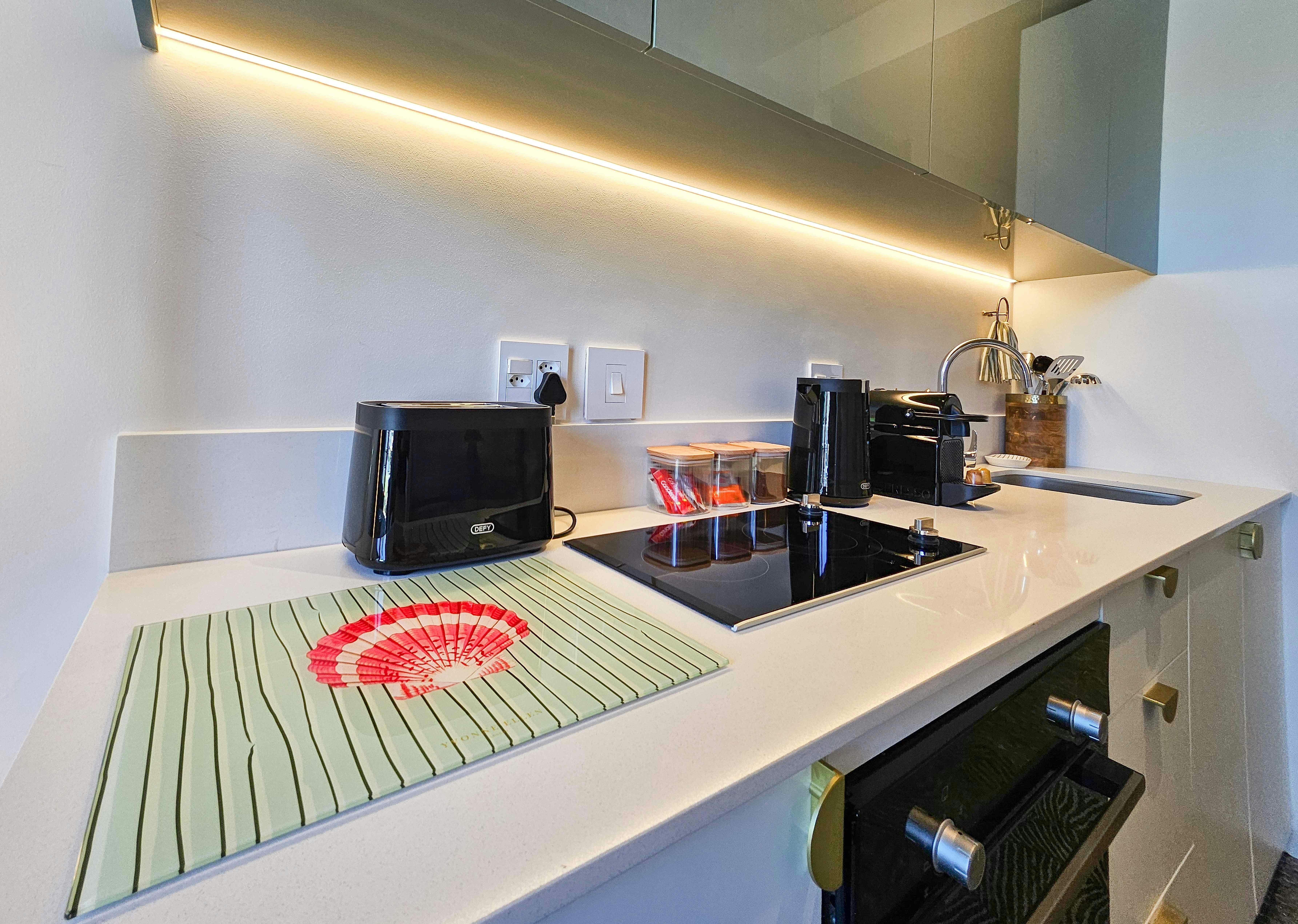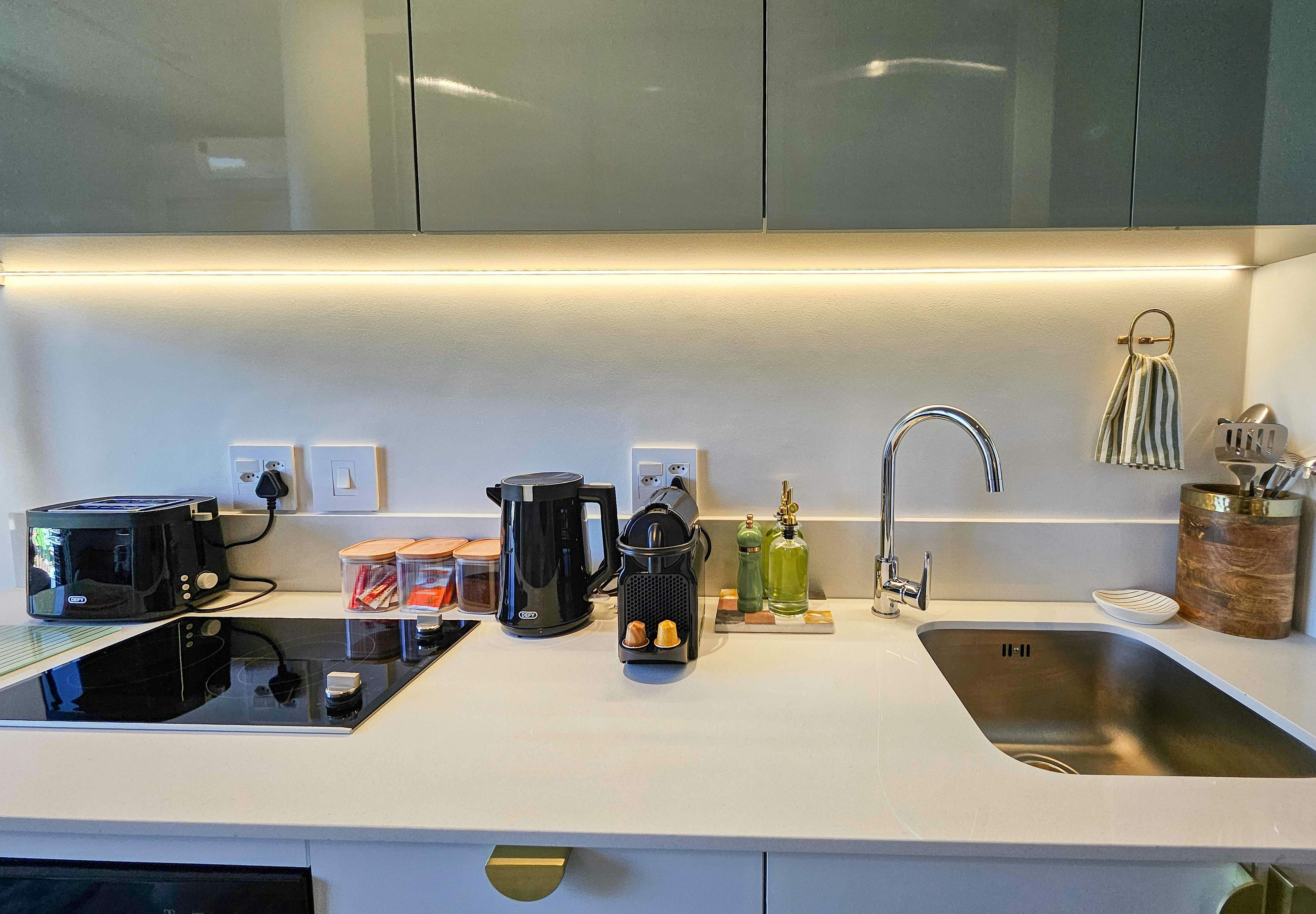 Die kombuisie is toegerus met 'n yskas-vrieskas, mikrogolfoond, ketel, stoof, oond, broodrooster, tee- en koffiemaakgeriewe en 'n klein eetkamertafel. Bykomende geriewe sluit in lugversorging, 'n TV met stroomvermoë en gratis WiFi. Die eenheid maak oop na 'n privaat balkon met uitsigte oor die omliggende omgewing.