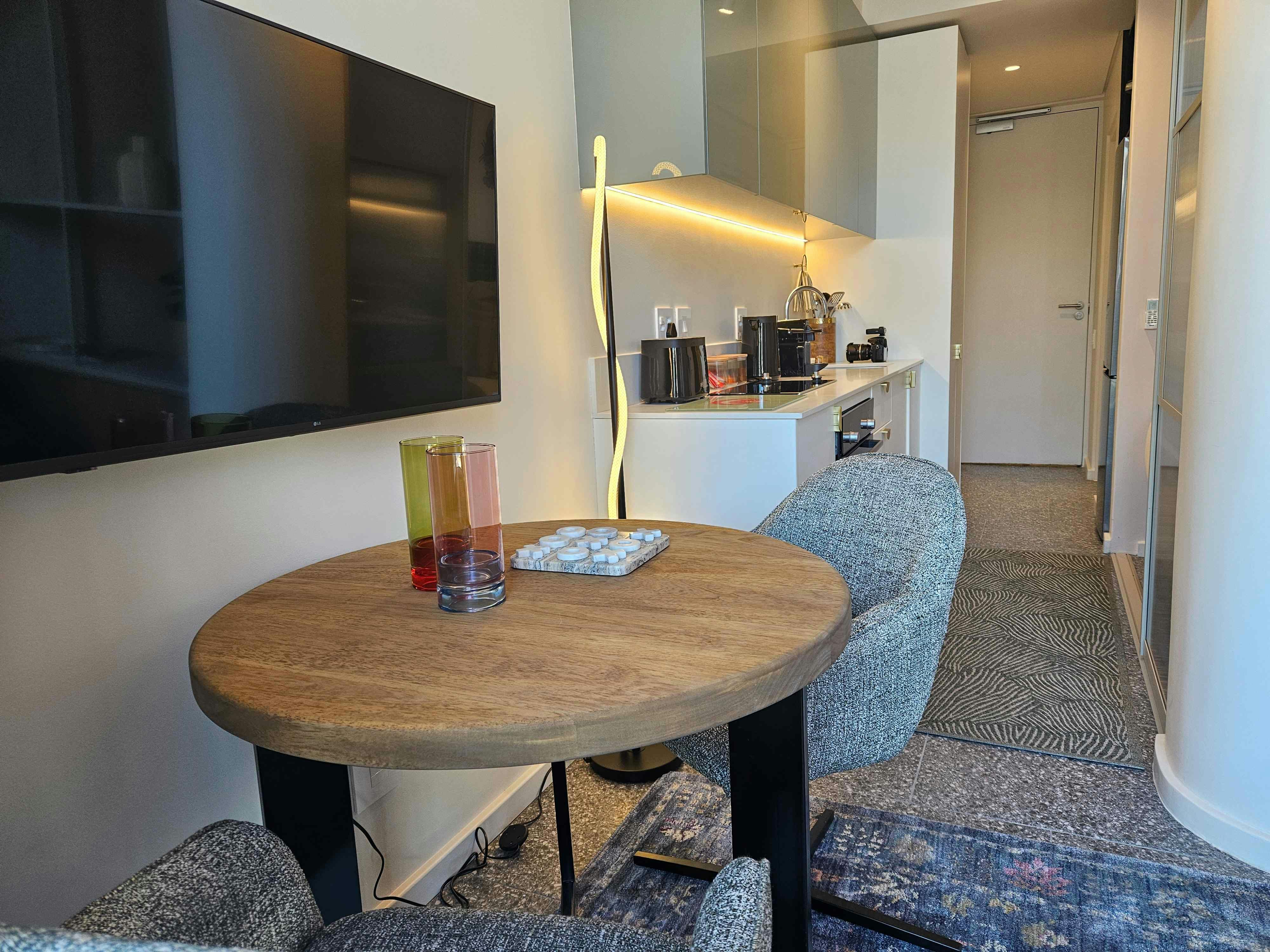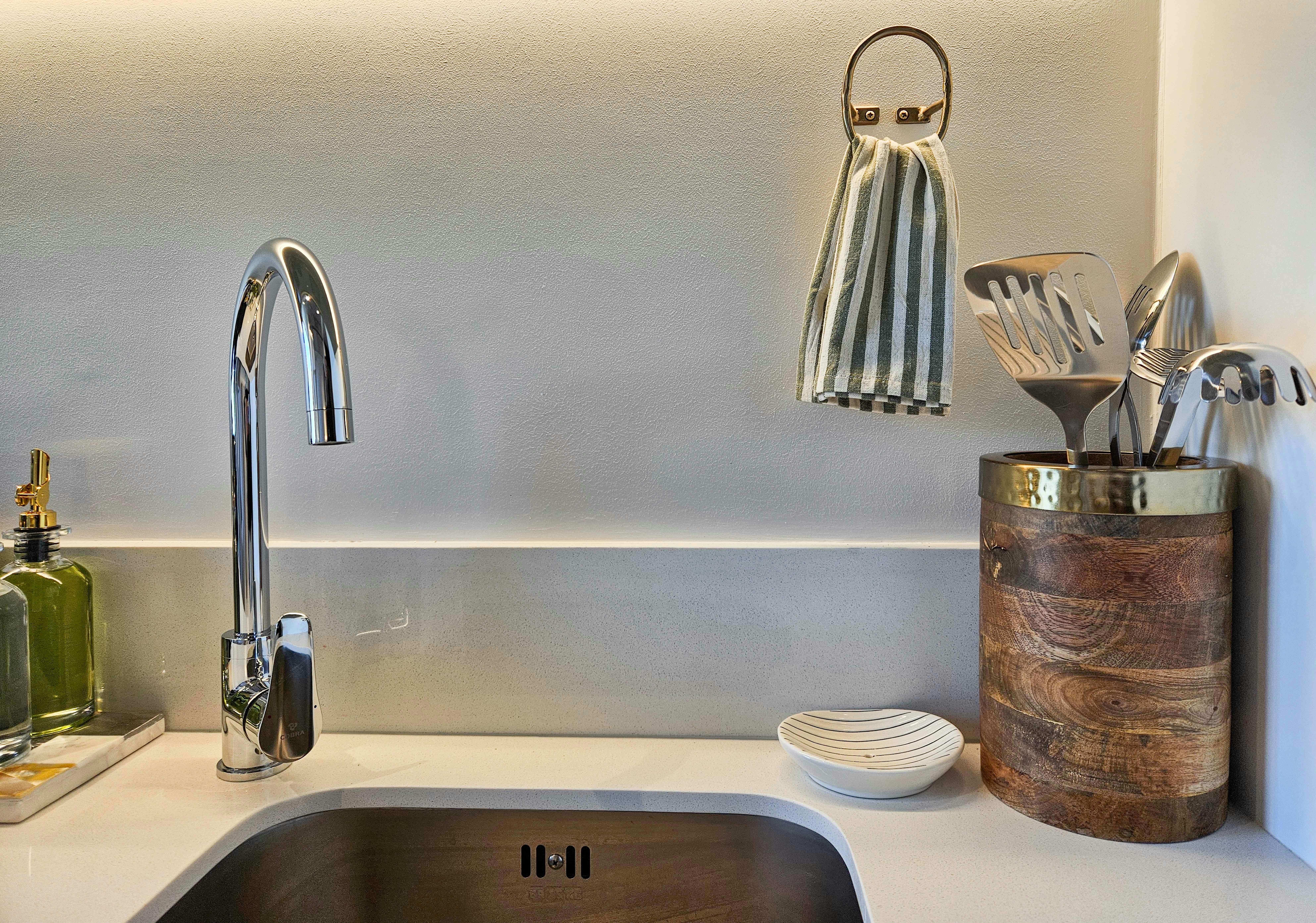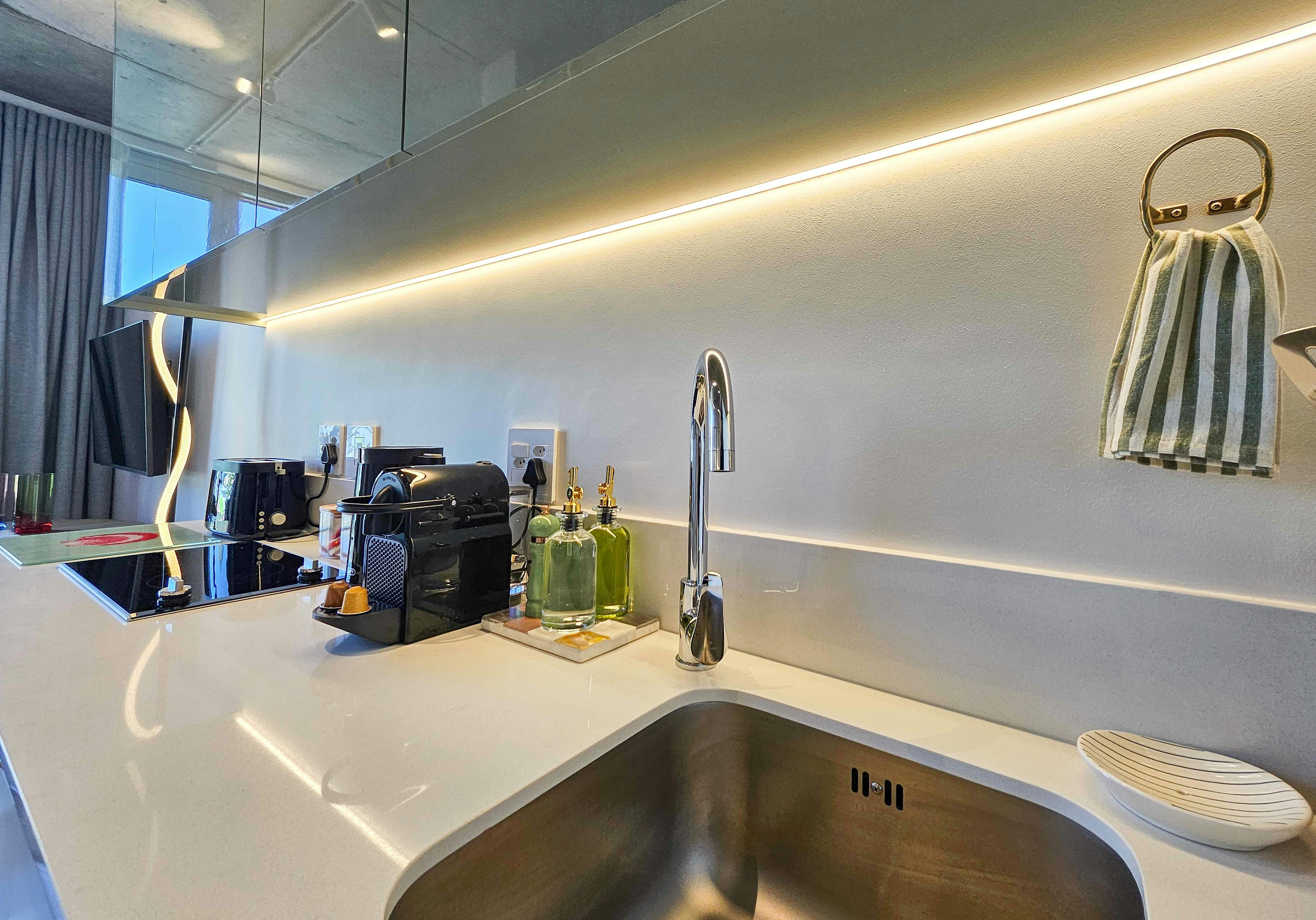 Die kombuisie is toegerus met 'n yskas-vrieskas, mikrogolfoond, ketel, stoof, oond, broodrooster, tee- en koffiemaakgeriewe en 'n klein eetkamertafel. Bykomende geriewe sluit in lugversorging, 'n TV met stroomvermoë en gratis WiFi. Die eenheid maak oop na 'n privaat balkon met uitsigte oor die omliggende omgewing.