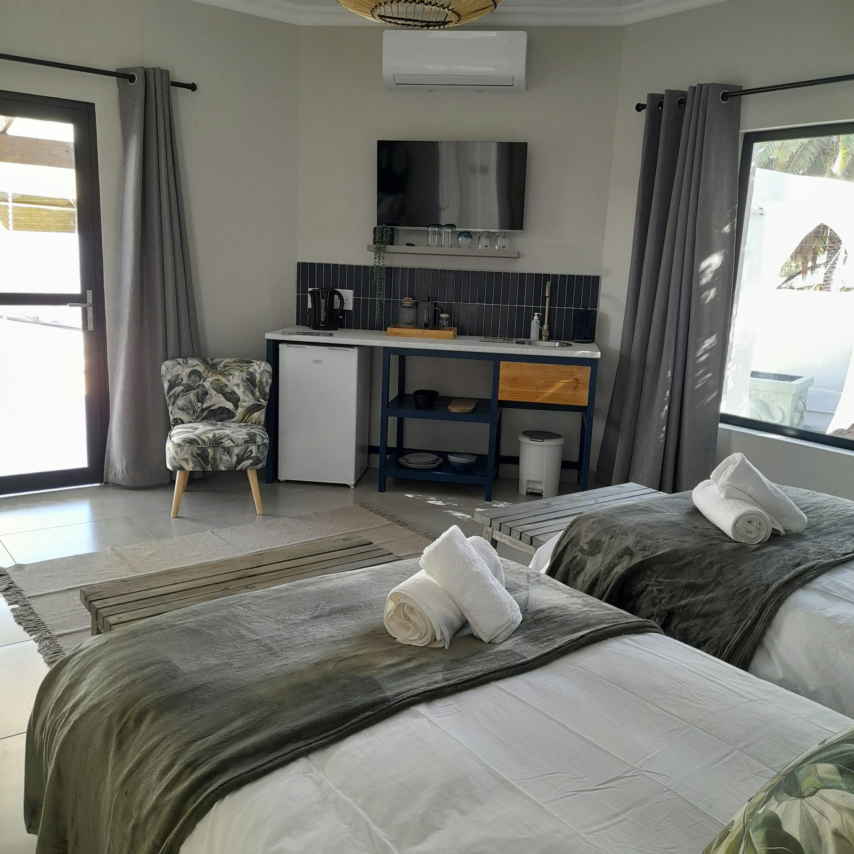 Die gastehuis beskik oor 3 pragtig ingerigte kamers, elk met 'n privaat ingang en en suite-badkamer. Gaste kan gemaklike beddens, sagte dekbedovertrekke, kraakvars linne en deurdagte geriewe soos haardroërs, tee- en koffiemaakgeriewe, 'n yskassie en toegang tot gratis WiFi verwag.