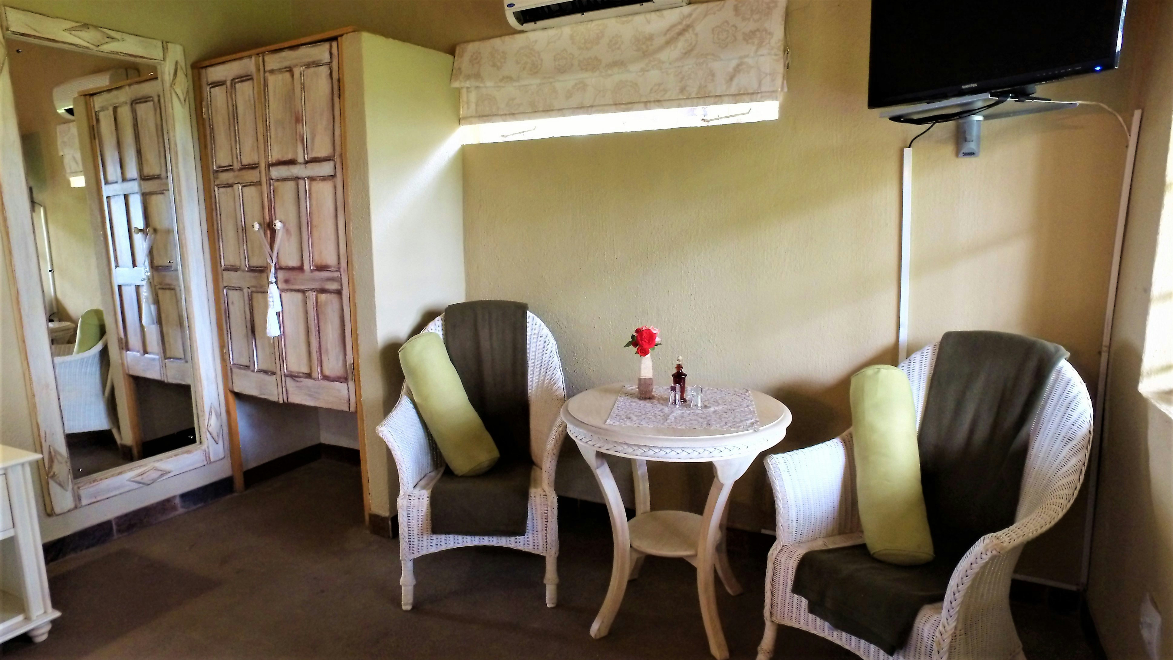 'n Heilsame ontbyt word op die terras voorgesit en ander heerlike maaltye kan gereël word op versoek. Die gastehuis het ook 'n groot, verhewe swembad langs 'n Maroela-boom. Ander geriewe beskikbaar op die perseel sluit braaigeriewe, 'n koffiewinkel wat oop is van Maandae tot Saterdae, en 'n speelgrond vir kinders in. Die groot perseel bied geleenthede vir heerlike wandelinge langs die rivier waar jy 'n verskeidenheid voëls en wild kan sien.