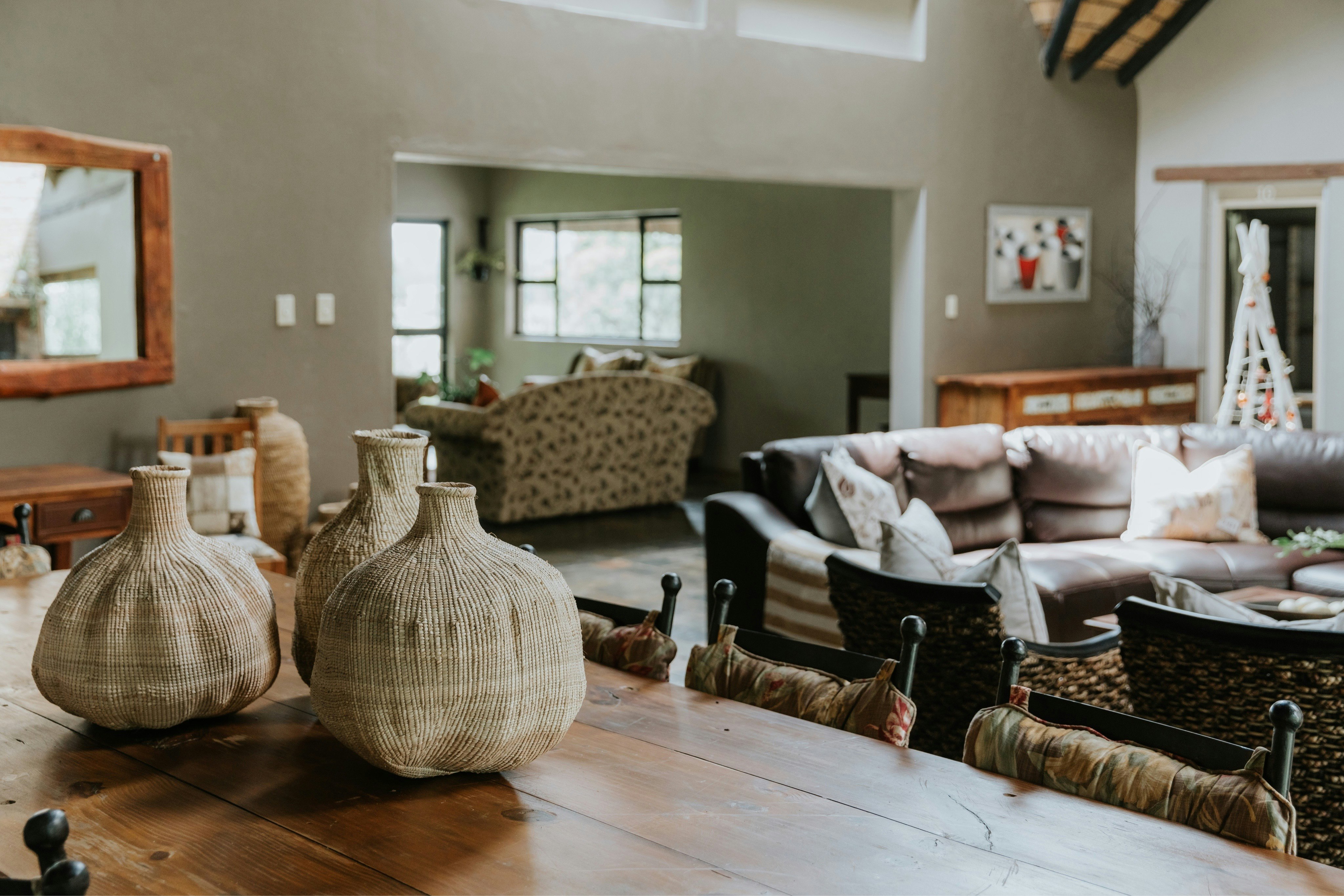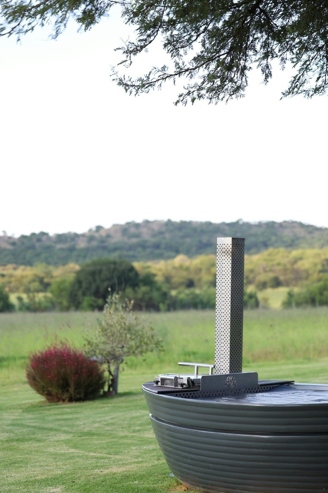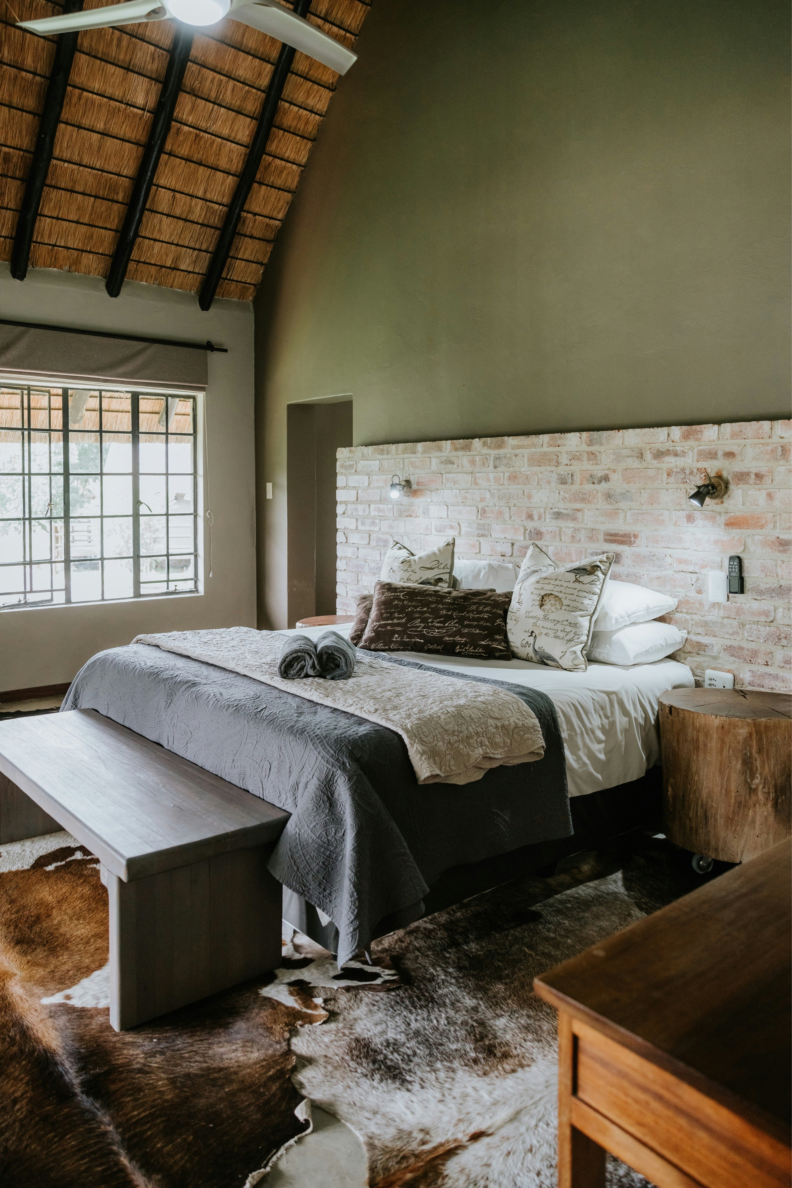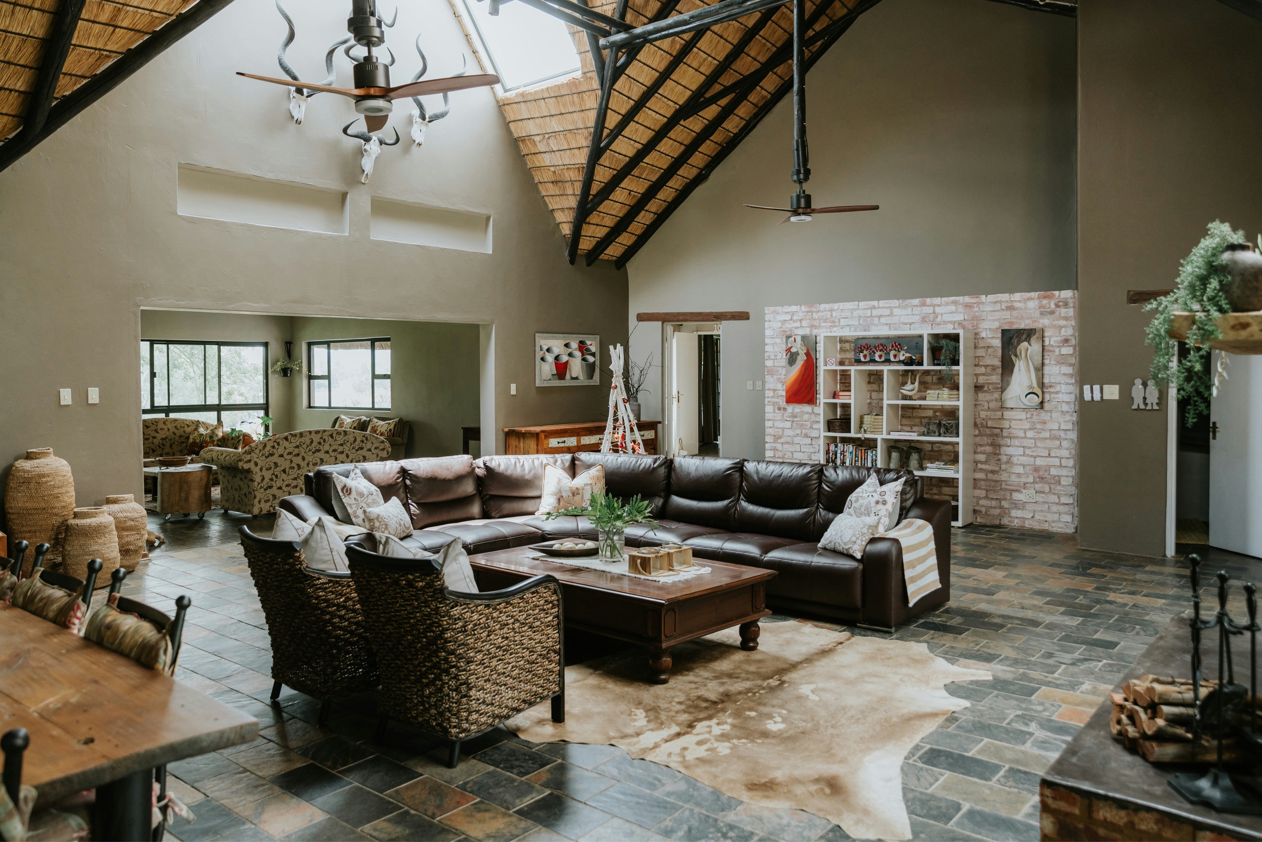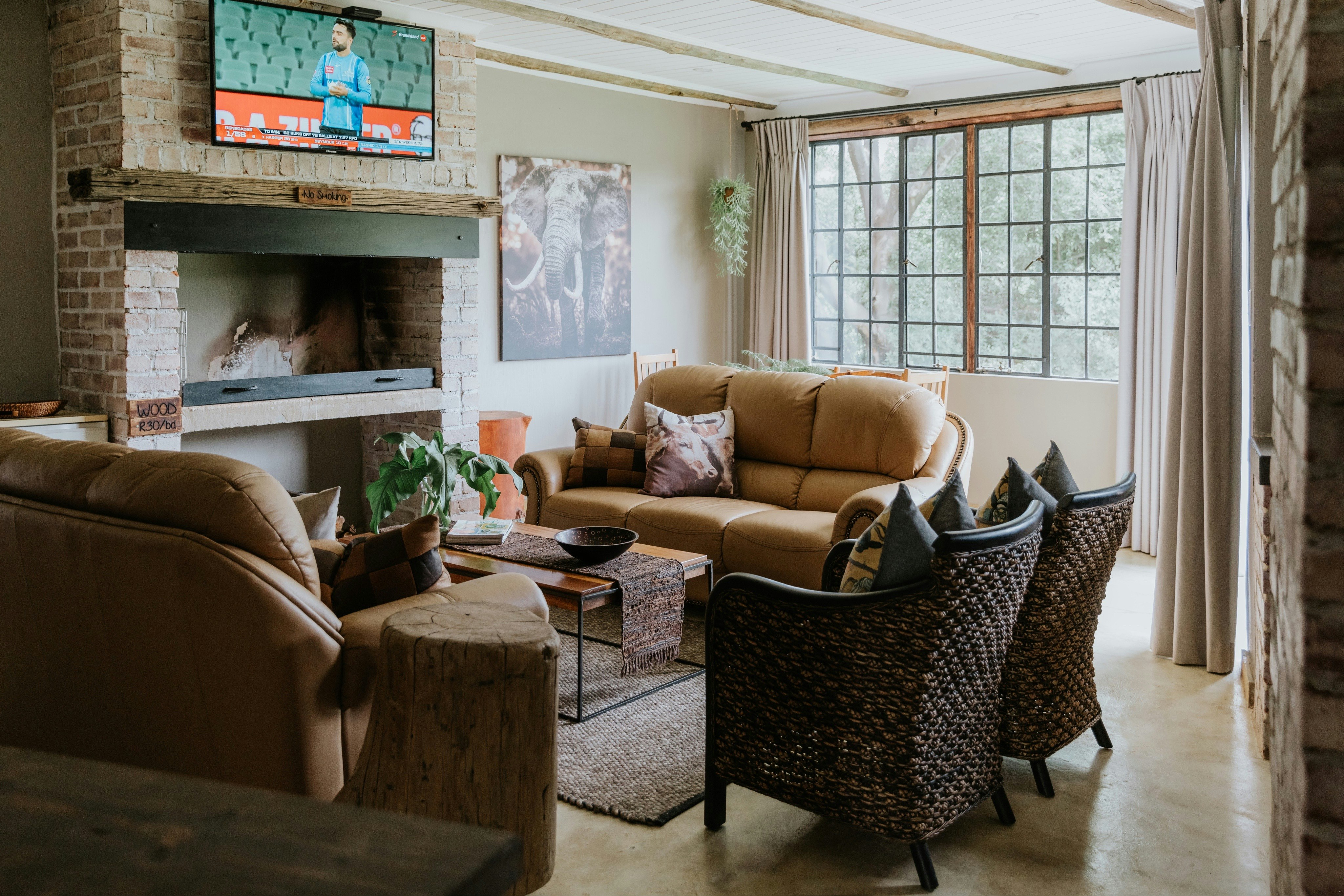 The lodge offers 3 additional communal braai areas as well as a Lapa with a fully equipped kitchen near the river banks. The Lapa has a dining table with ample seating, a lounge area that includes a TV with DStv, and an indoor braai area. The boma next to the Lapa is a lovely place to unwind around a campfire under the night sky.