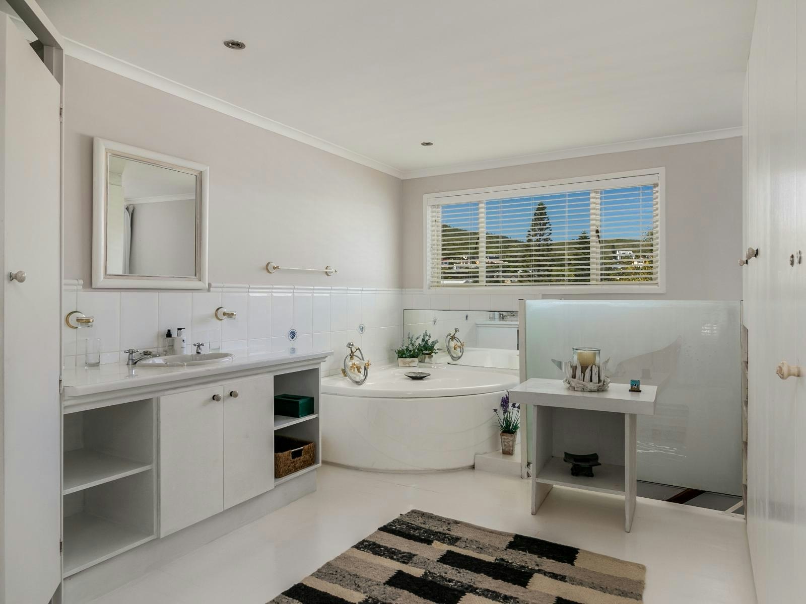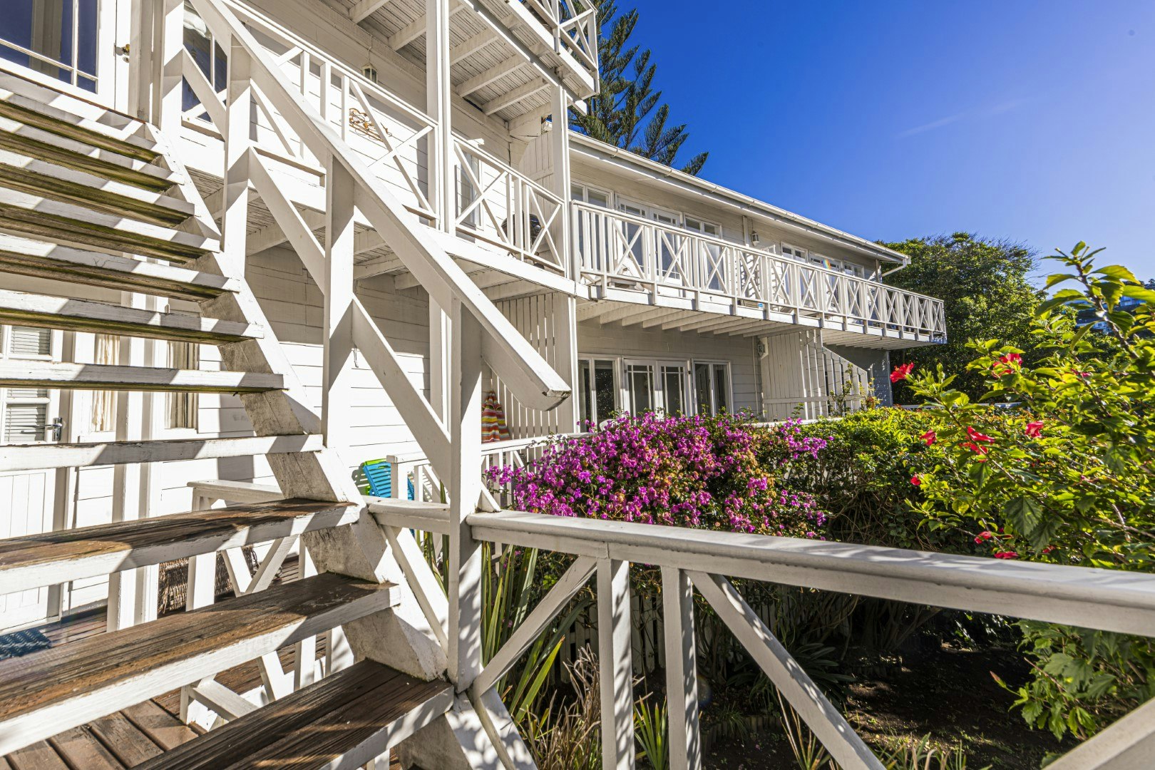 Brenton Beach House: Garden and pool view lower deck - deluxe