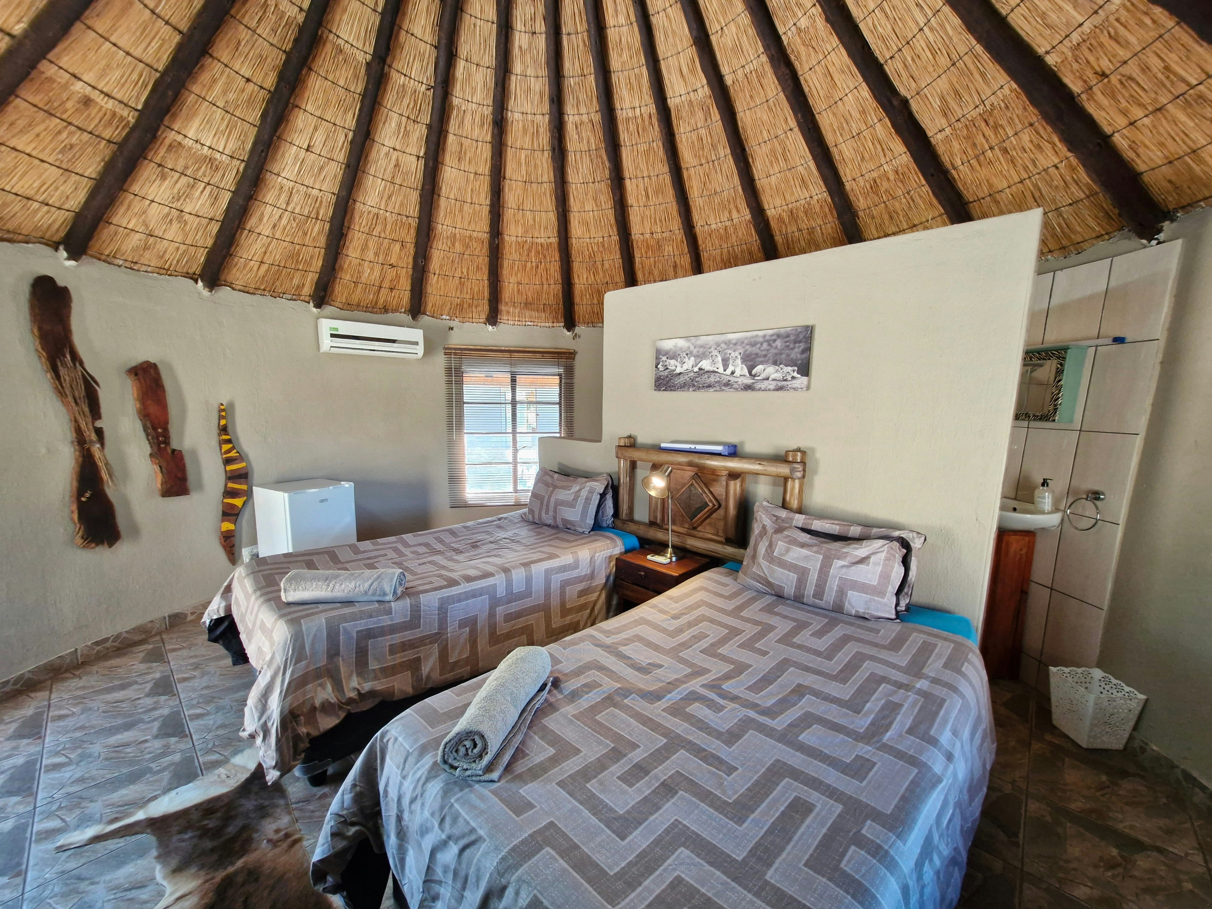 Wildebees and Tau are both furnished with 2 single beds and feature an en-suite bathroom fitted with a shower, toilet, and washbasin. Sonsak is furnished with 3 single beds, while Buffel is furnished with 3 single beds and a double bed. Both units feature an en-suite bathroom fitted with a shower, toilet, and washbasin.