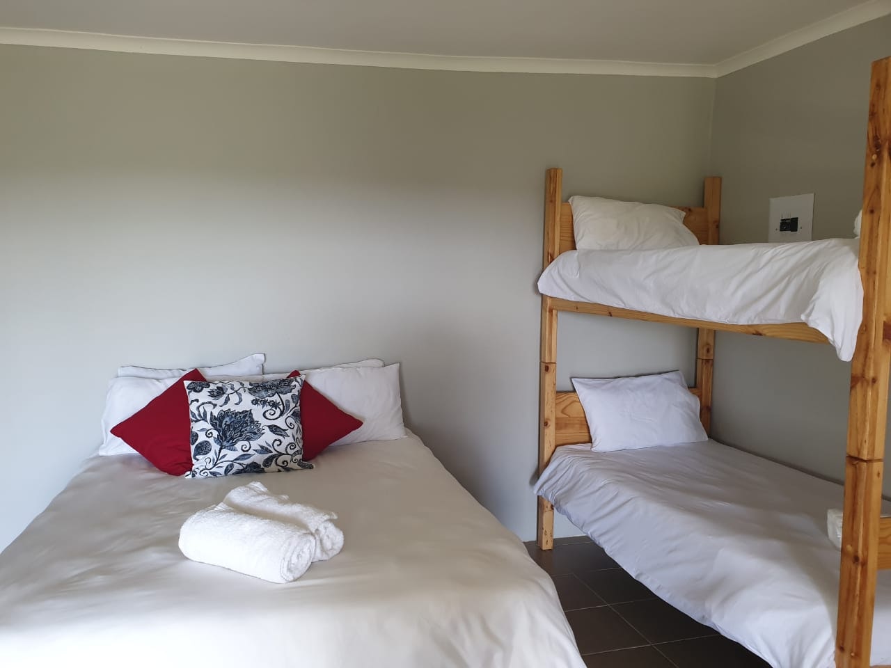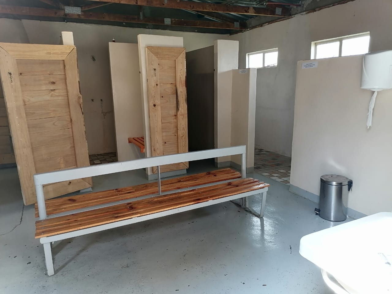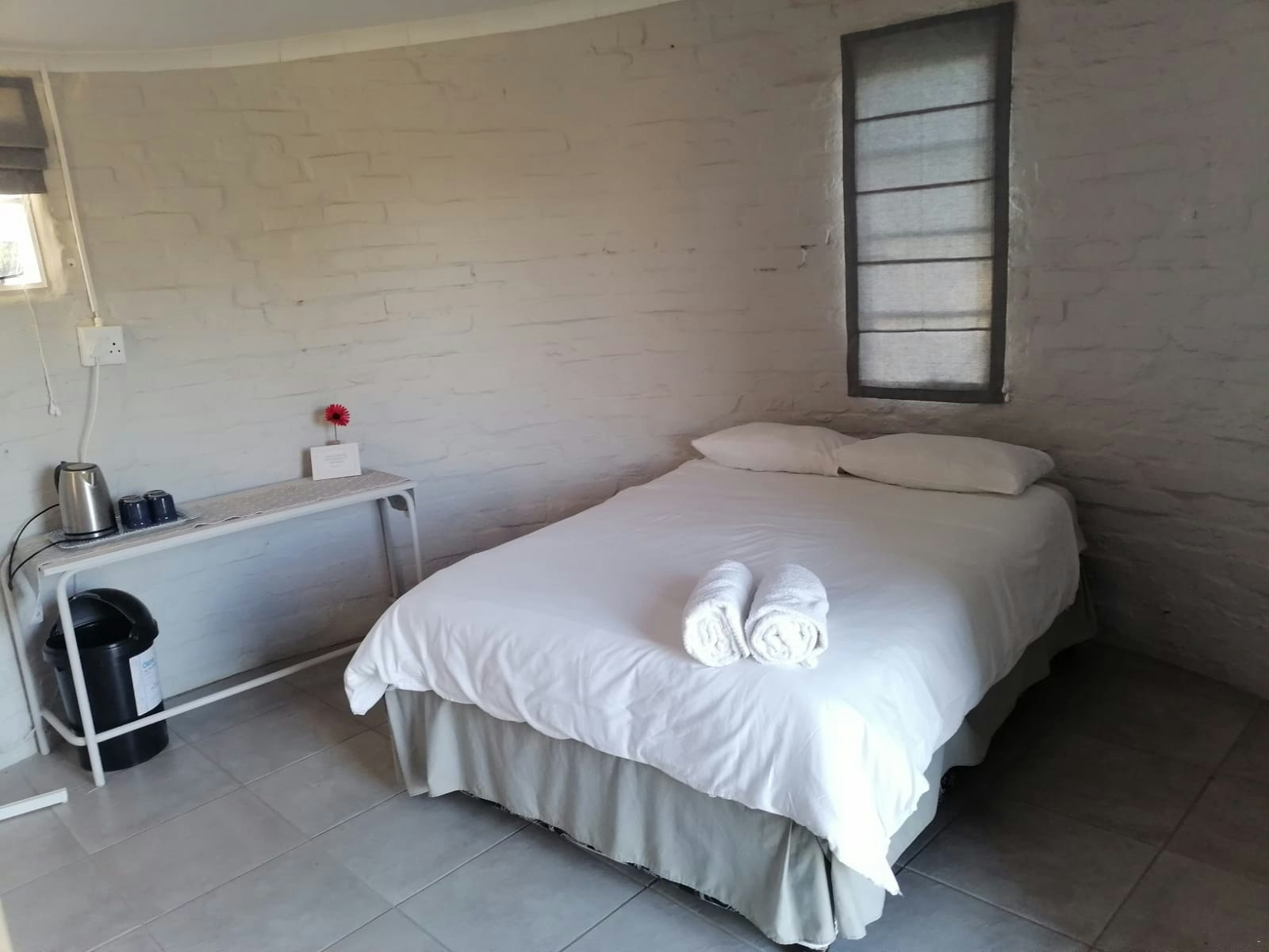 Accommodation is provided in self-catering rooms, standard rooms, free-standing rondavels, and camping. The self-catering rooms are well-equipped and each contain a microwave, a fridge, kettle and crockery. The standard rooms are very basic, and each contain a double bed or single beds, an en-suite bathroom with shower and a bar fridge. The free-standing rondavels contain bunk beds, and make use of communal ablution and kitchen facilities.