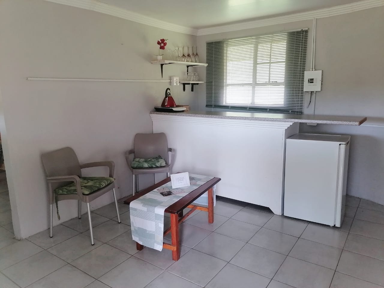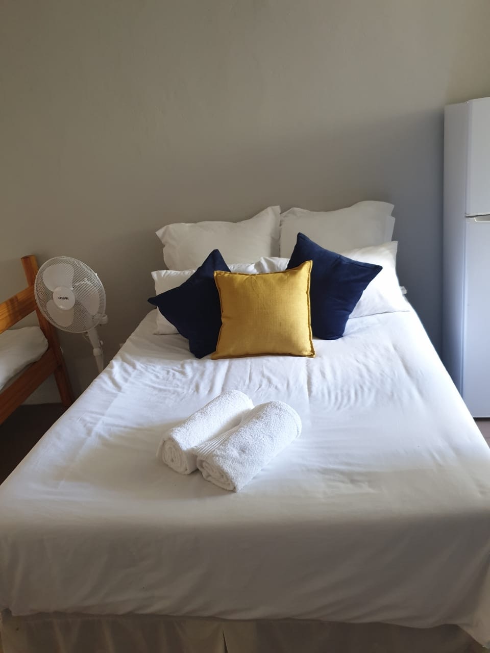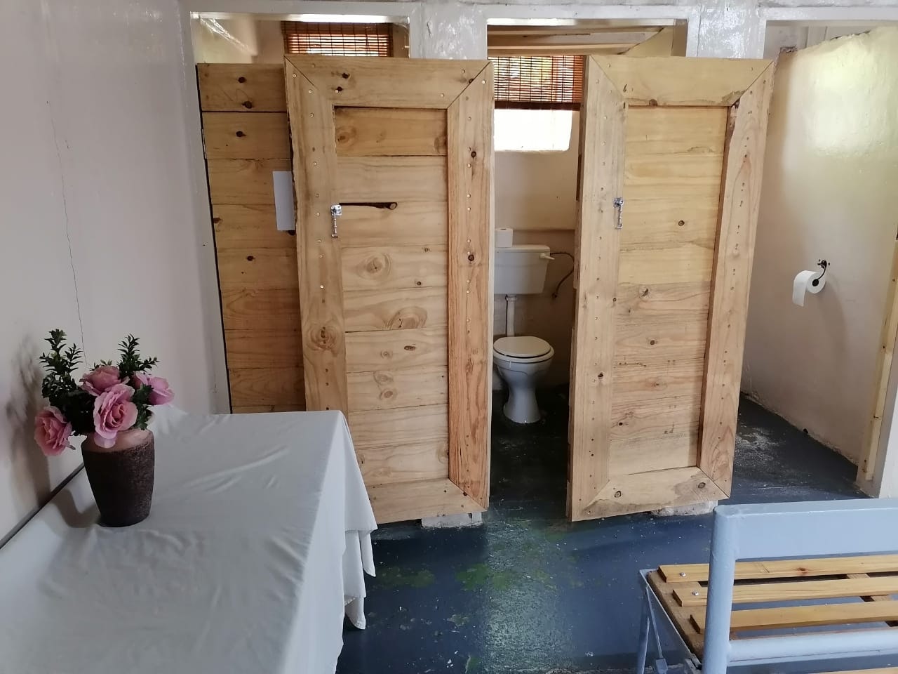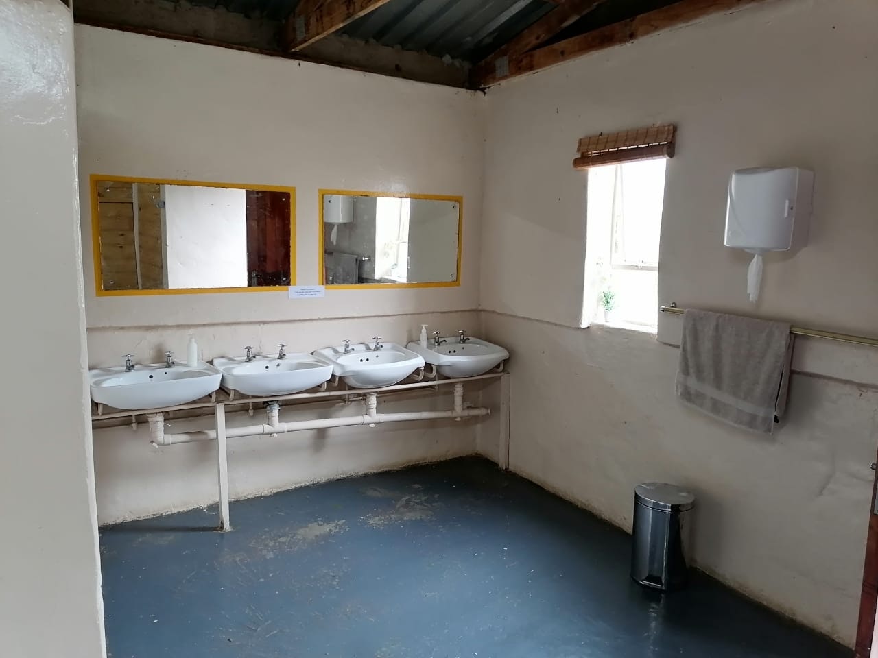 Accommodation is provided in self-catering rooms, standard rooms, free-standing rondavels, and camping. The self-catering rooms are well-equipped and each contain a microwave, a fridge, kettle and crockery. The standard rooms are very basic, and each contain a double bed or single beds, an en-suite bathroom with shower and a bar fridge. The free-standing rondavels contain bunk beds, and make use of communal ablution and kitchen facilities.