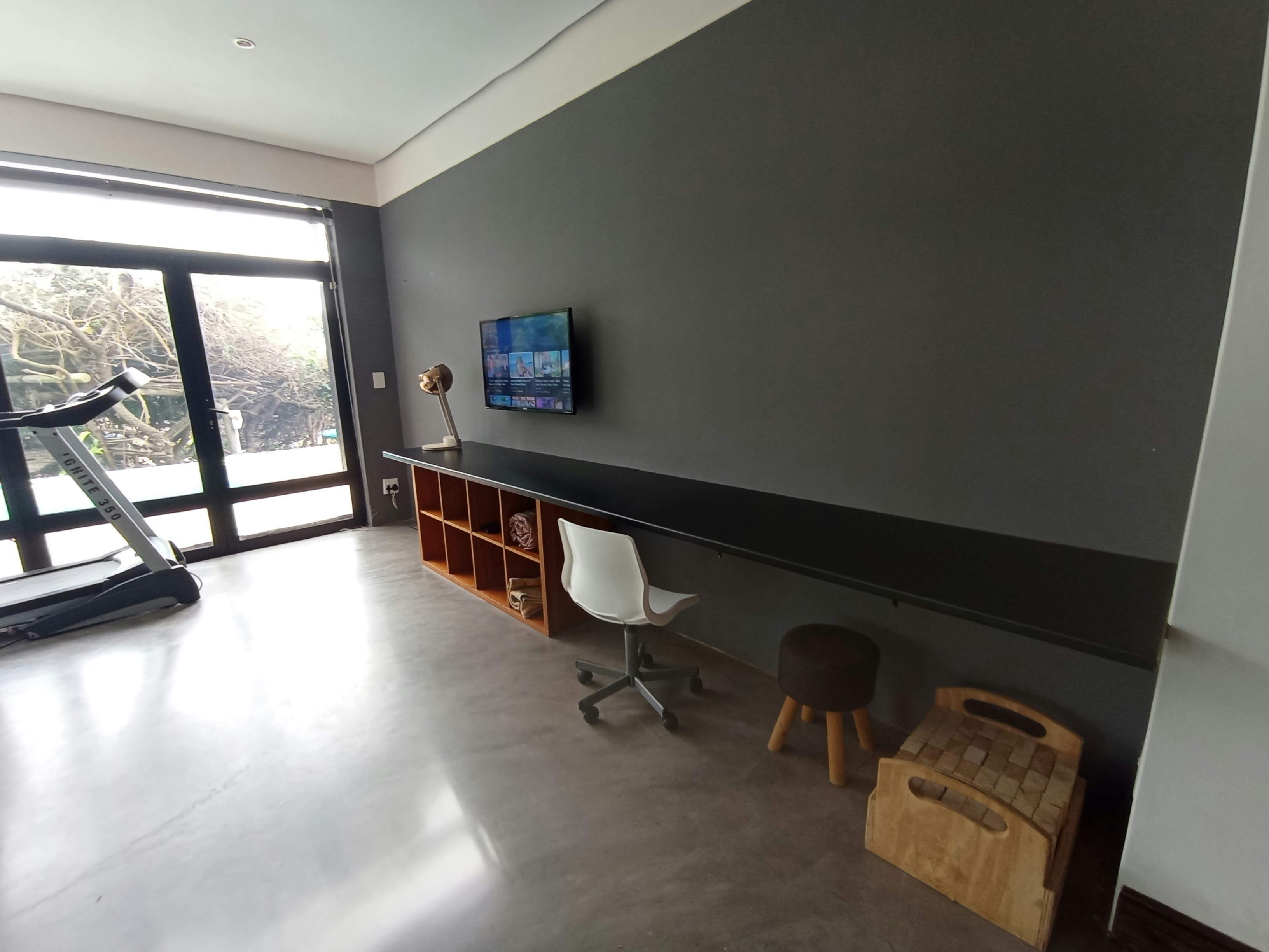 Die dubbelverdiepinghuis beskik oor 4 slaapkamers, 3 badkamers, 'n oopplan-kombuis en -eeraea en 'n binnebraai. Die eerste slaapkamer is onder en het 'n dubbelbed en 'n en suite-badkamer met 'n stort.