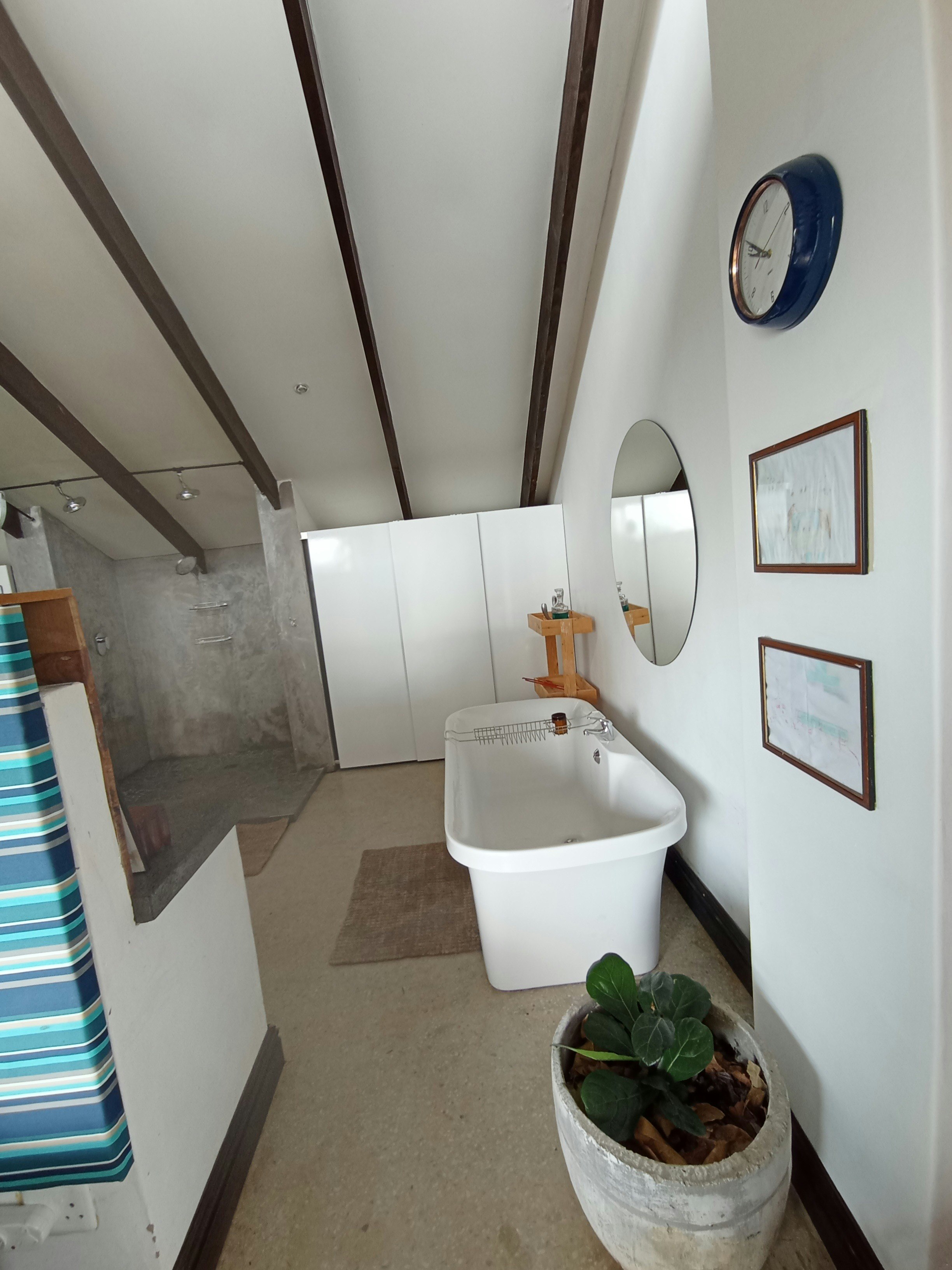 Die ander 3 slaapkamers is bo. Die tweede slaapkamer het 'n koninggrootte-bed en 'n en suite-badkamer met 'n stort en 'n bad, die derde kamer het 'n dubbelbed en die vierde kamer het 'n stapelbed vir kinders. Dié 2 kamers deel 'n badkamer met 'n stort. Gaste moet hul eie bad- en swemhanddoeke saambring.