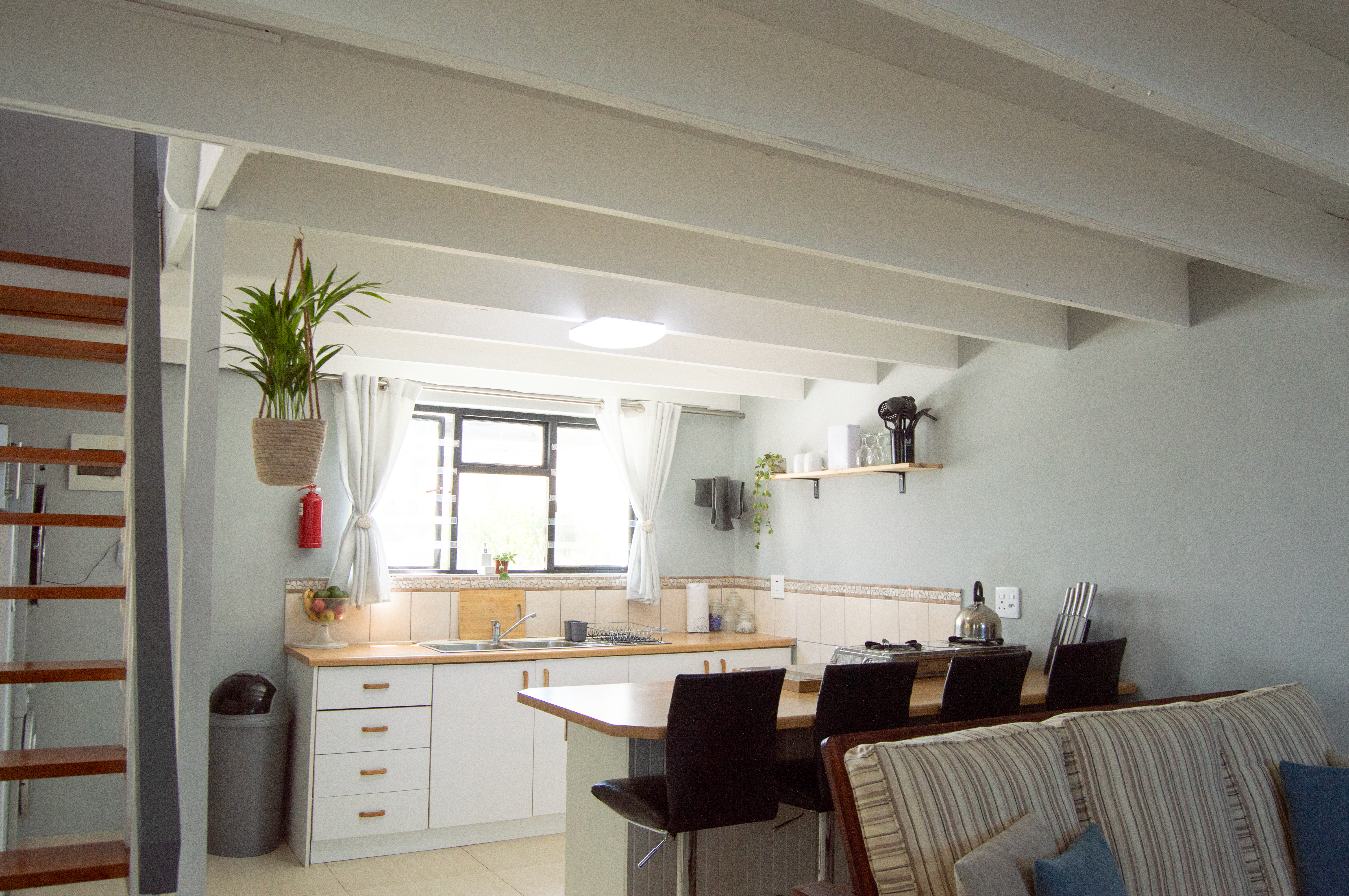 Outside, guests can enjoy a private patio with a built-in braai. Off-street parking is provided, and with solar power and an inverter, guests will not be affected by power outages.