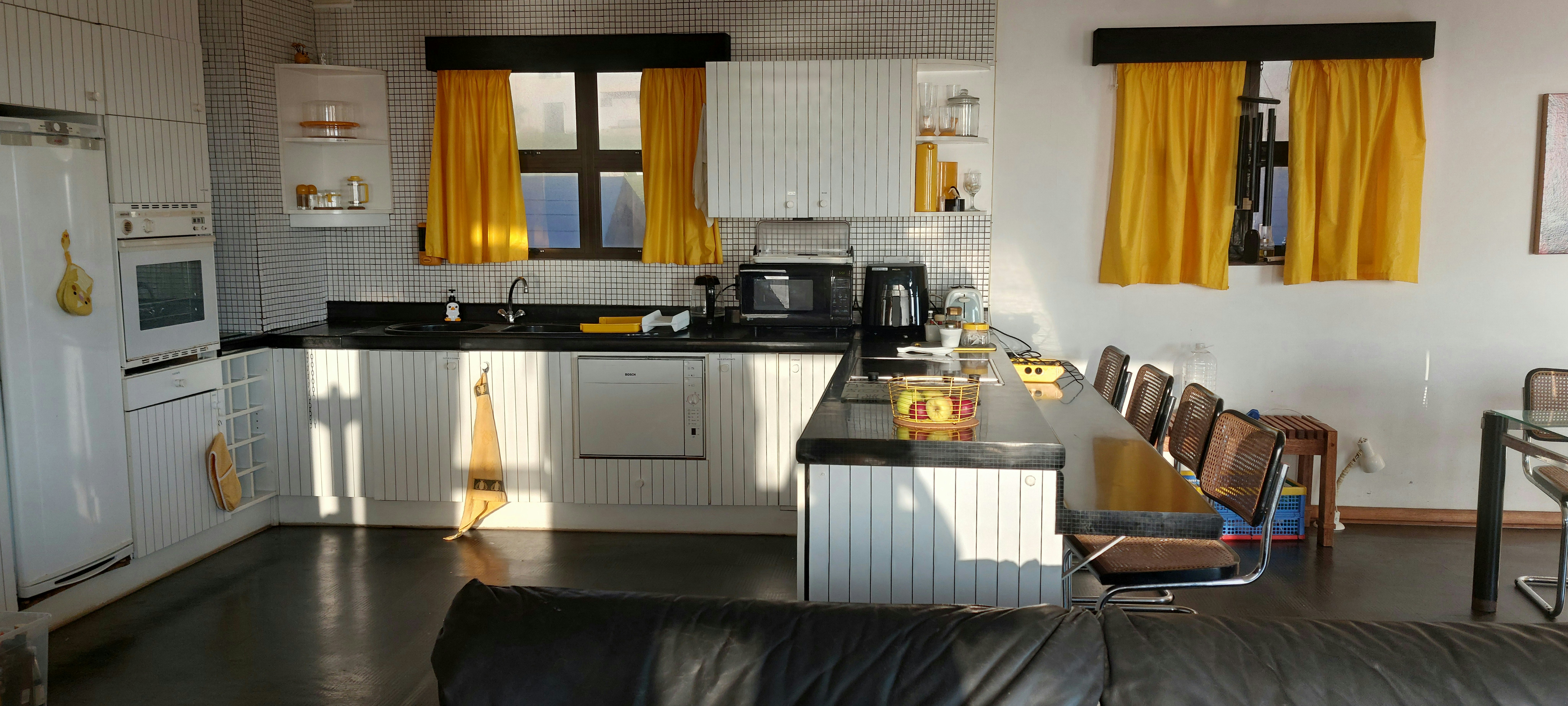 This spacious home accommodates 6 guests and comprises 3 bedrooms. The main bedroom is furnished with a double bed and has an en-suite bathroom with a shower and toilet. The other 2 bedrooms each have 2 single beds, and these guests make use of 2 bathrooms fitted with either a bath or shower and a toilet. All linen and bath towels are provided; however, guests are required to bring their own beach towels.