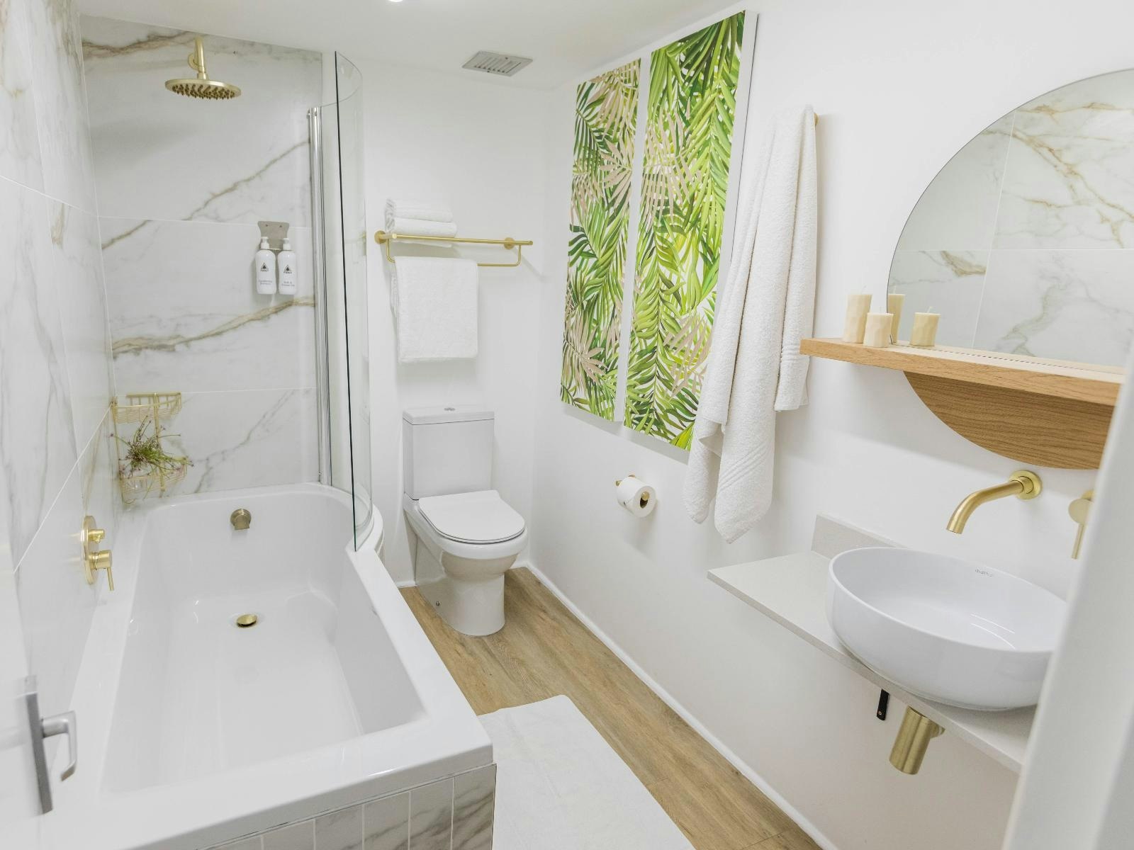 Die woonstelle bied 'n privaat balkon en 'n vermaakdek met 'n gasbraaier. Die drieslaapkamereenhede het ook 'n Jacuzzi.