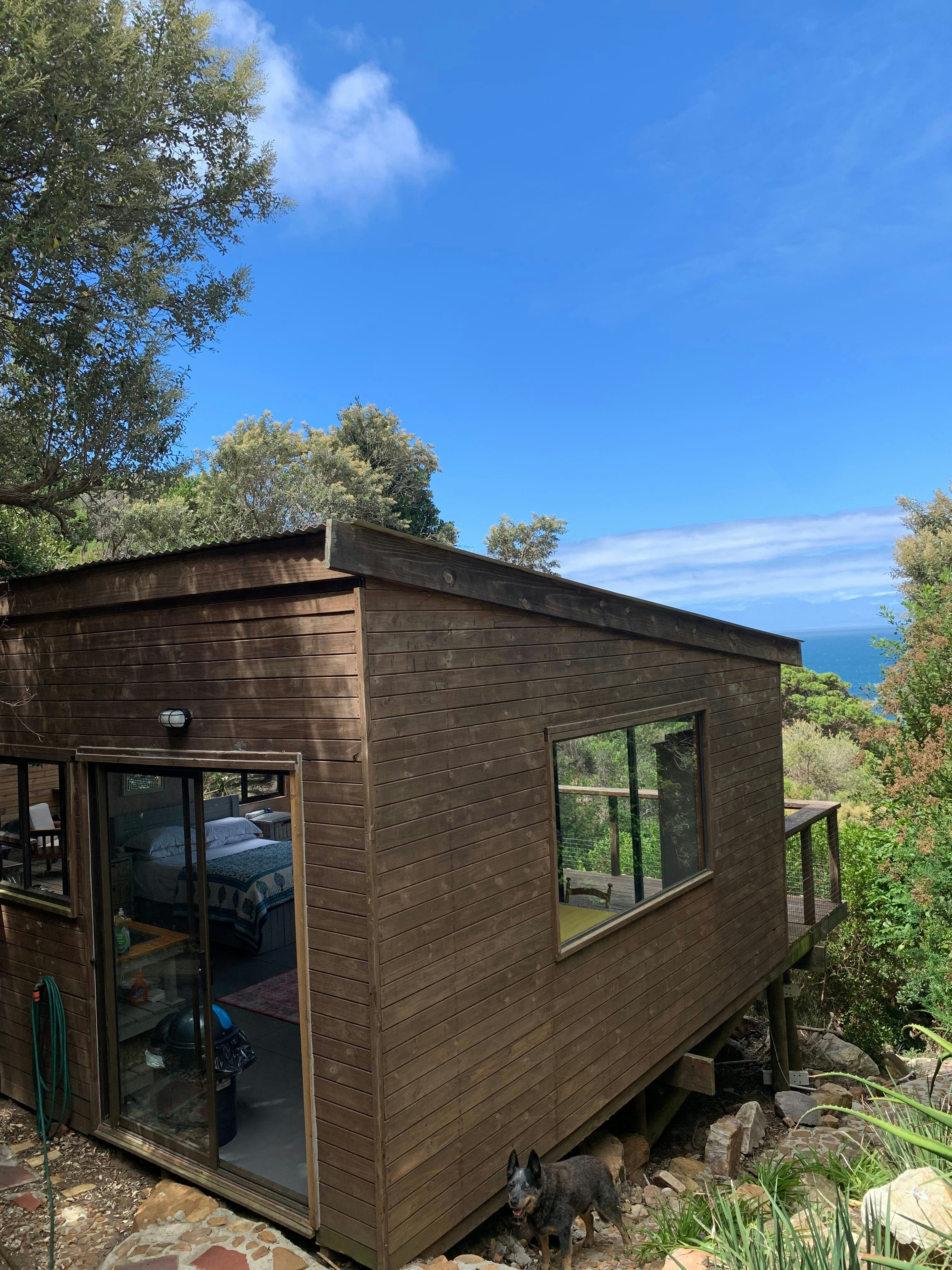 Cape Point Mountain Hideaway is geleë in Castle Rock, Simonstad, in Kaapstad. Versteek in 'n kloof langs 'n bergstroom en omring deur 'n woud, kyk hierdie eenvoudige, omgewingsvriendelike hout-en-glas-kajuit uit oor die see en is die ideale plek vir 'n paartjie of enkelreisiger wat op soek is na 'n rustige toevlugsoord.