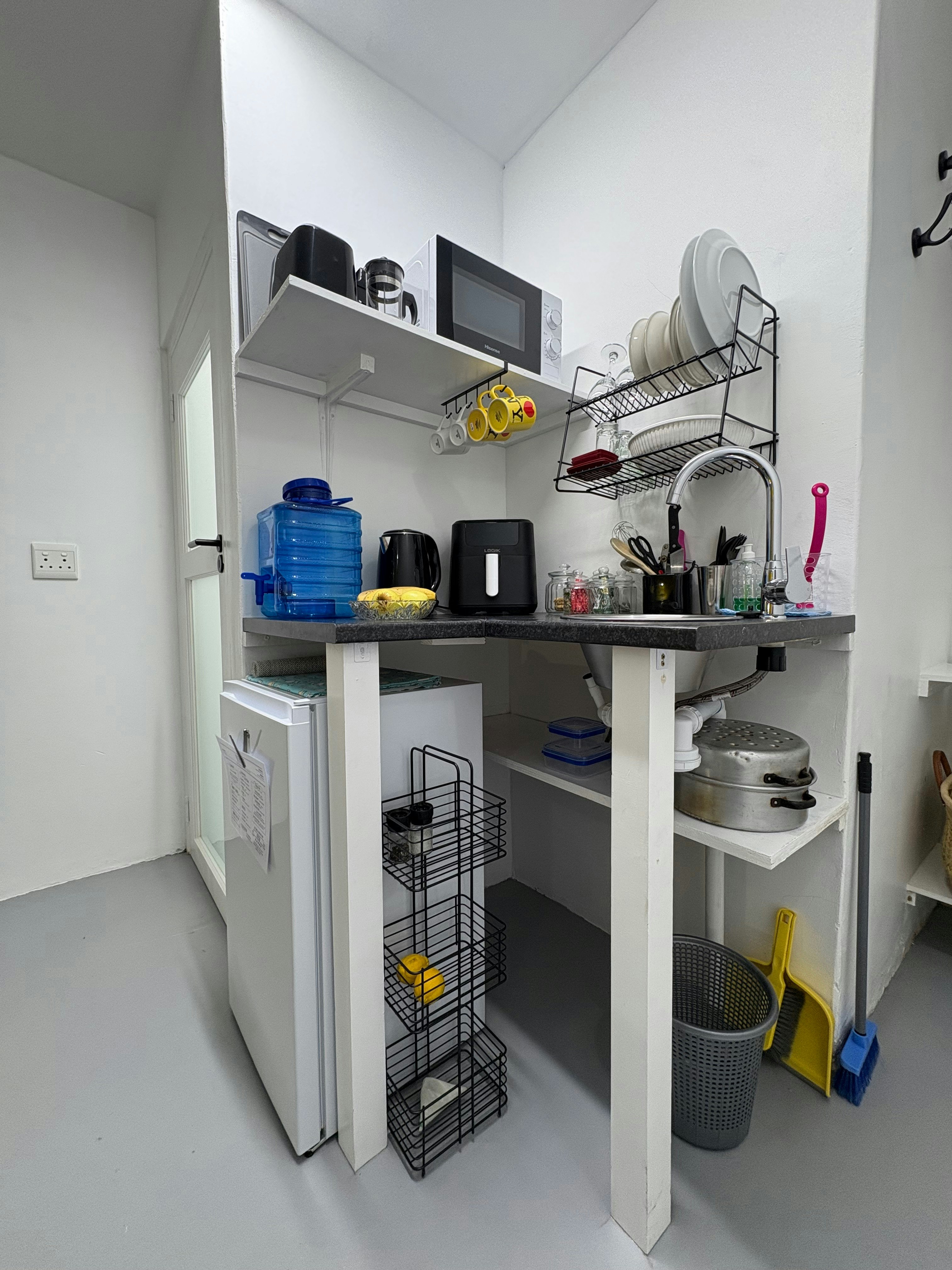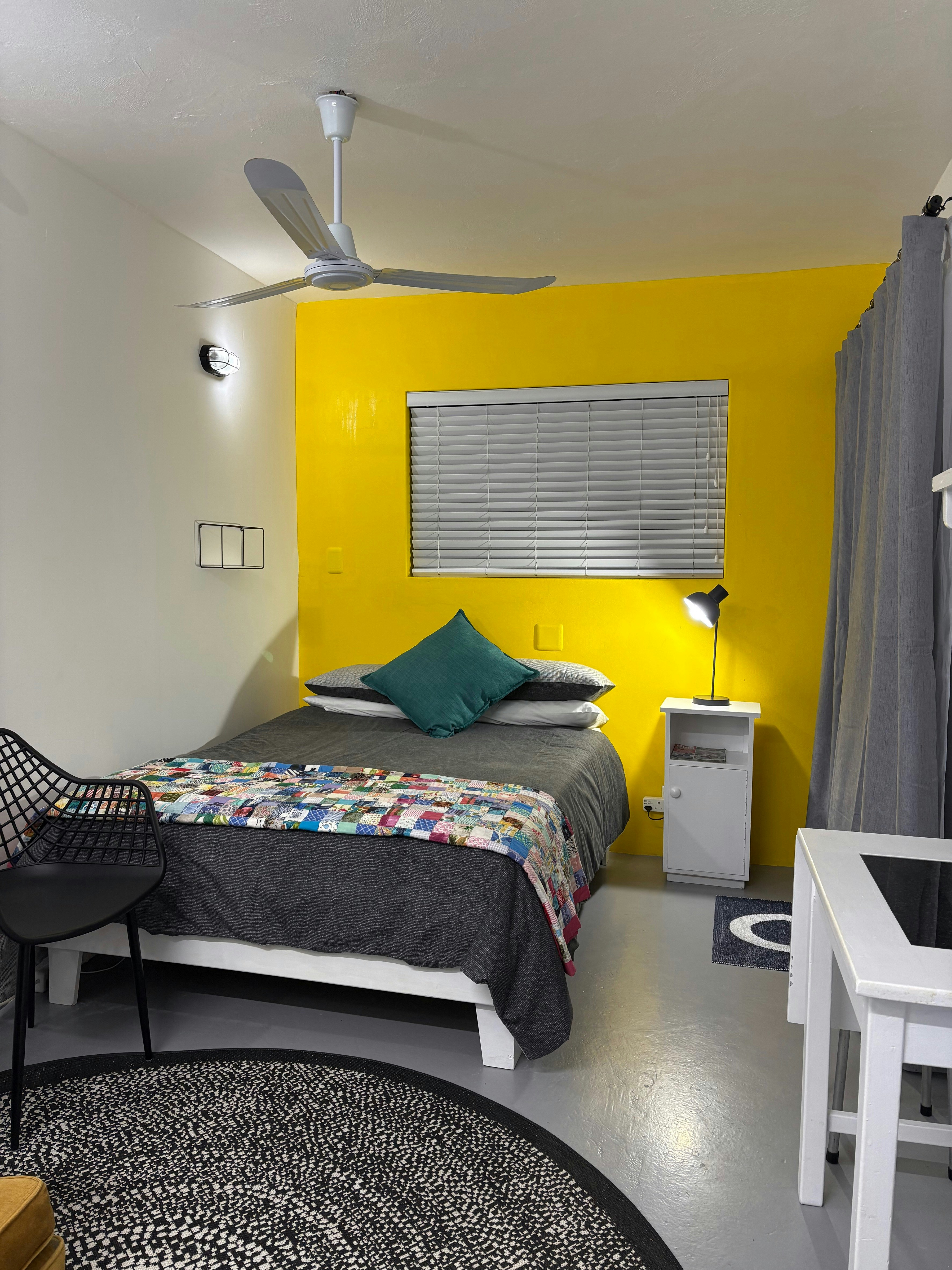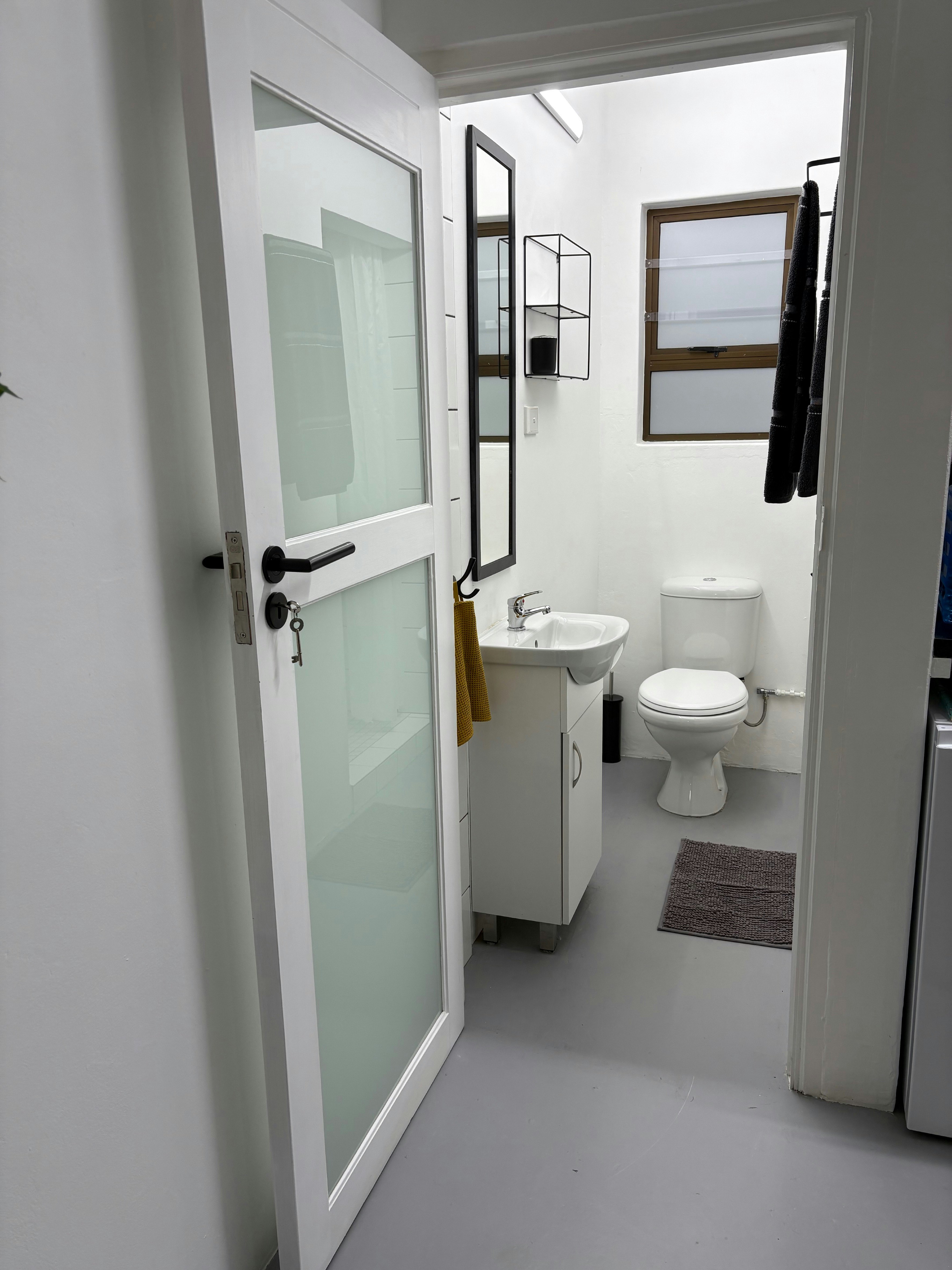 The second apartment is "Die Ateljee" which is a compact space with a queen-sized bed in the sleeping area, comfortable chair to relax in and a bathroom fitted with a toilet, shower and washbasin. The space also includes a kitchenette equipped with a bar fridge, microwave, air fryer and kettle. The unit opens to the garden where guests can relax. Other in-room facilities include a wall heater and electric blanket to ensure that you are warm in the winter months and a ceiling fan keeps you cool and ventilated in summer.