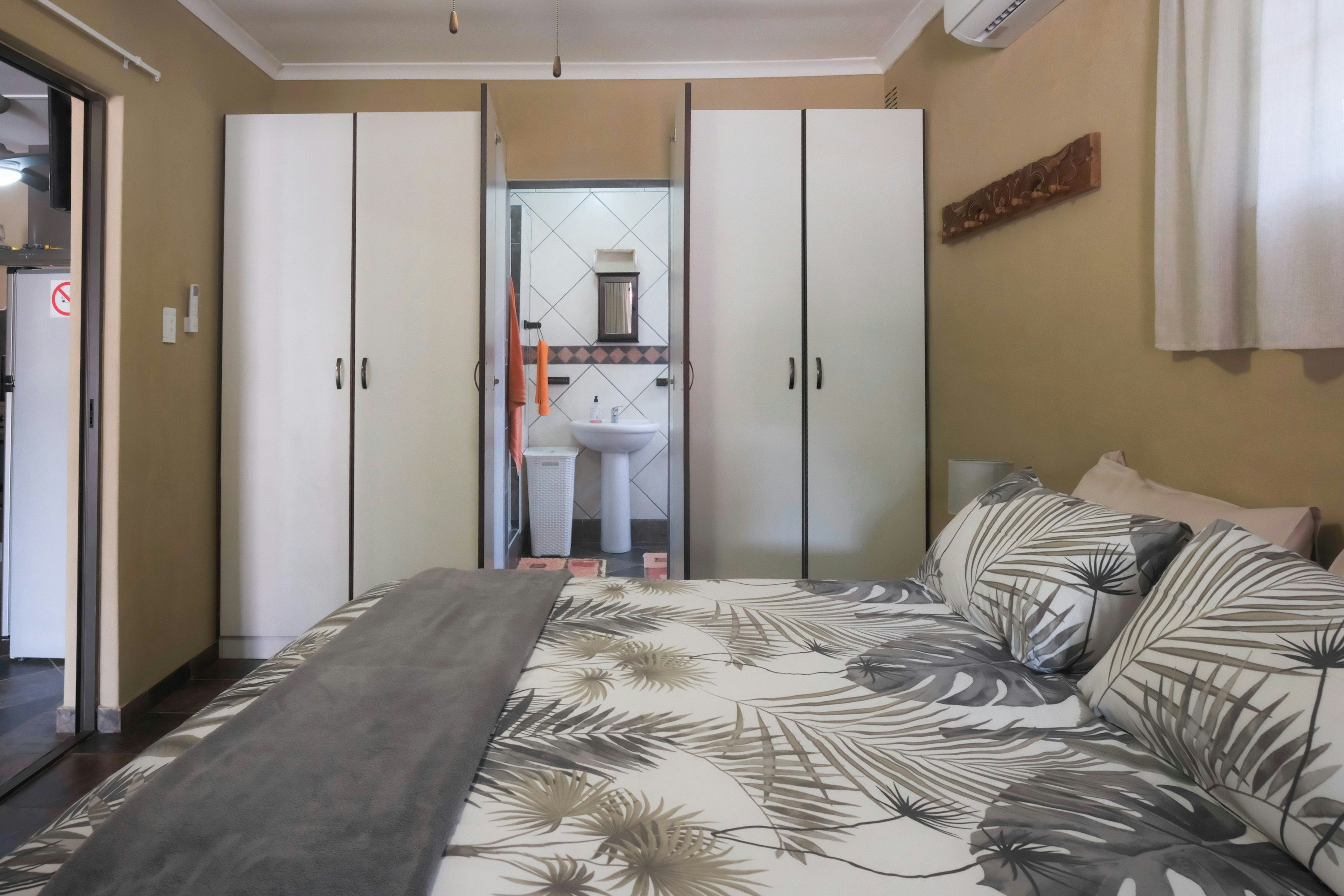 Buite kan gaste 'n gedeelde oordekte braai-area en 'n swembad geniet, perfek vir 'n ontspannende braai-ervaring. Parkering op die perseel is beskikbaar vir ekstra gerief. Vir diegene wat die omgewing wil verken, is 'n verskeidenheid restaurante en winkelsentrums binne maklike bereik, wat baie opsies vir eet en kleinhandel bied.