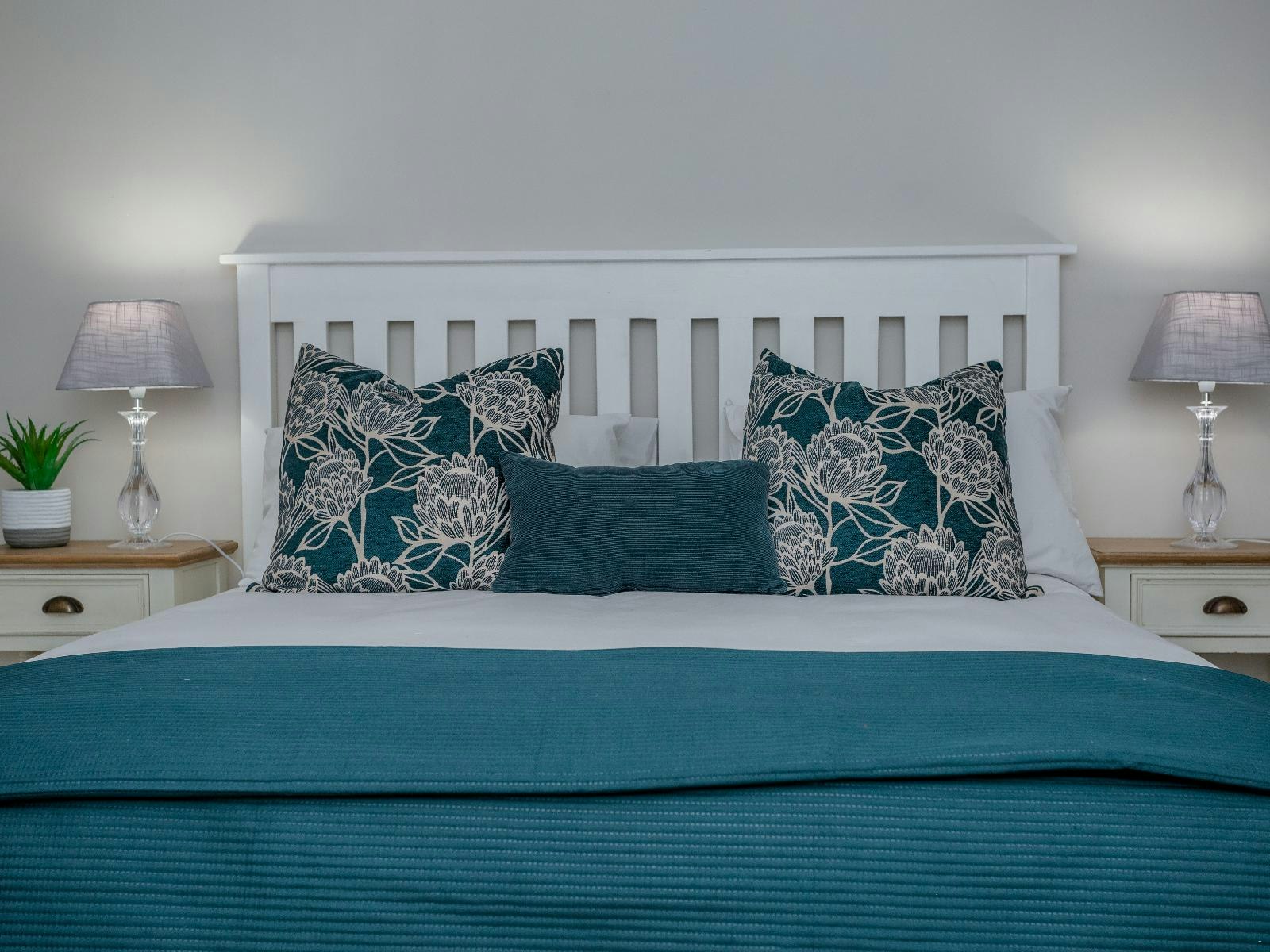 The house can accommodate up to 8 guests and contains 4 bedrooms with clean lines and loads of storage. The main bedroom is the only bedroom situated upstairs and contains a queen-size bed and an en-suite bathroom with a bath and a shower. The second with queen sized bed and en-suite bathroom and third and fourth bedrooms located downstairs and each contain a double bed. These 2 rooms share a bathroom with a bath and a shower. All the bedrooms overlook the ocean except for the garden room.