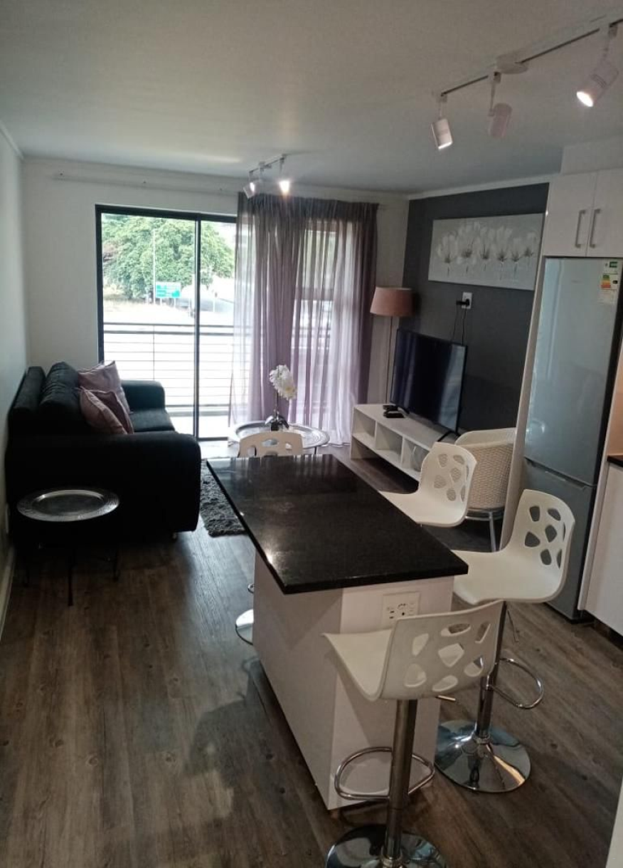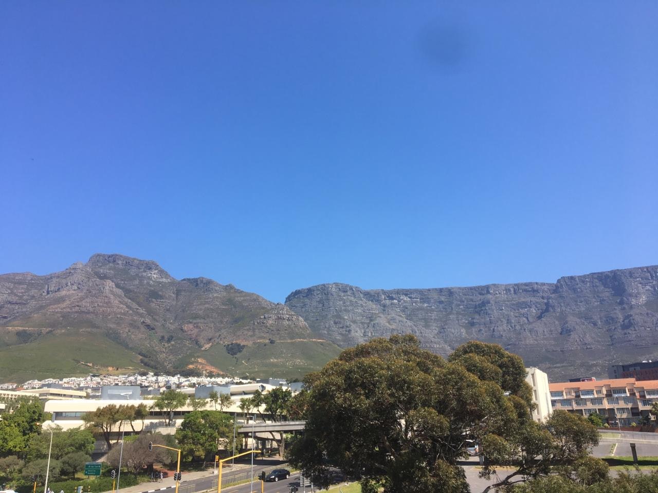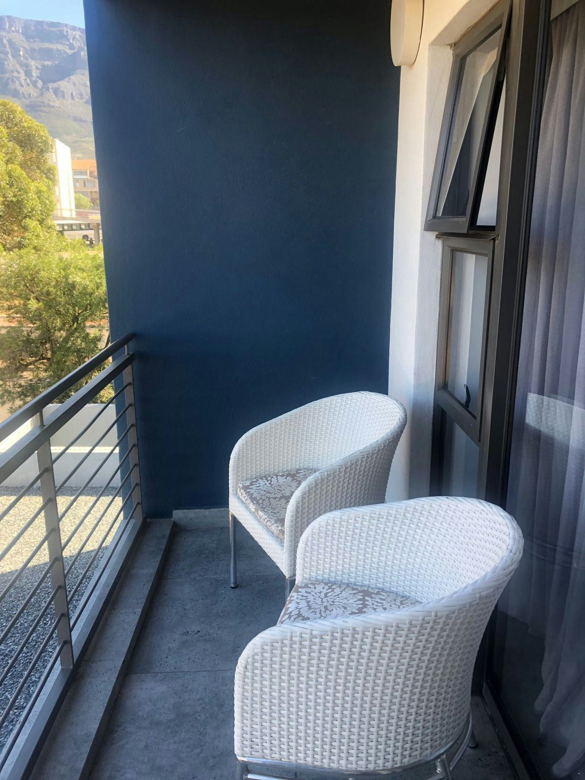 The sliding doors of the living area open up onto the lovely balcony that boasts views of Table Mountain. Guests have access to the communal swimming pool.