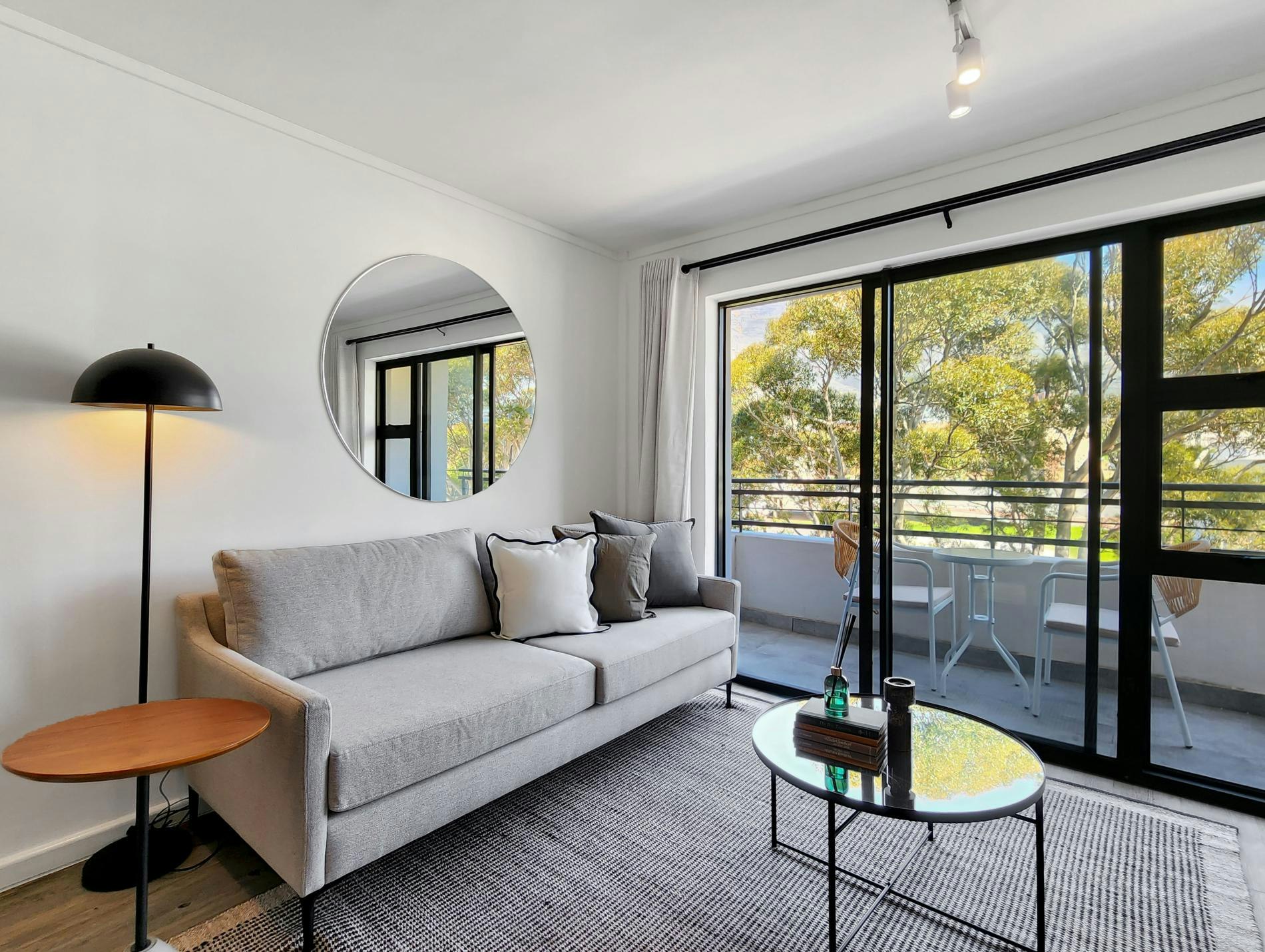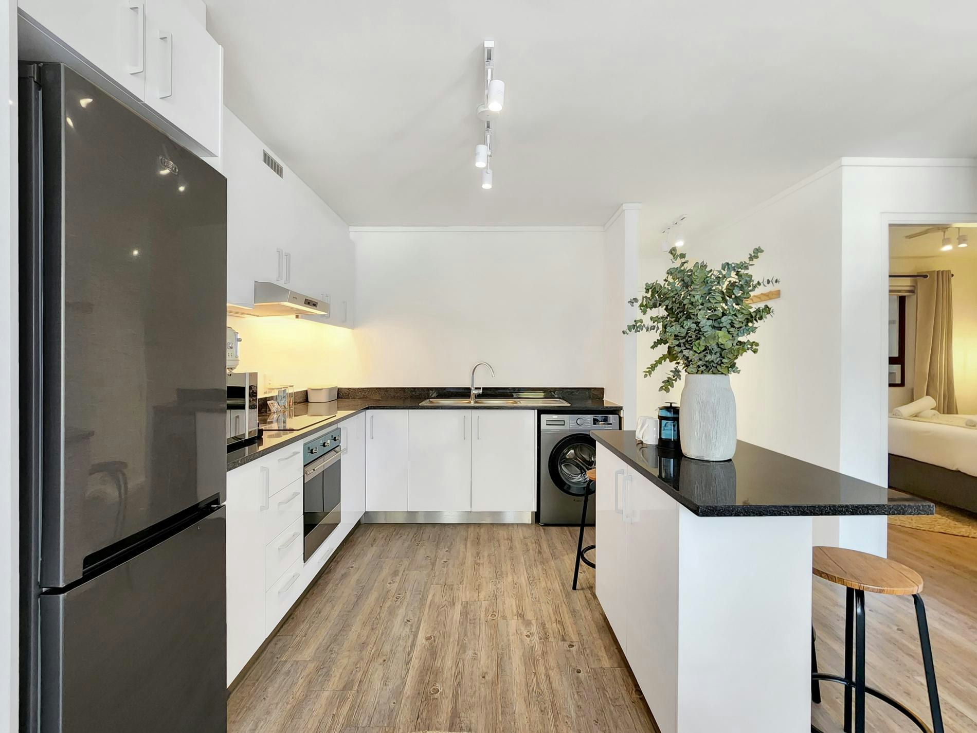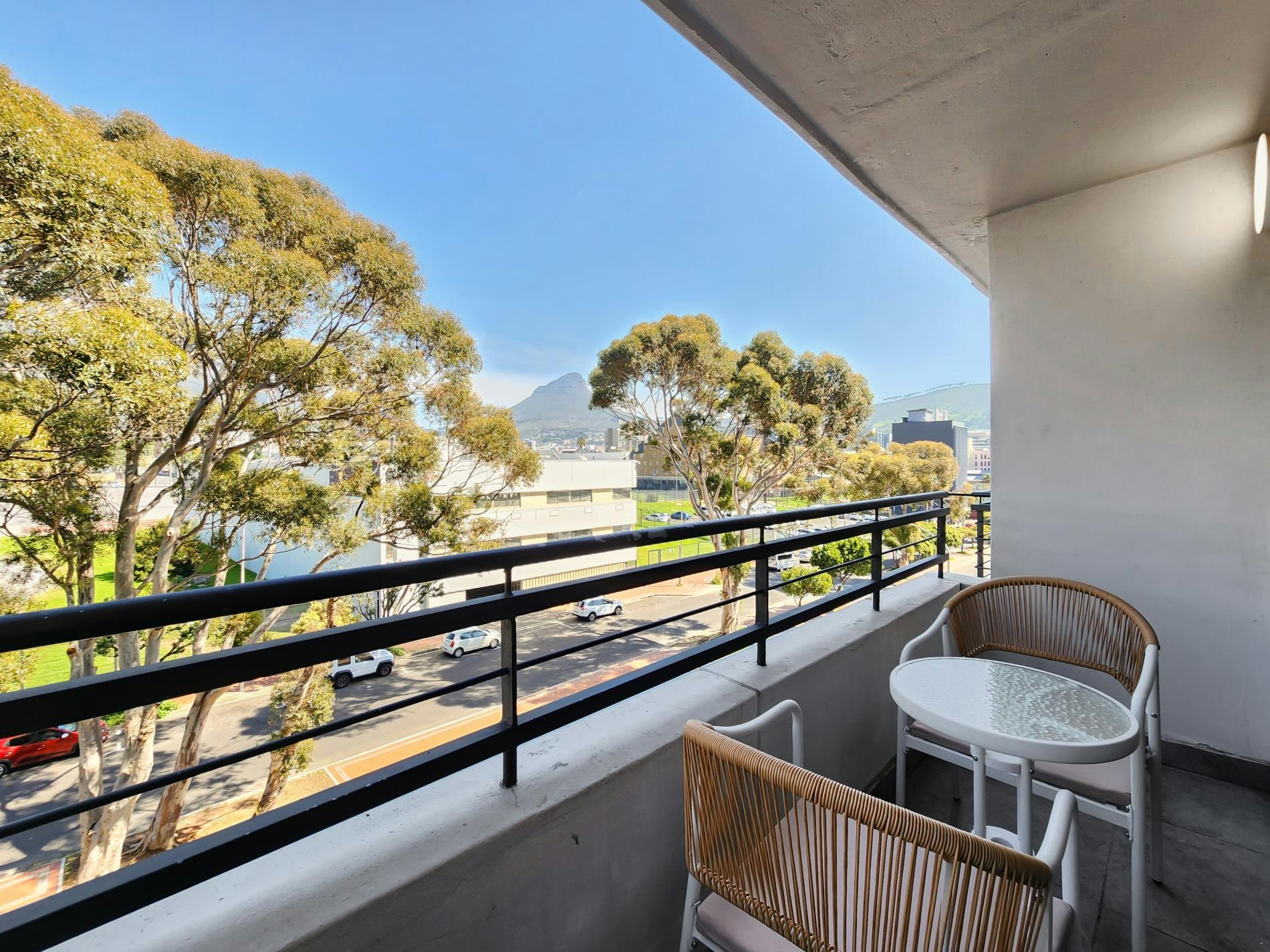 The living area opens onto a balcony with outdoor seating and spectacular views of Table Mountain. With secure parking for 2 cars, access to a communal swimming pool, and a prime location close to Cape Town’s top attractions, this apartment promises both relaxation and convenience.
