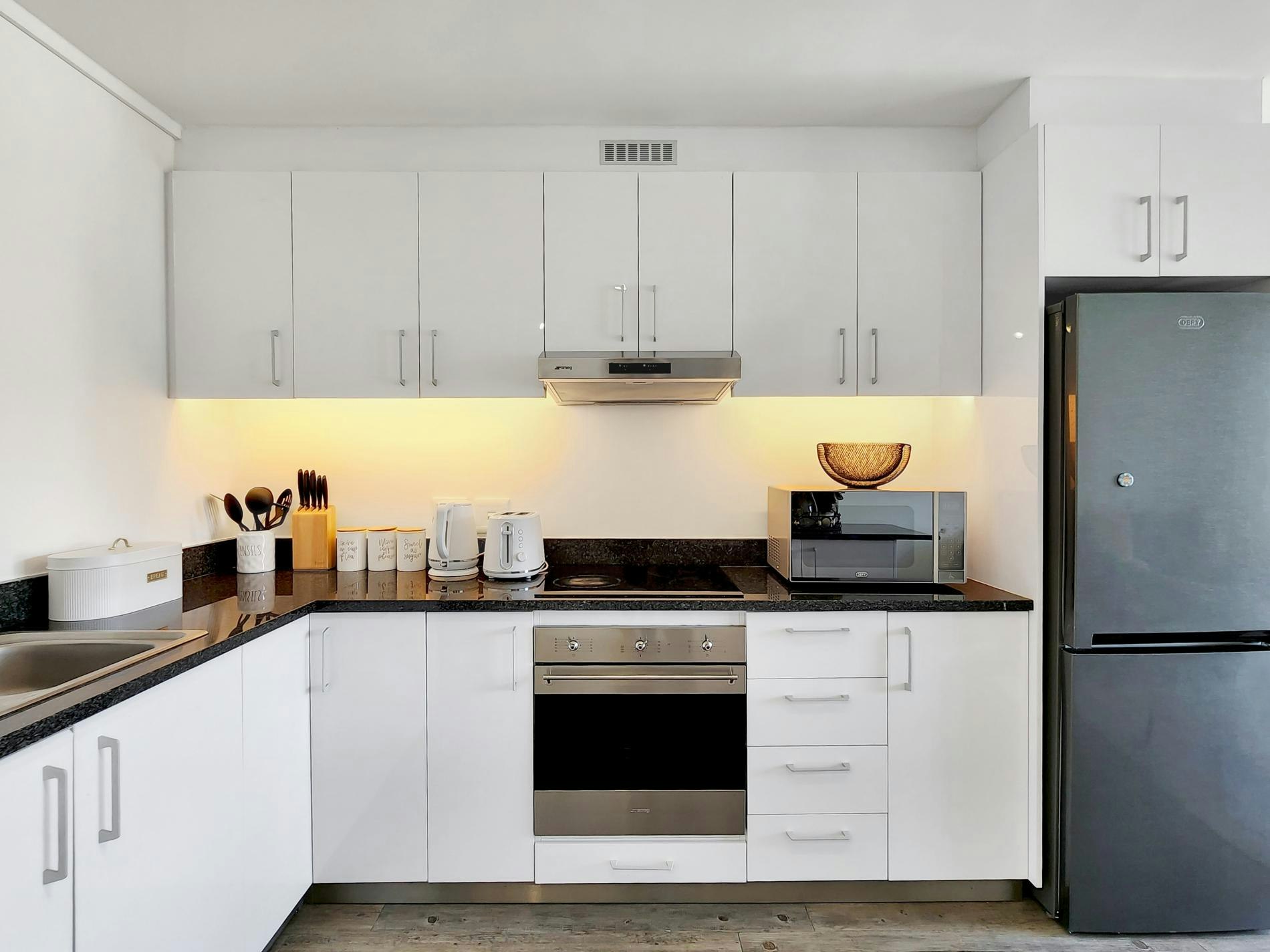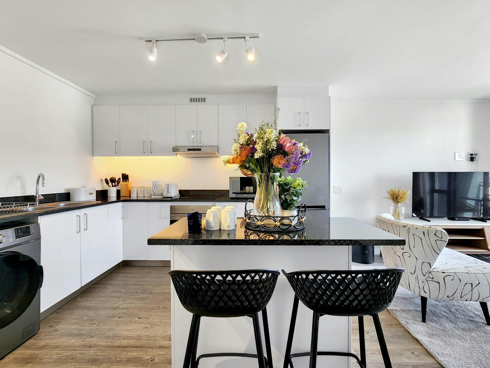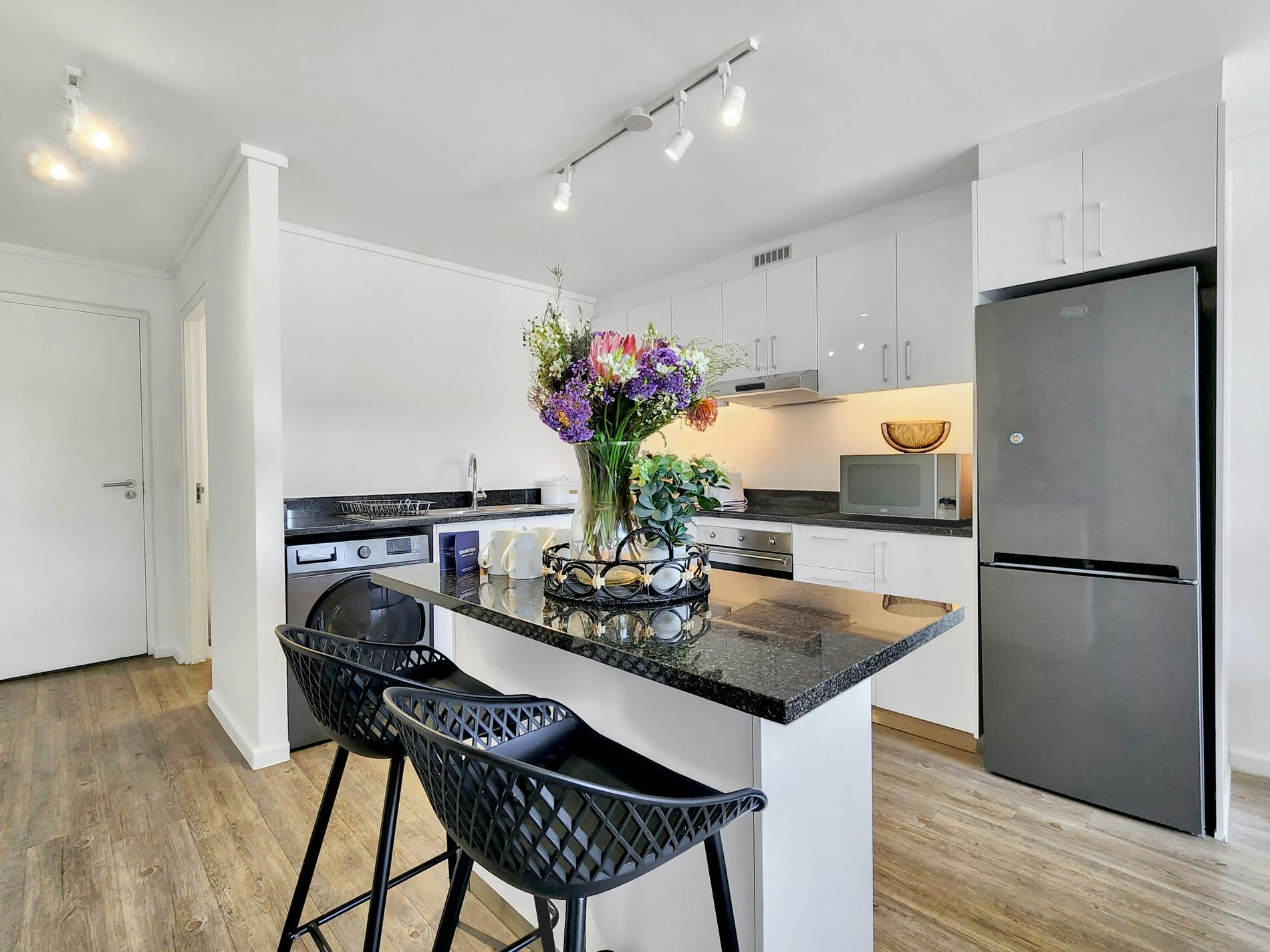 Deur die skuifdeure kan gaste skemerkelkies op die gemeubileerde balkon geniet terwyl hulle die uitsigte inneem. Gaste het ook toegang tot die gemeenskaplike swembad en veilige parkering dwarsdeur hul verblyf. Vir diegene wat die omgewing wil verken, is die V&A Waterfront 2.2 km weg, terwyl die Seepunt Promenade 4.5 km weg is.