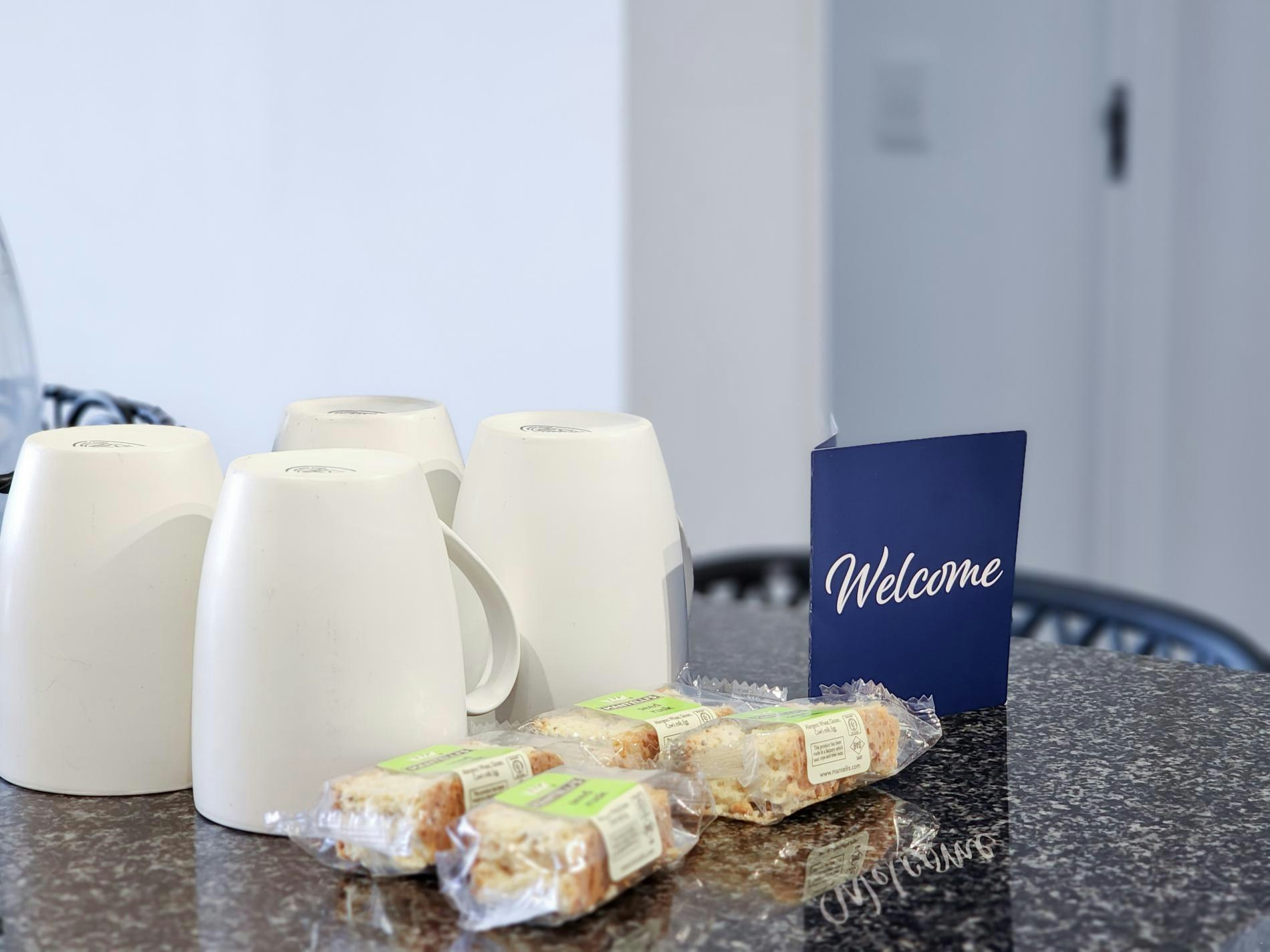 Die oopplan-leefarea beskik oor 'n kombuis wat volledig toegerus is met 'n stoof, oond, mikrogolfoond, yskas-vrieskas, eetgerei en breekware, sowel as 'n ontbyt-eiland met stoele. 'n Wasmasjien is ook beskikbaar. Vanuit die kombuis lei 'n sitkamer met 'n gemaklike rusbank en 'n TV, en toegang tot gratis WiFi is beskikbaar.