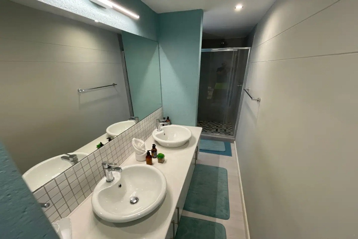 Hierdie woonstel bied slaapplek aan 6 gaste en beskik oor 3 slaapkamers en 2 badkamers. Die hoofslaapkamer het 'n dubbelbed en 'n en suite-badkamer met 'n stort. Die ander 2 slaapkamers het elk 2 enkelbeddens. Die tweede badkamer het 'n stort. WiFi is beskikbaar.