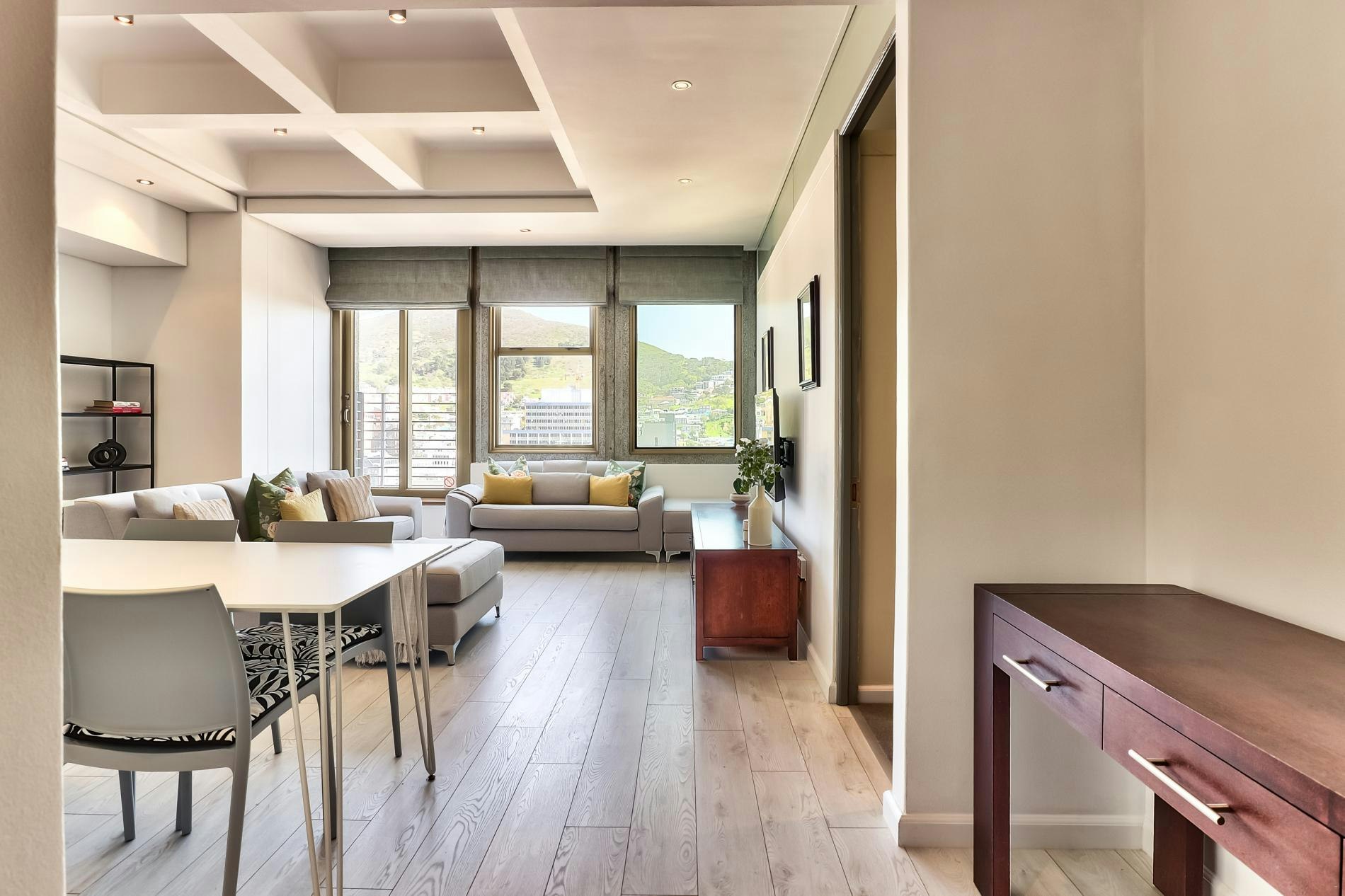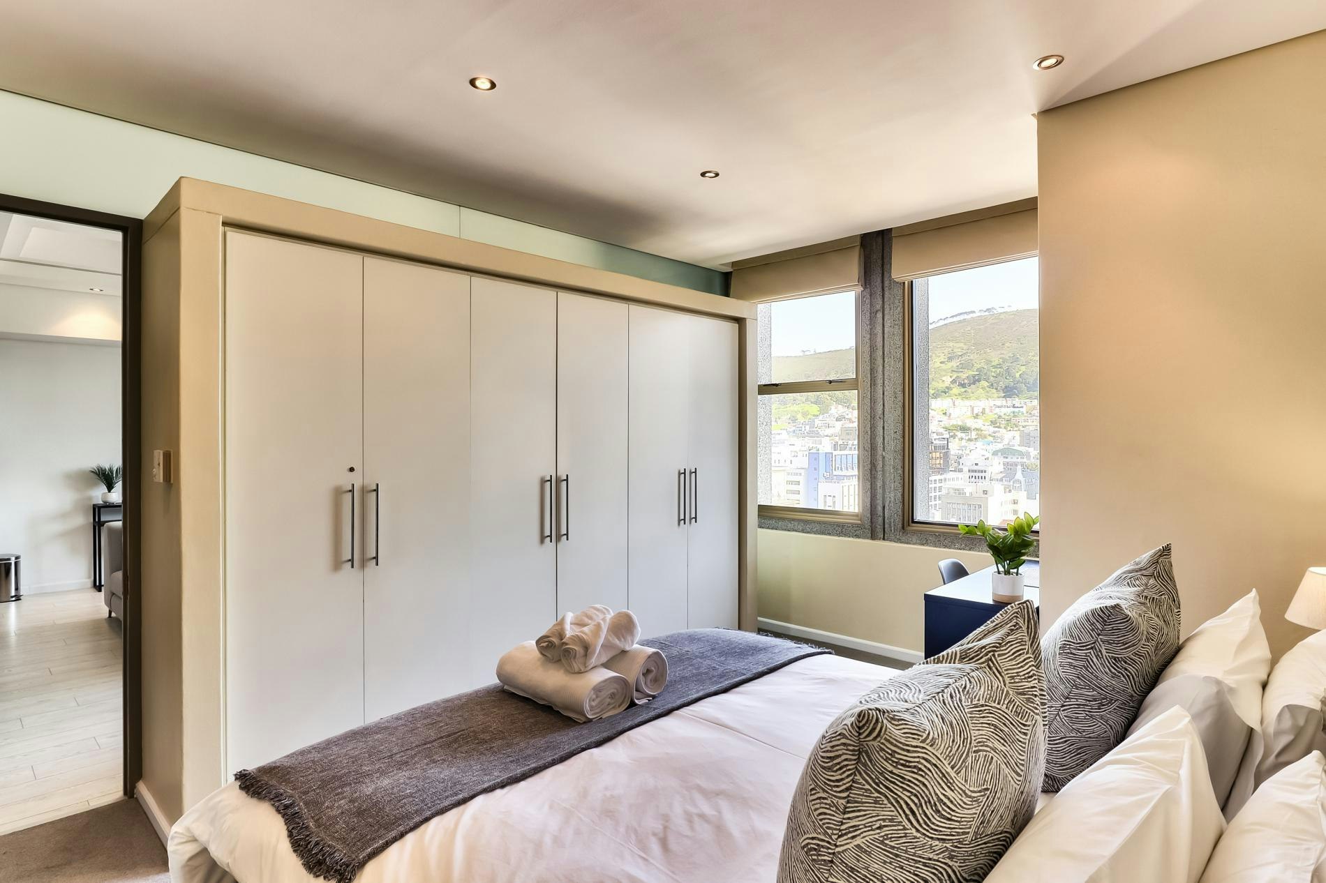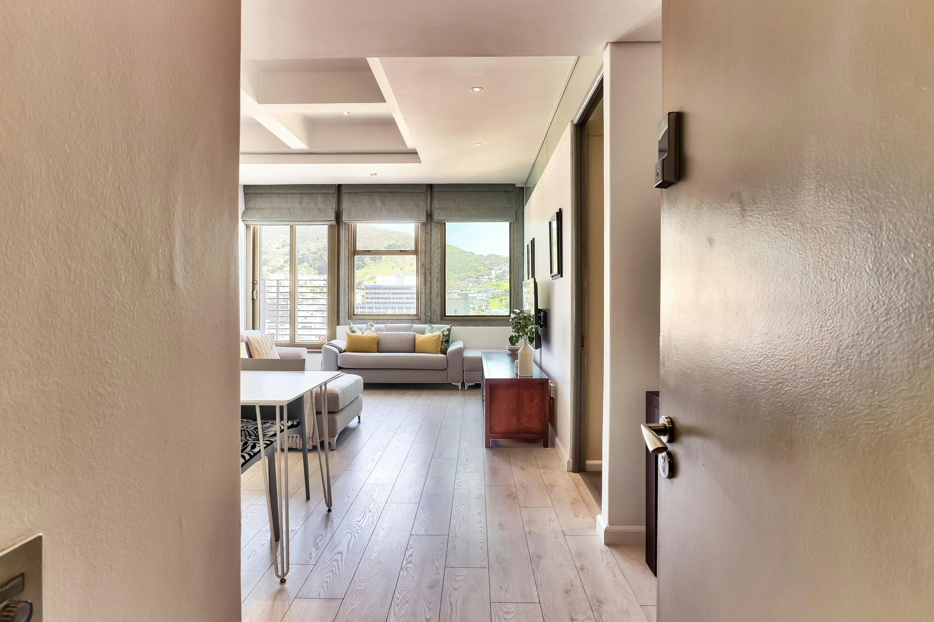 Gaste kan pragtige uitsigte geniet, asook toegang tot top-gebougeriewe, insluitend 'n gemeenskaplike swembad en gimnasium. Ideaal geleë, is die woonstel net 'n paar oomblikke van die Kompanjie se Tuin, Groenmarkplein, die Kasteel van Goeie Hoop en die lewendige East City-gebied, wat gaste binne loopafstand van Kaapstad se belangrikste besienswaardighede plaas.