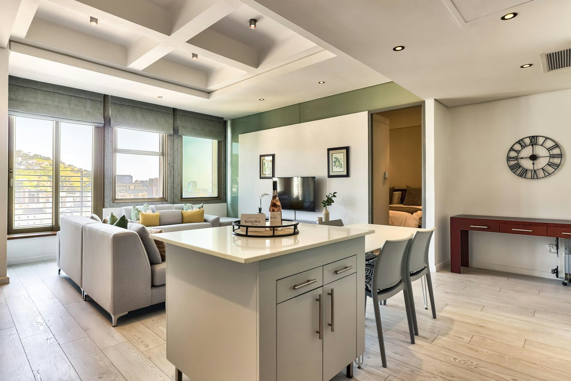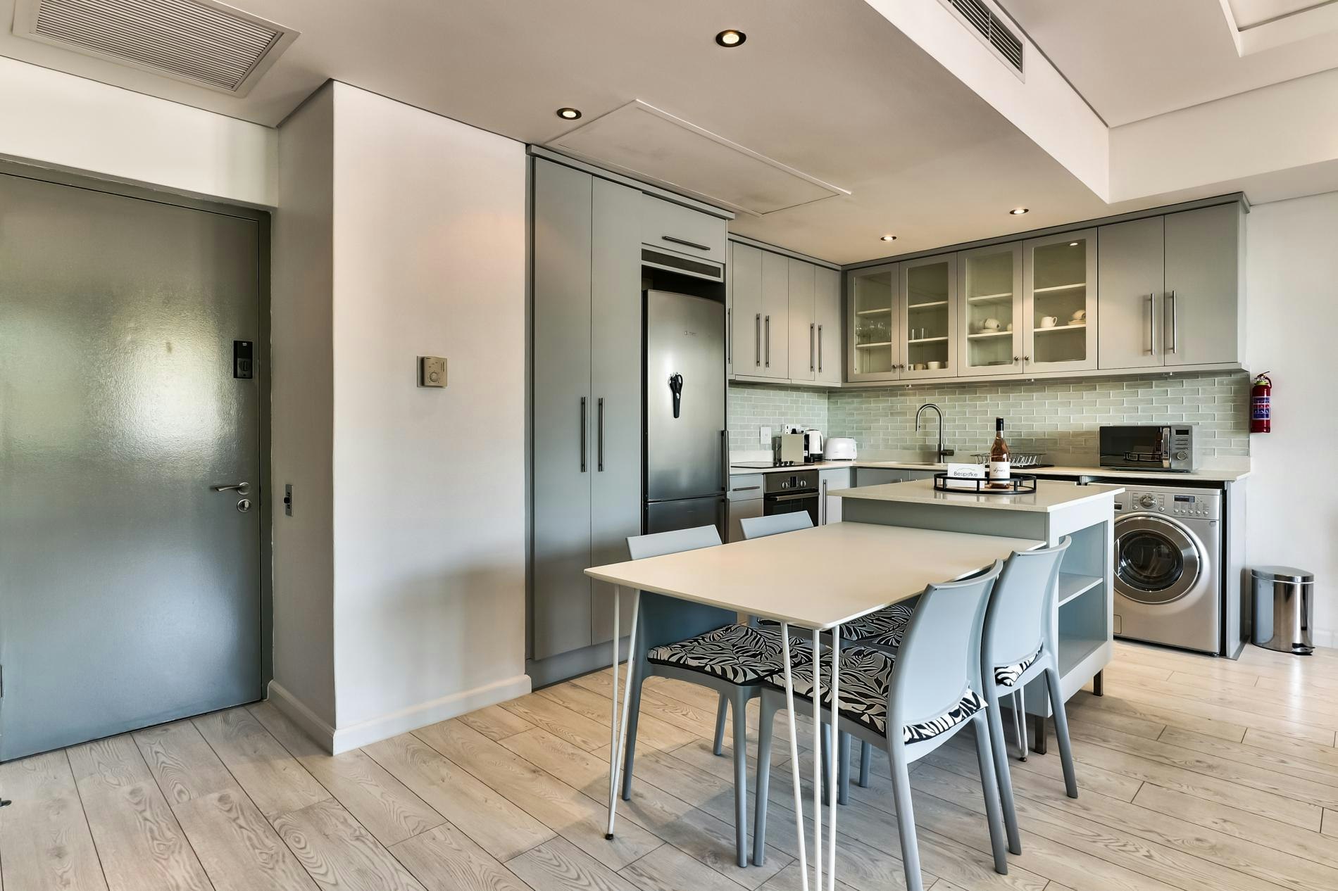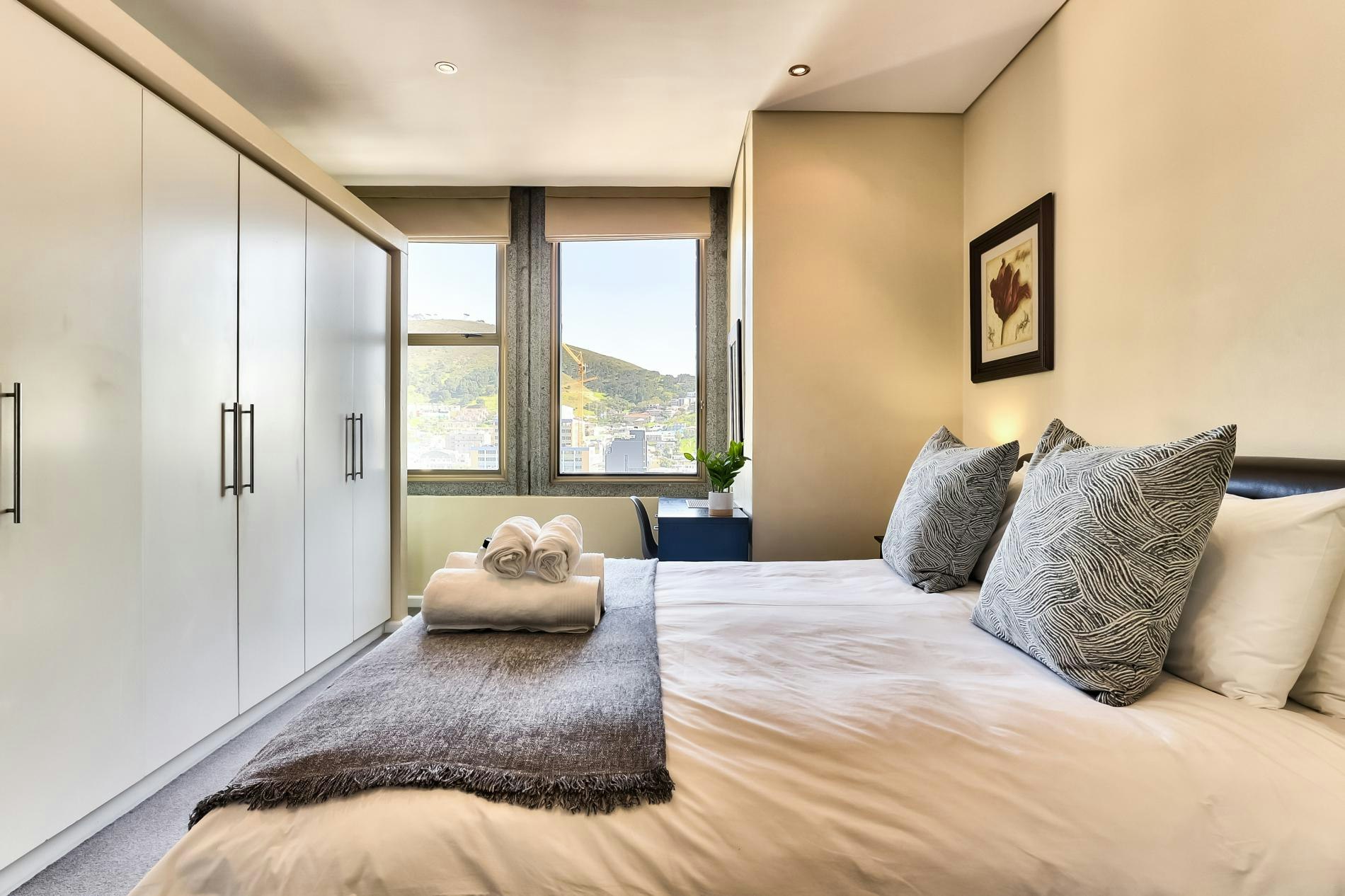 Gaste kan pragtige uitsigte geniet, asook toegang tot top-gebougeriewe, insluitend 'n gemeenskaplike swembad en gimnasium. Ideaal geleë, is die woonstel net 'n paar oomblikke van die Kompanjie se Tuin, Groenmarkplein, die Kasteel van Goeie Hoop en die lewendige East City-gebied, wat gaste binne loopafstand van Kaapstad se belangrikste besienswaardighede plaas.