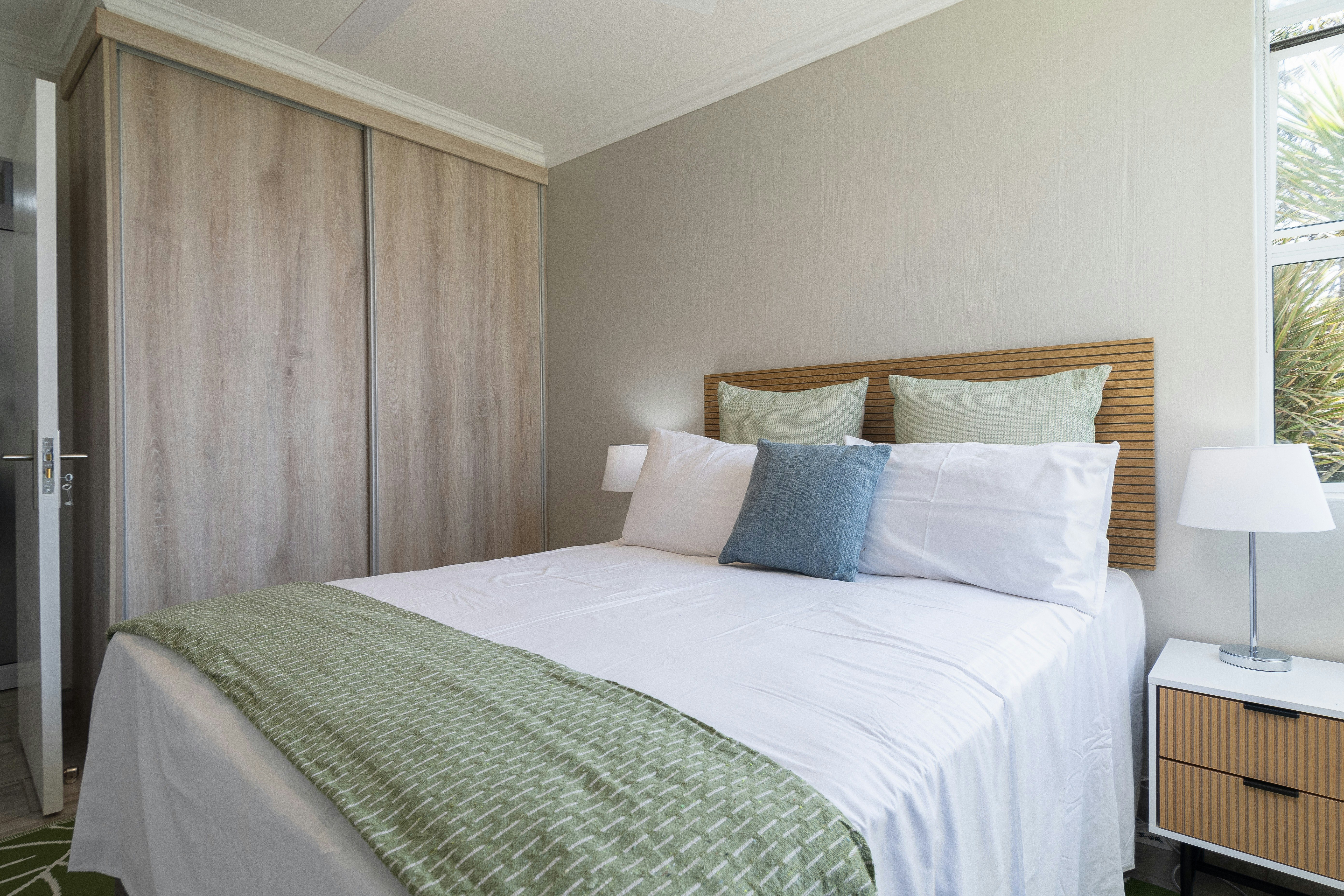 Die skuifdeure maak oop na die klein patio. Veilige onderdakparkering is beskikbaar vir 1 voertuig, en gaste het toegang tot die gemeenskaplike swembad en braaigeriewe in die kompleks.