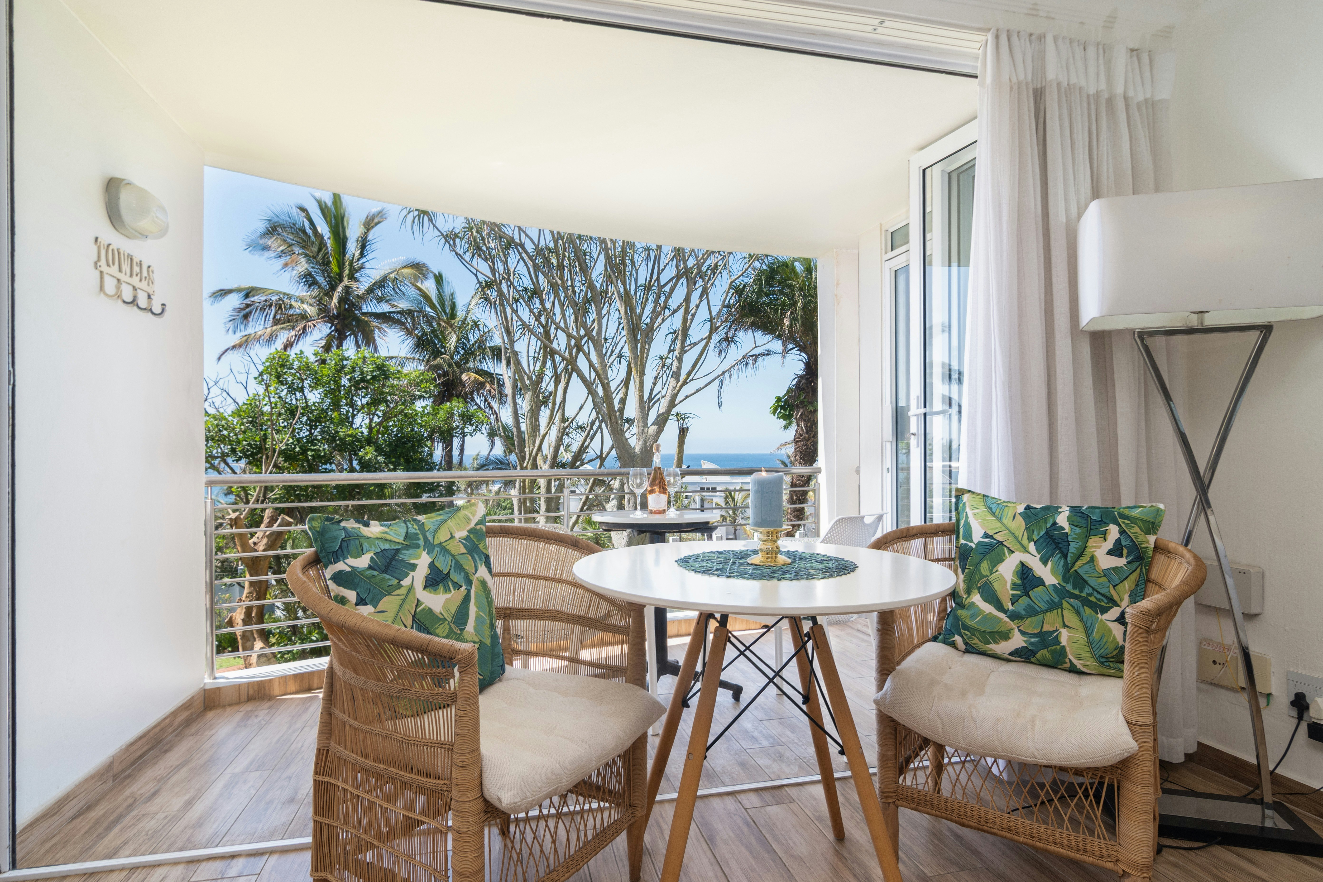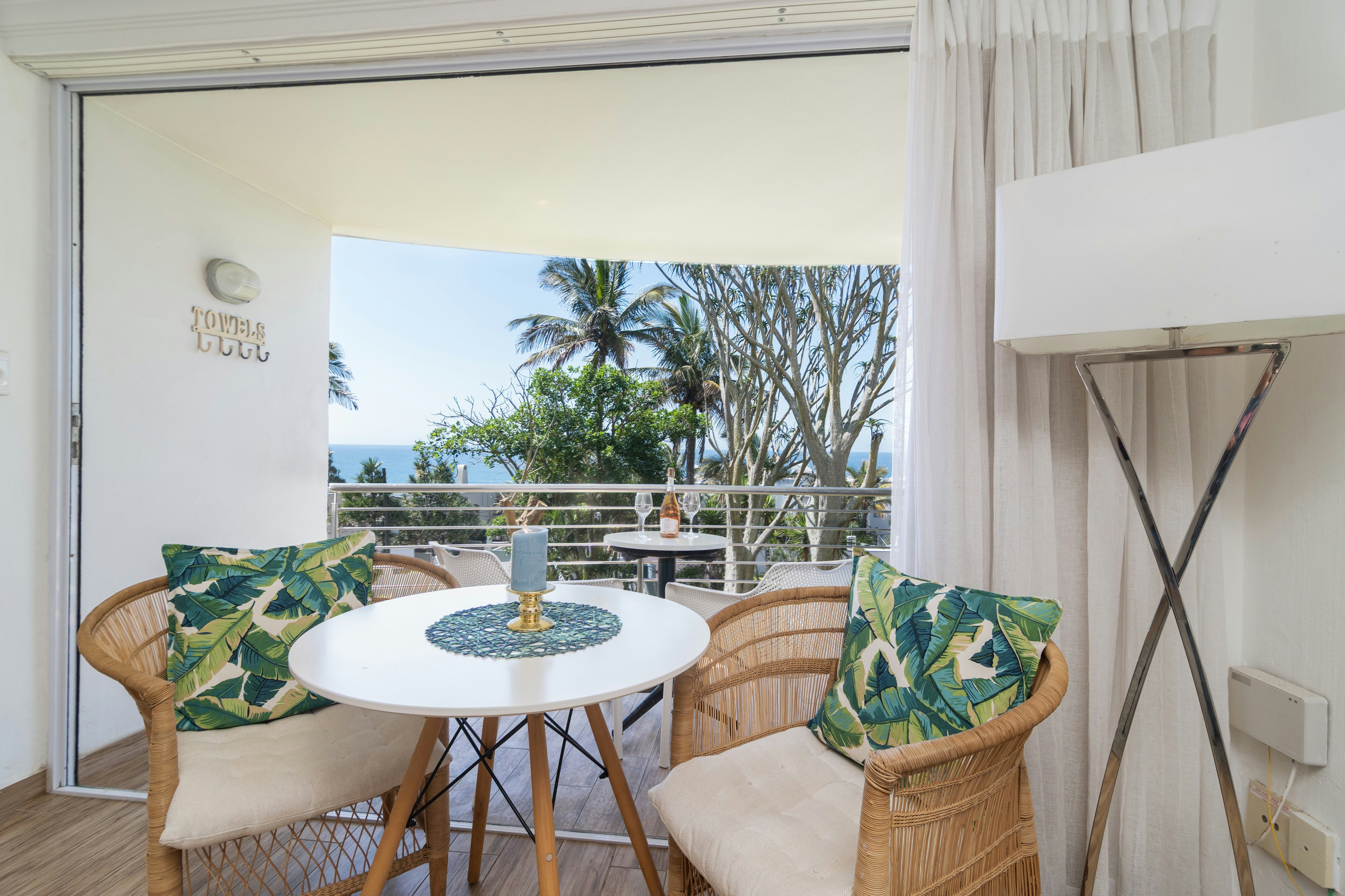 Die oopplan-leefarea beskik oor gemaklike sitplek, 'n TV met DStv-kanale, 'n eetkamertafel en 'n goed toegeruste kombuis met 'n yskas-vrieskas, stoof, oond, mikrogolfoond, wasmasjien en koffie- en teemaakgeriewe. Gaste kan ontspan op die patio met uitsig oor die tuin en die see-uitsigte bewonder. Die kompleks bied 'n gemeenskaplike swembad, braaigeriewe en 'n waskamer vir gaste se gebruik. Een toegekende parkeerplek en 24-uur-sekuriteit verseker gemoedsrus dwarsdeur u verblyf.