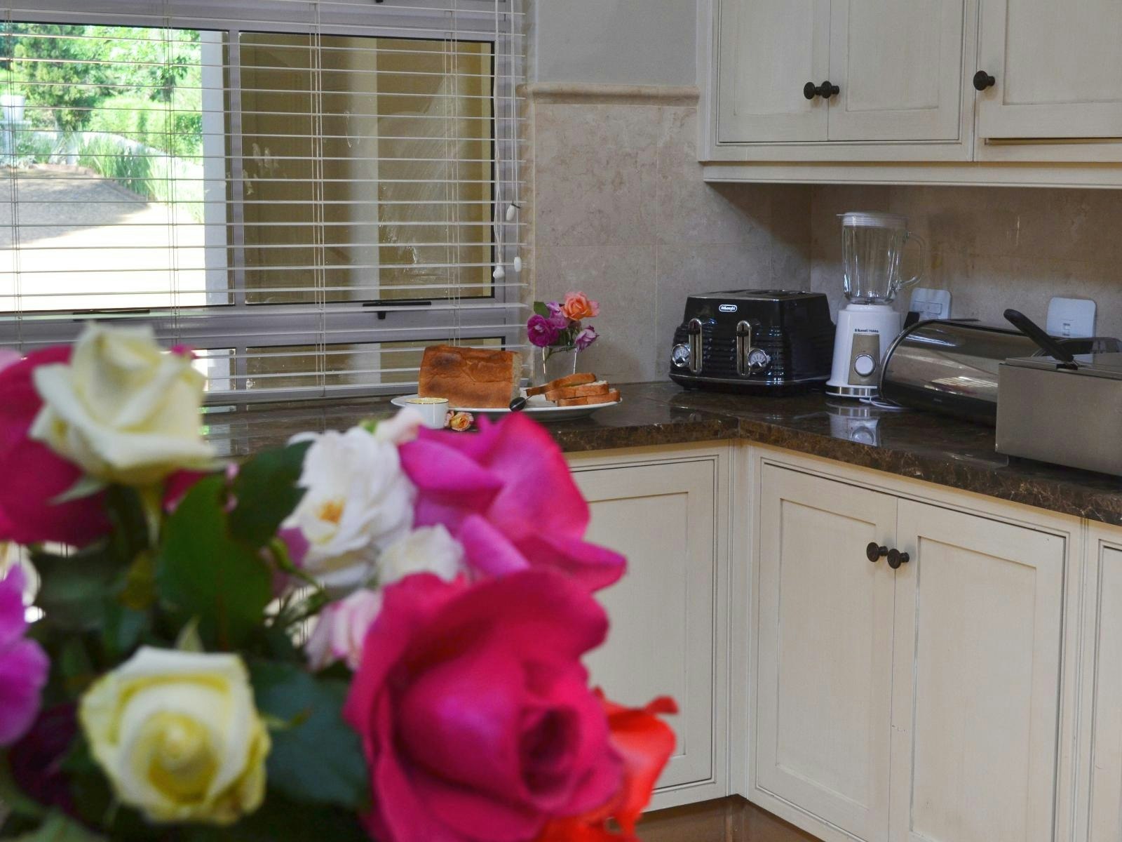 Die ruim leefarea beskik oor 'n pragtige kombuis wat met 'n gasstoof, 2 oonde, mikrogolfoond, 'n yskas-vrieskas, eetgerei, breekware en 'n eiland met stoele toegerus is. Die huis het 'n ruim eetarea met 'n kaggel en oorgenoeg sitplek. Die sitarea het ook 'n kaggel en 'n platskerm-TV met DStv. Gratis WiFi is beskikbaar.