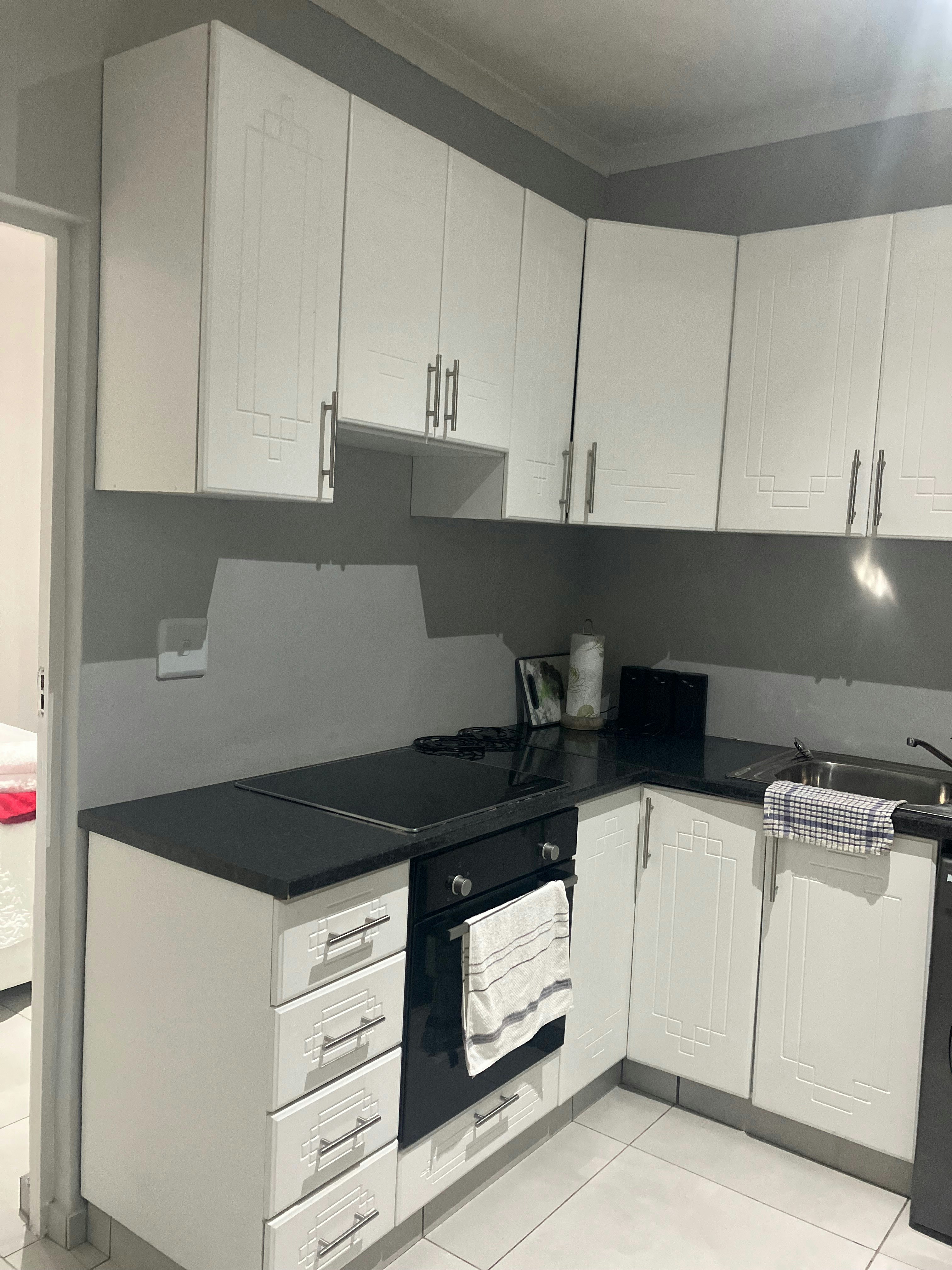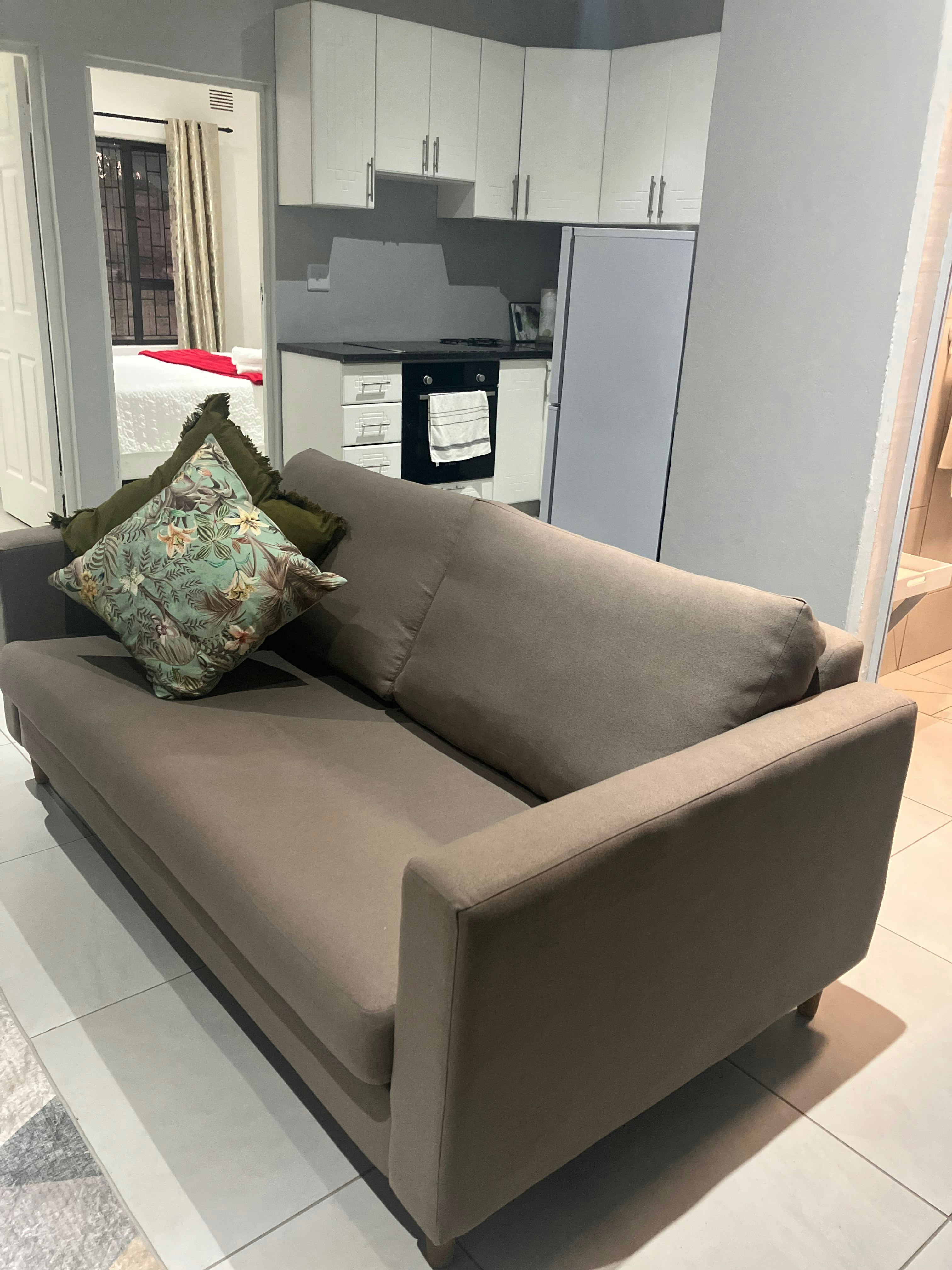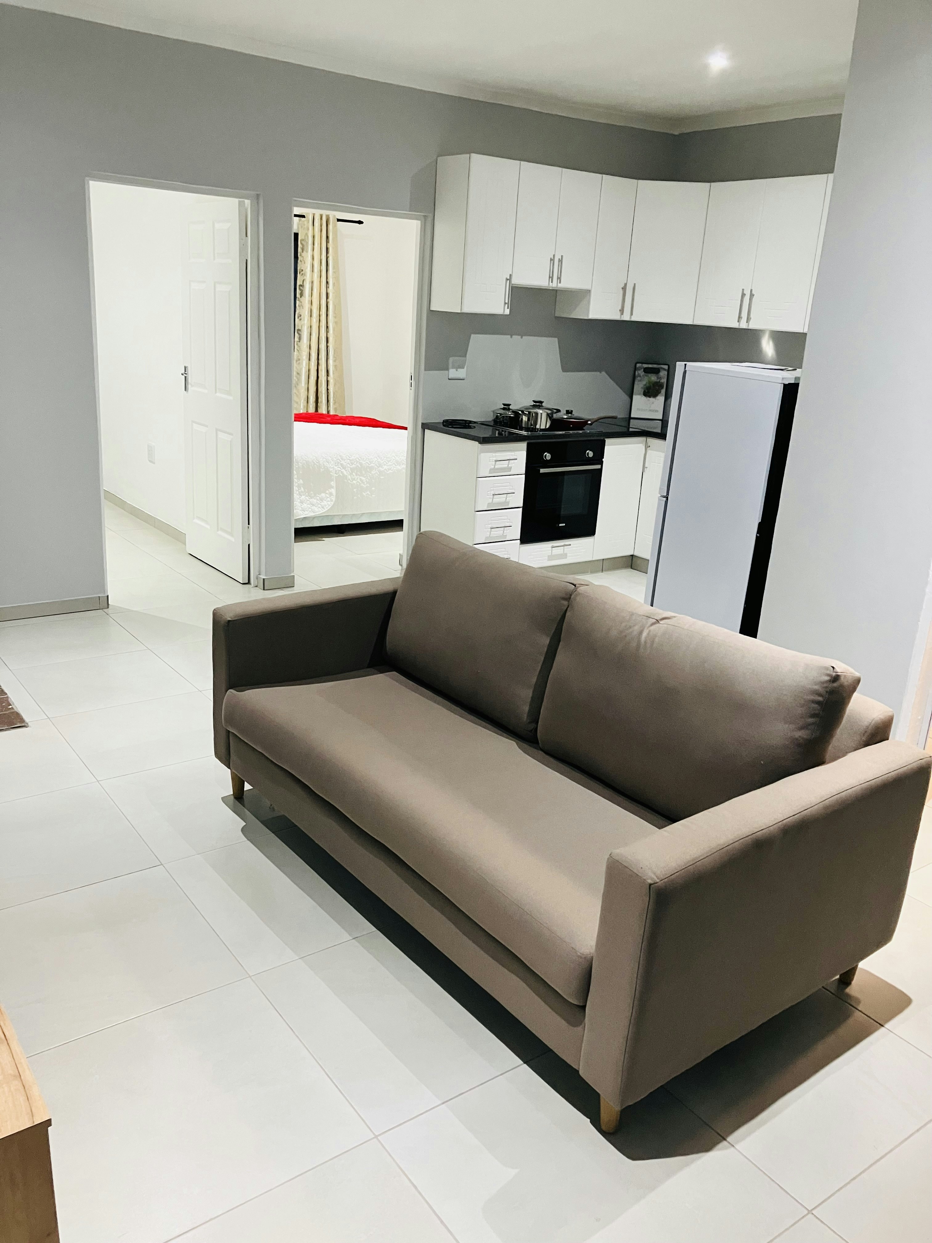 Die eenheid is oopplan en het 'n sitarea en 'n kombuis wat met 'n stoof, yskas en 'n ketel toegerus is.