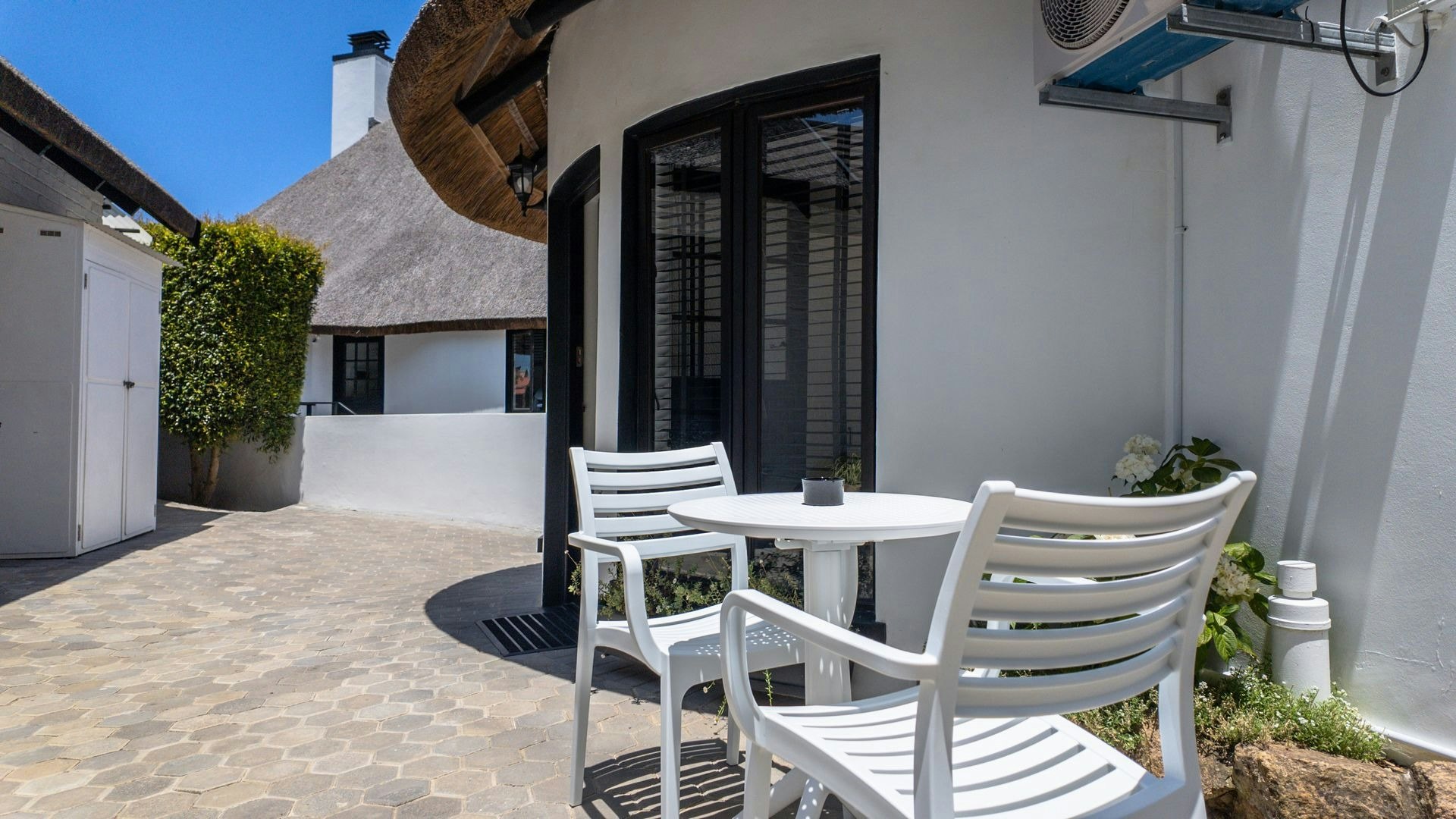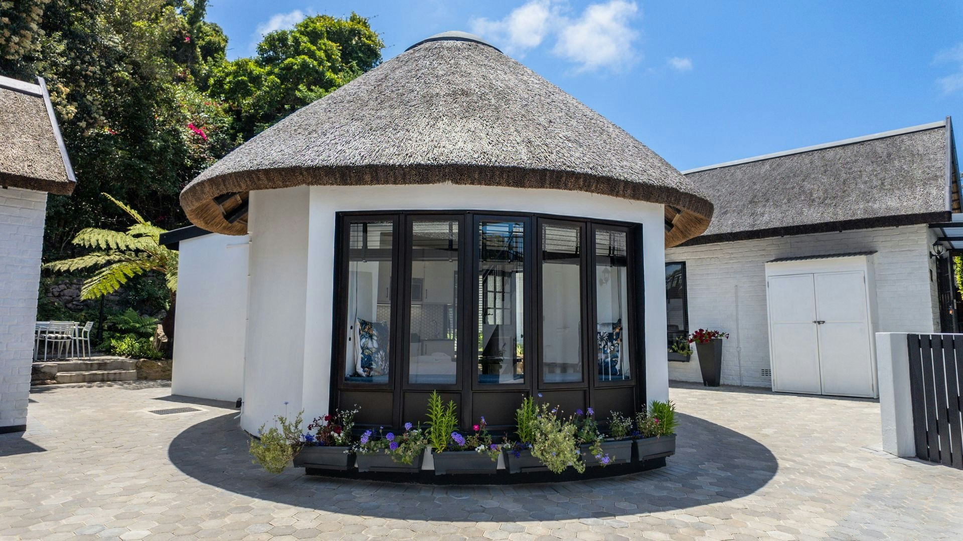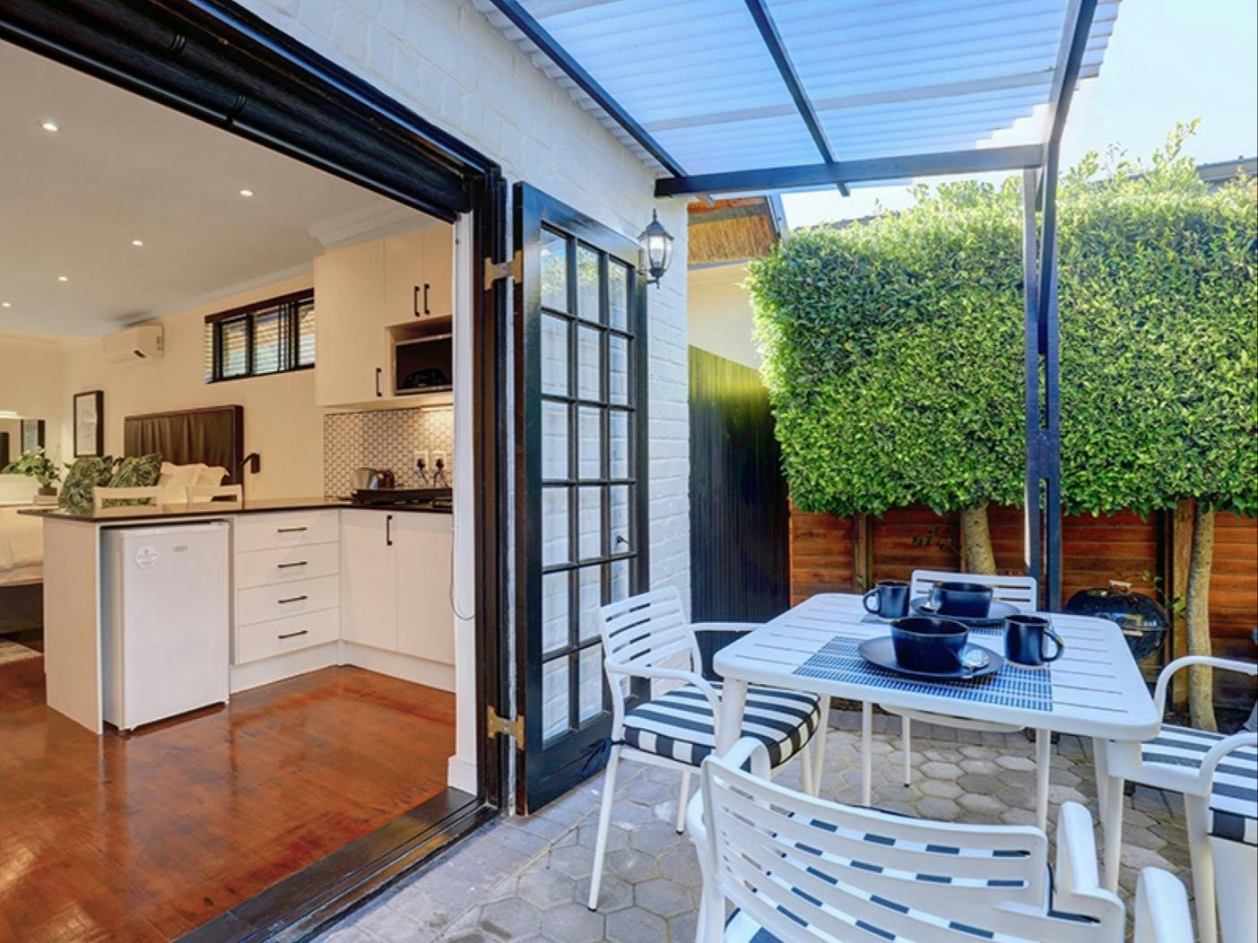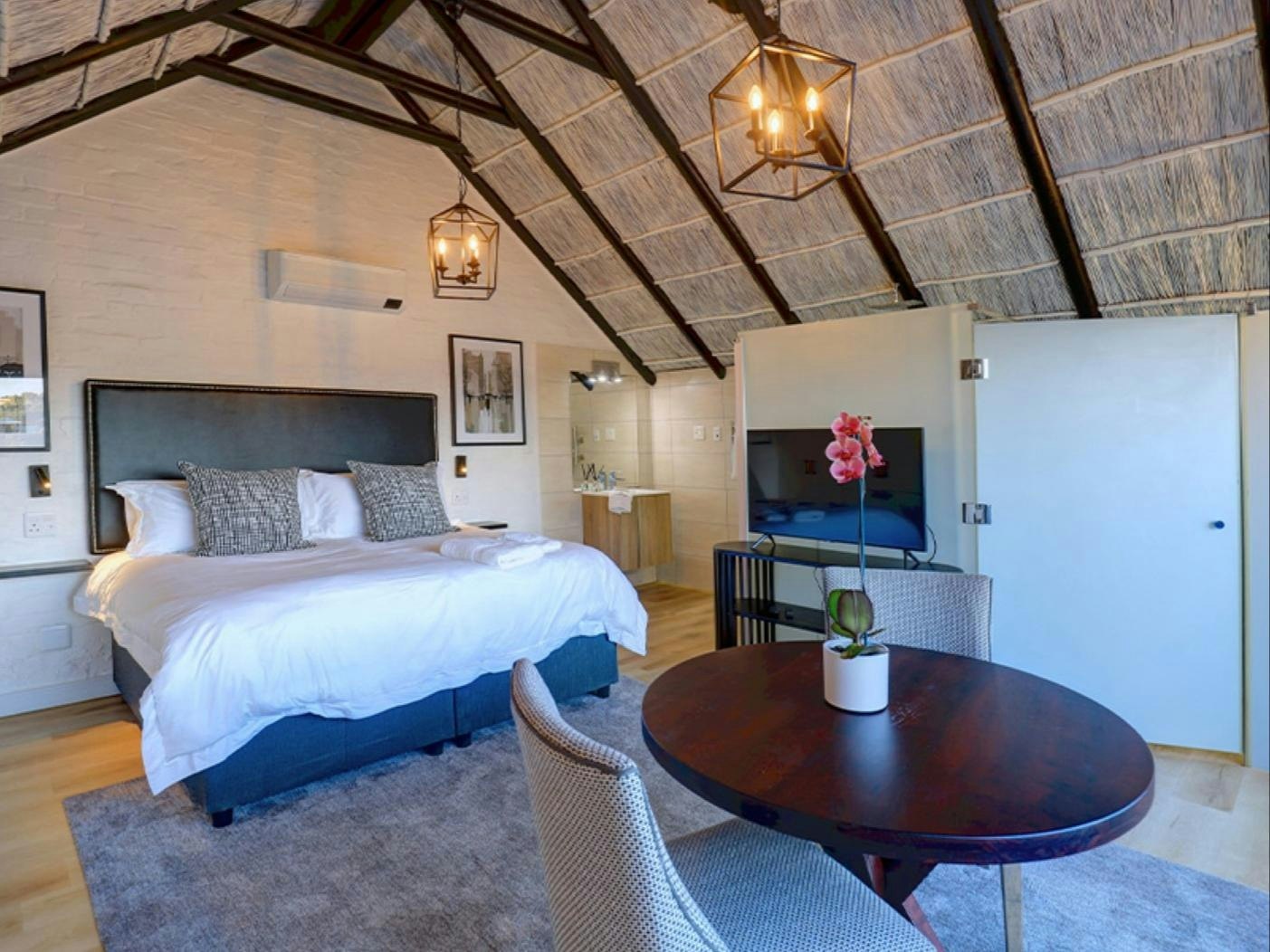 Verder het hierdie kothuise elkeen 'n kombuis wat met 'n induksieplaat, mikrogolfoond, yskassie, eetgerei, breekware en 'n toonbank met stoele toegerus is. Hierdie area het ook 'n spieëltafel en 'n TV met DStv. Gratis WiFi is beskikbaar. Buite elke kothuis is daar 'n privaat stoep met 'n tafel en stoele waar gaste 'n oggendkoffie of 'n buitelug-ete kan geniet.