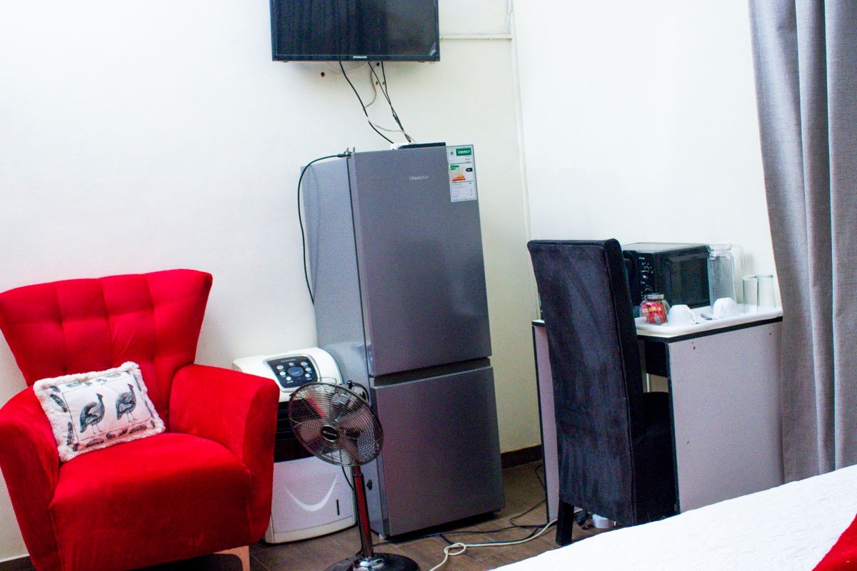 Elke kamer het 'n yskas, mikrogolfoond en tee- en koffiemaakgeriewe. Verder het elke kamer 'n TV. Komplimentêre WiFi en veilige parkeerplek is beskikbaar vir gaste tydens hul verblyf. Gaste het toegang tot 'n gedeelde swembad en 'n lapa wat met braaigeriewe toegerus is.