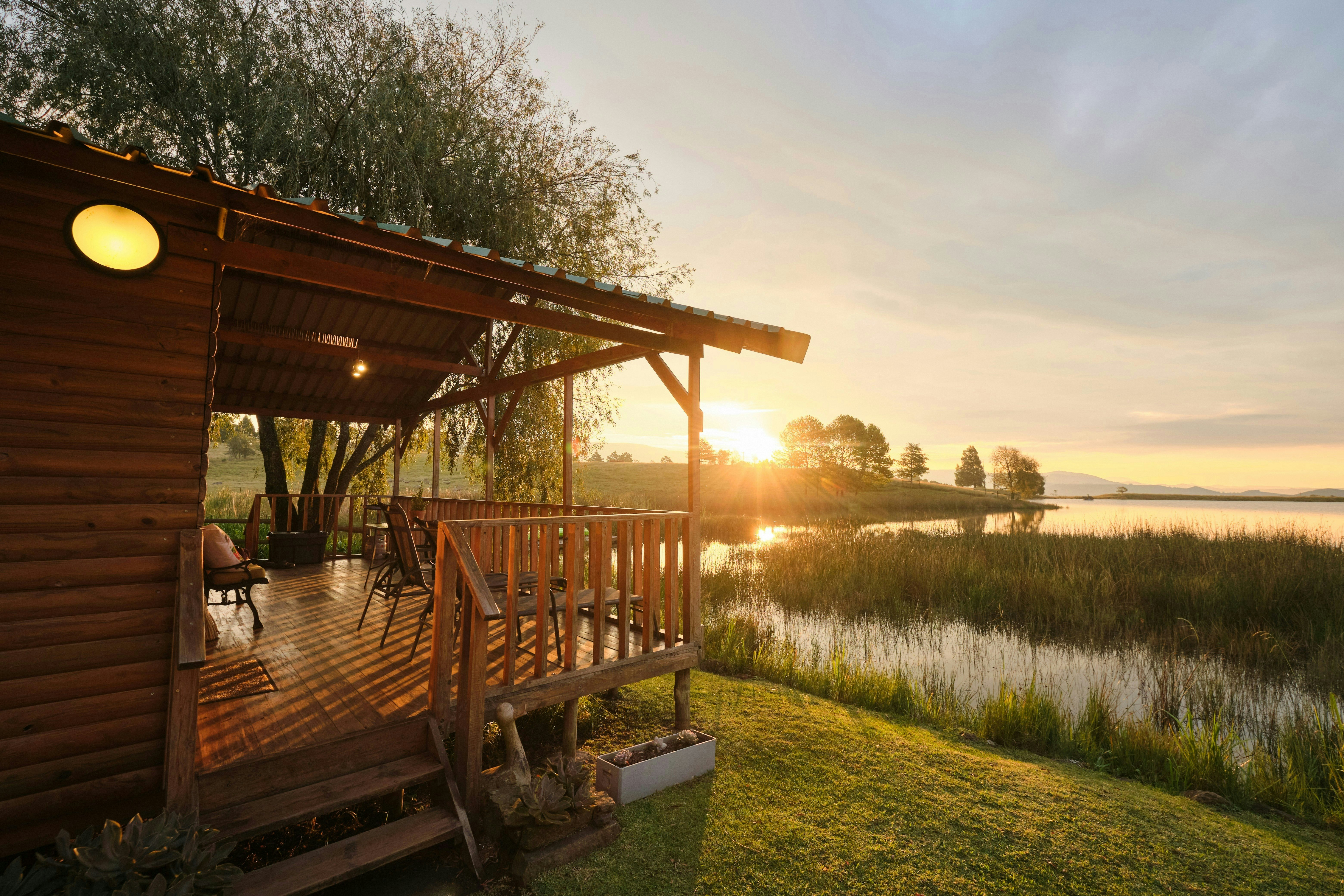 Copperleigh Trout Cabin is a luxury self-catering log cabin located on Copperleigh Farm, overlooking the 10-hectare trout-stocked Mavela Dam in the upper Dargle area, part of the popular Midlands Meander in Kwazulu-Natal. This cabin is perfect for guests who are looking for a relaxing getaway.