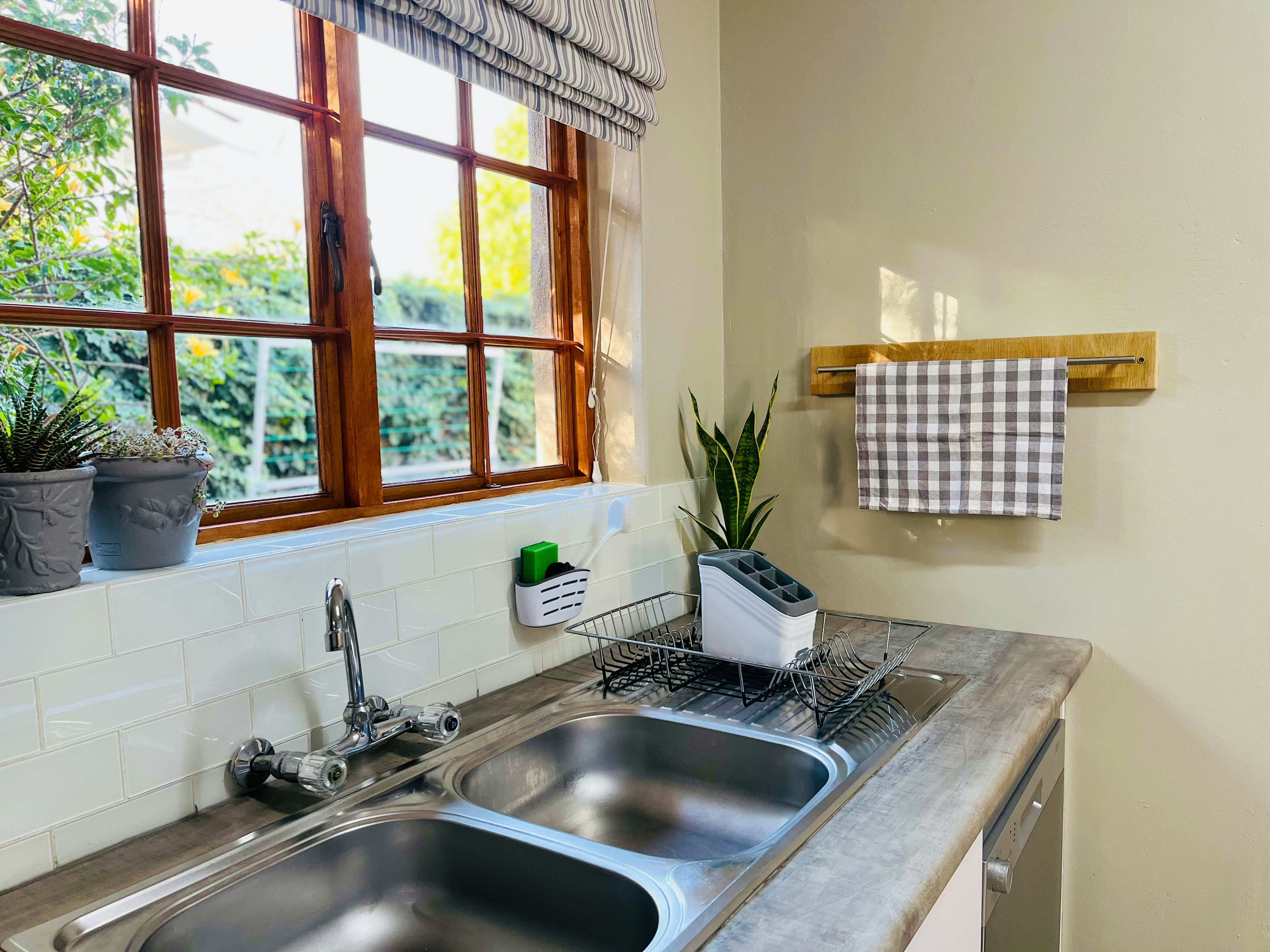 The Corner Cottage is a self-catering unit located on the owner’s property in Somerset West, with private entrance, and a patio in a garden.